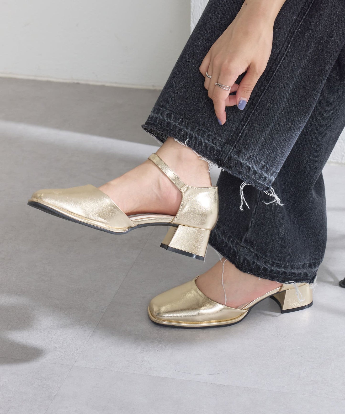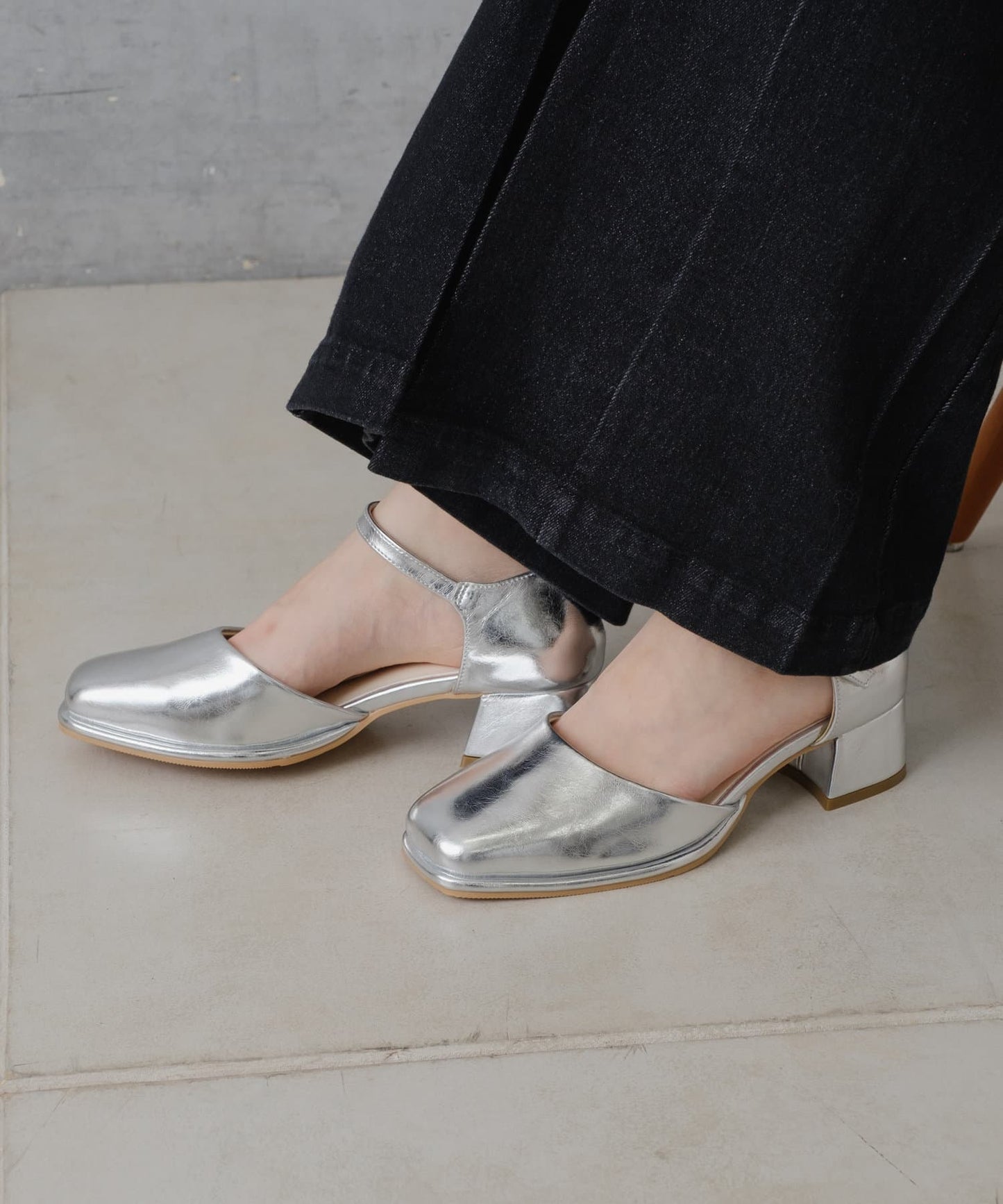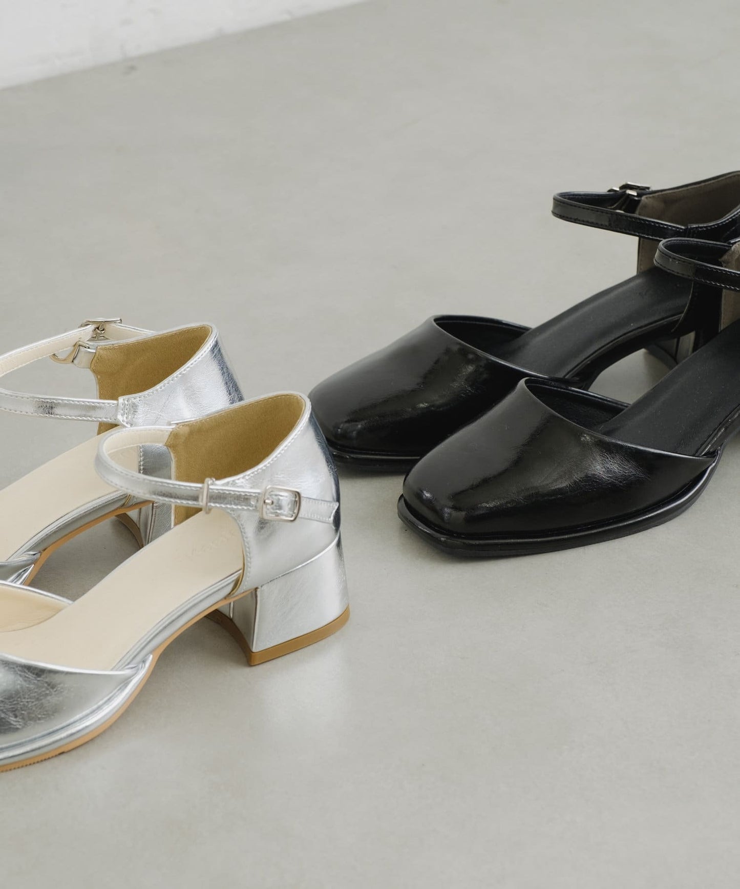 方形的鞋頭和纖細的綁帶使這款高跟鞋看起來非常高挑。
