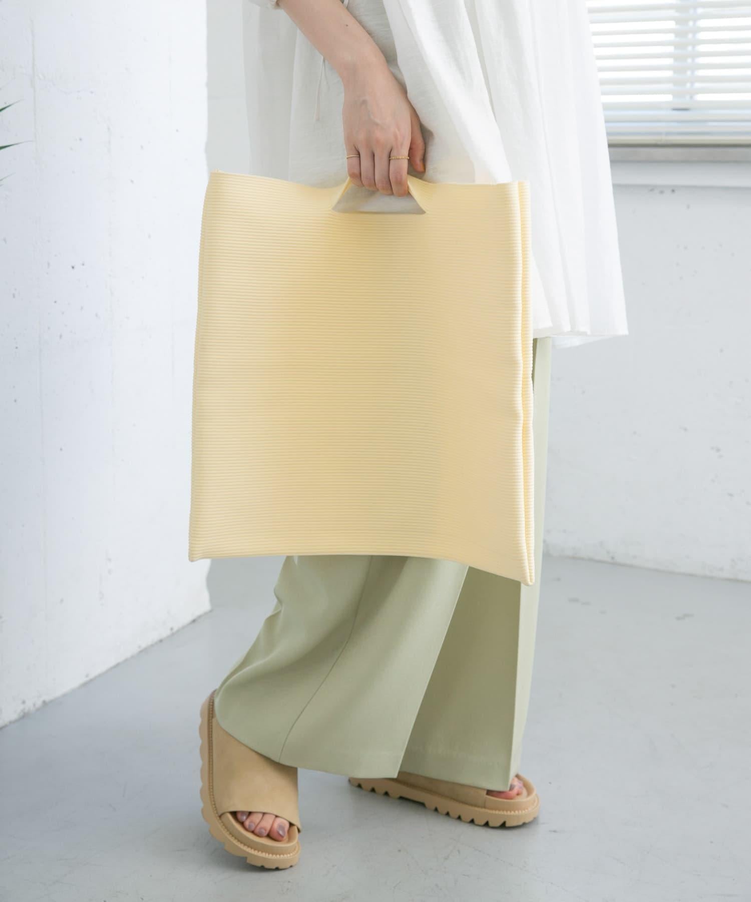 大號方形針織包,適合日常使用和度假場景,既可手提,也可摺疊起來作為手拿包使用。