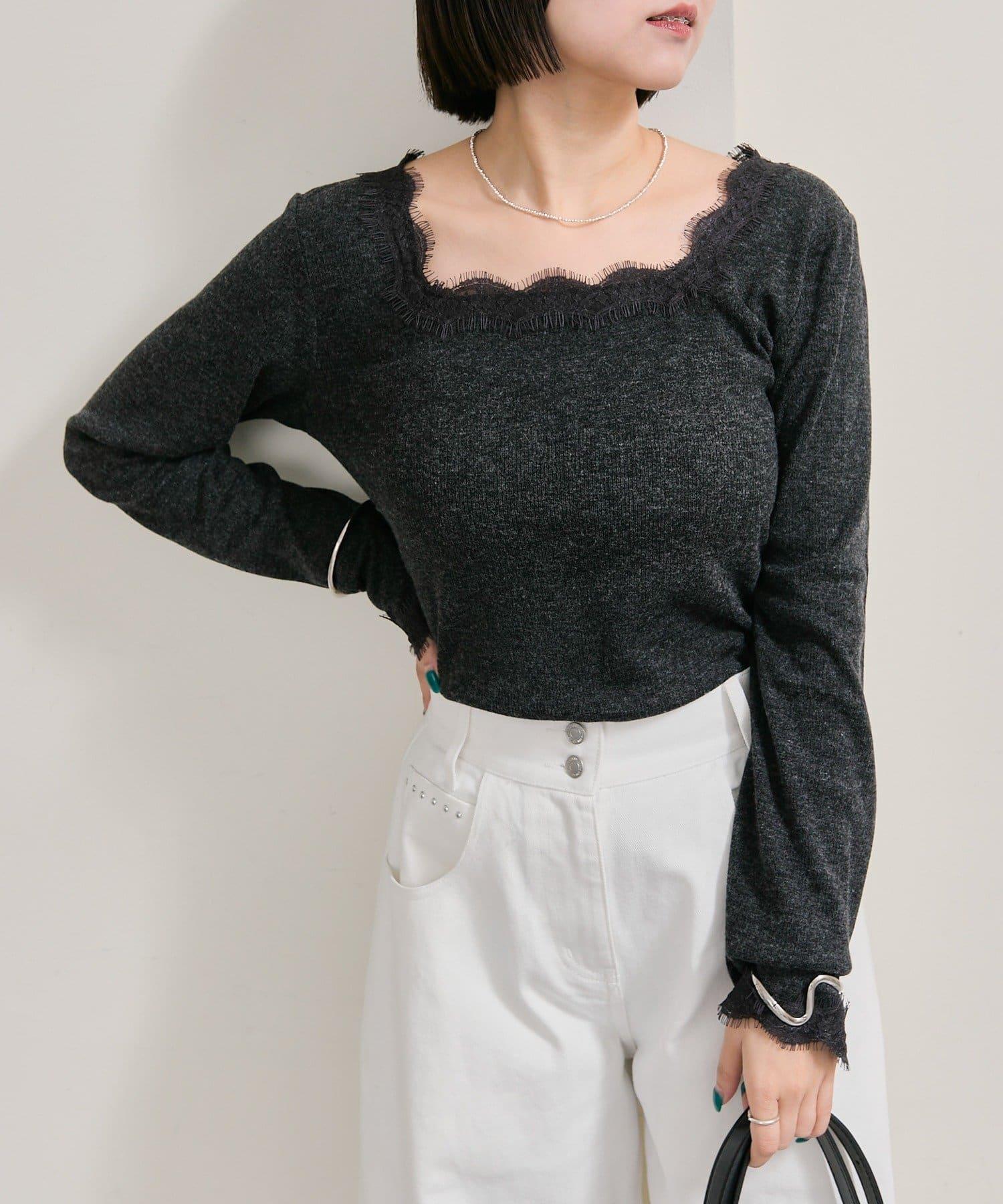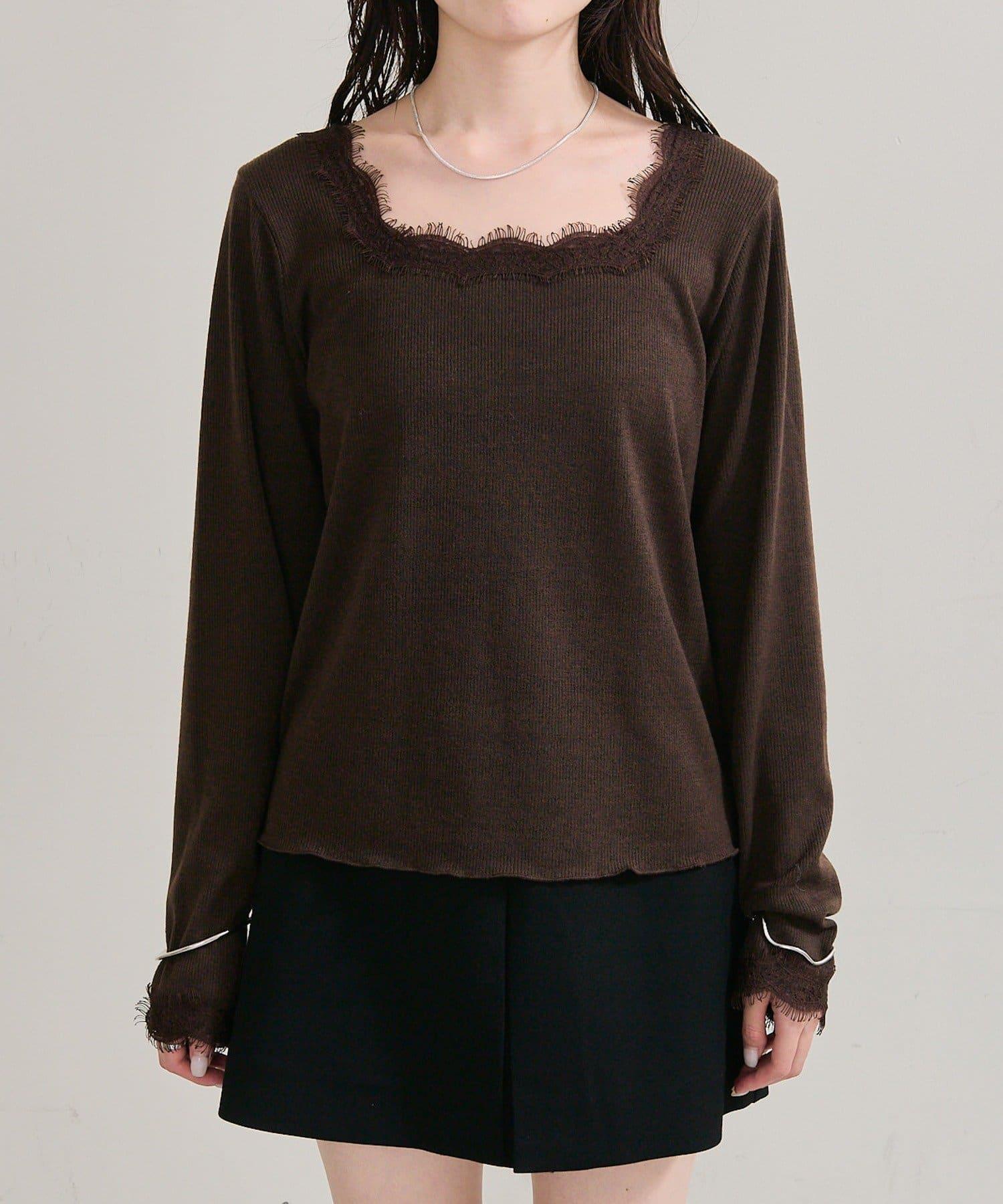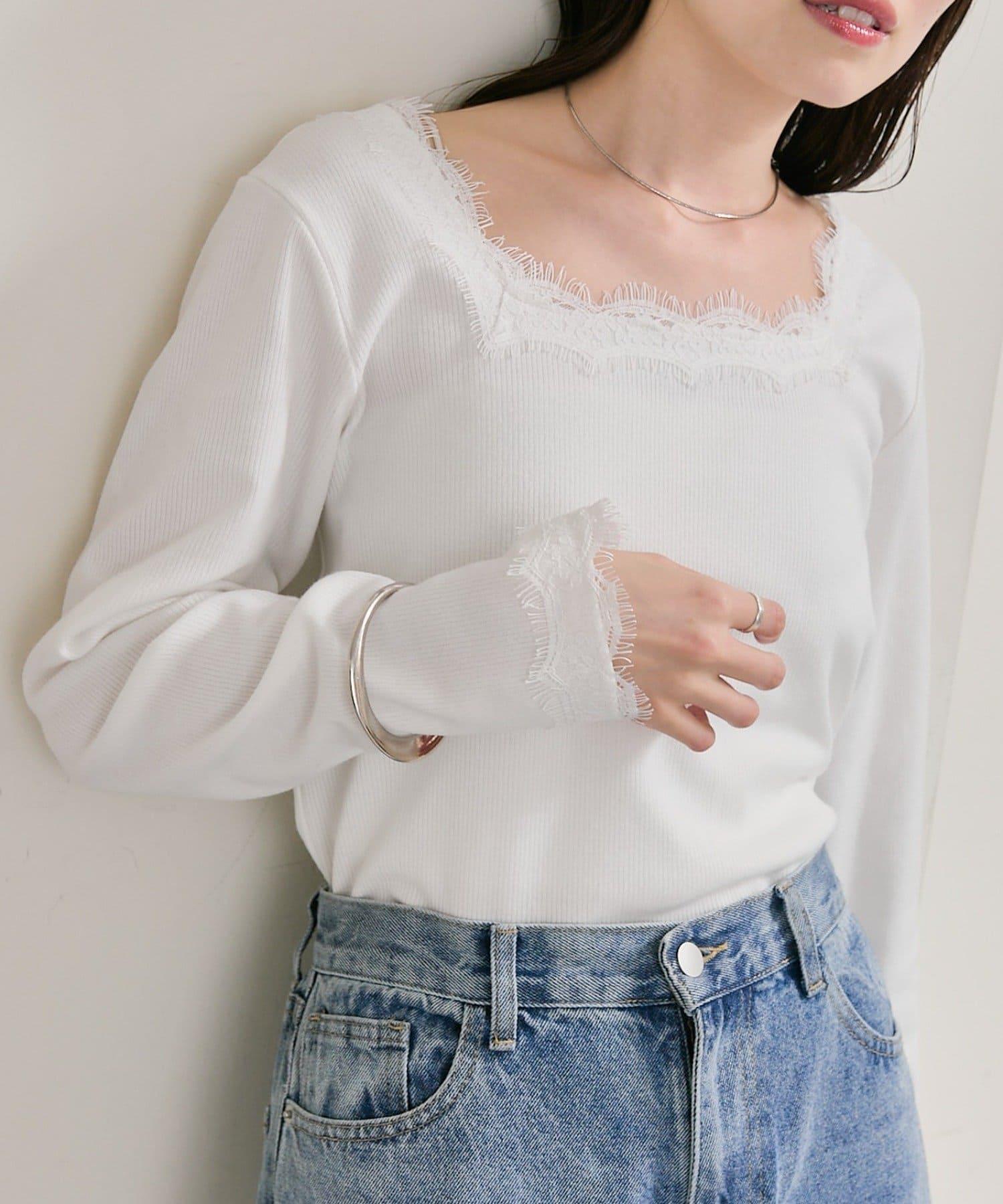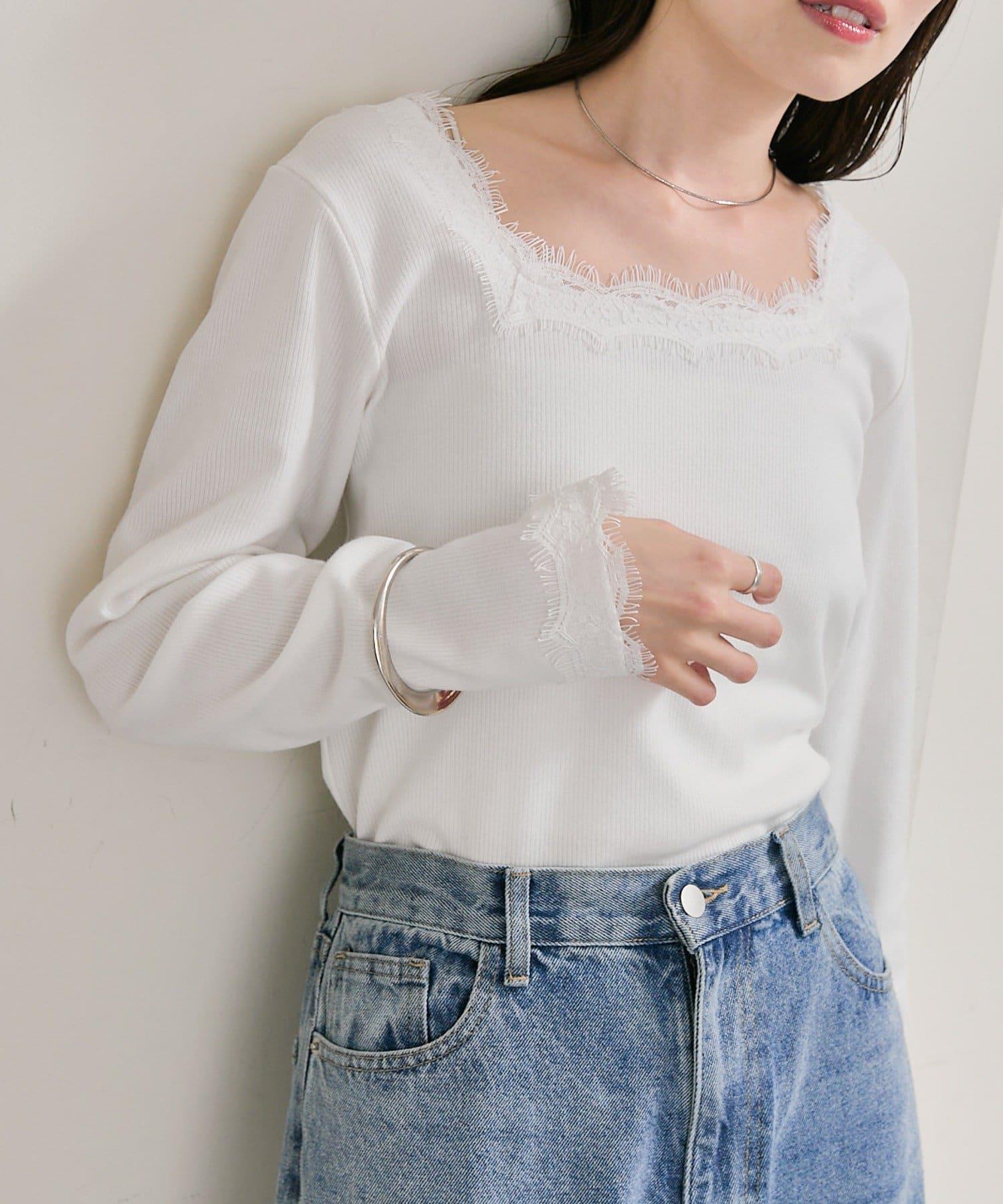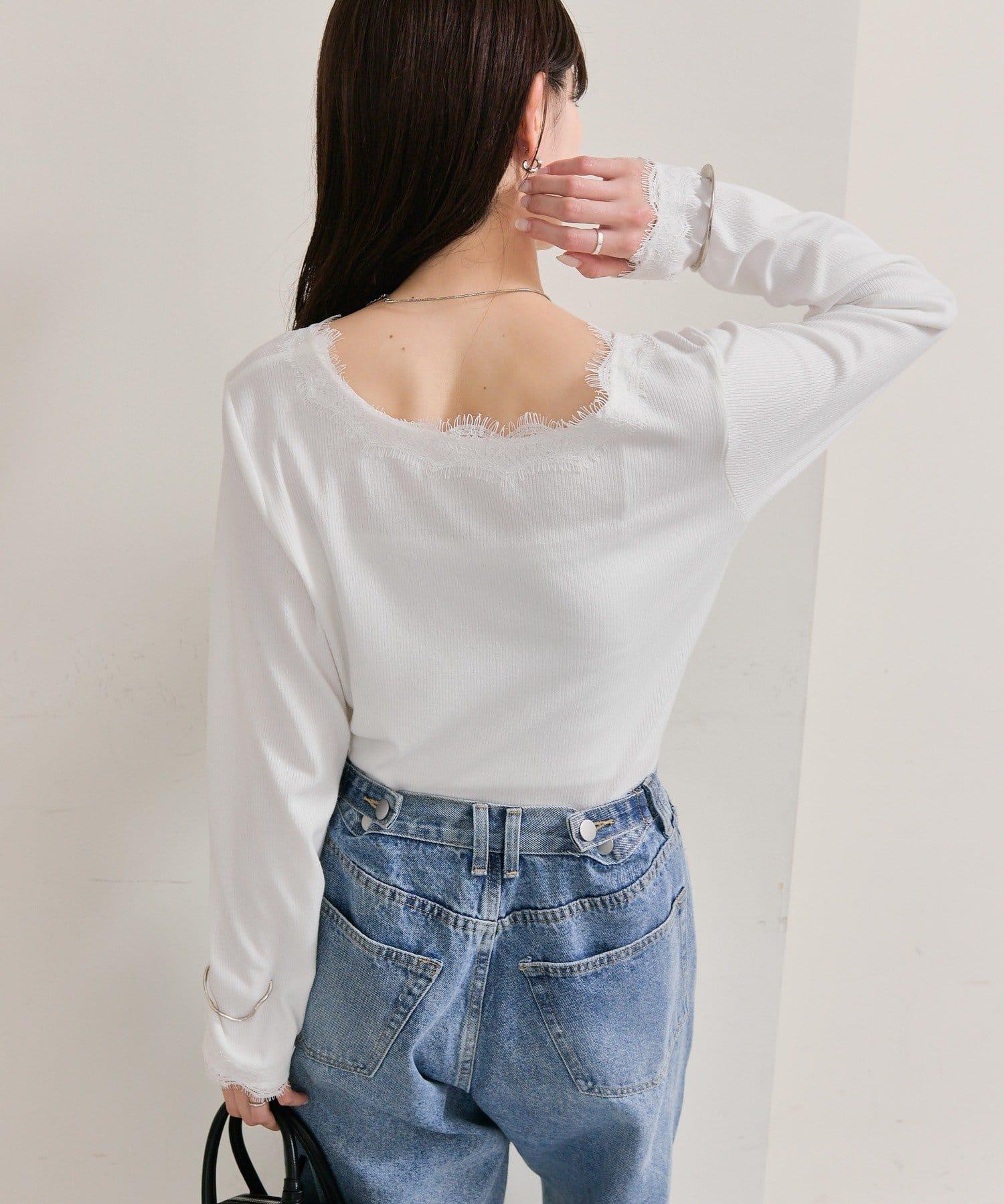預約商品方領蕾絲長袖T恤