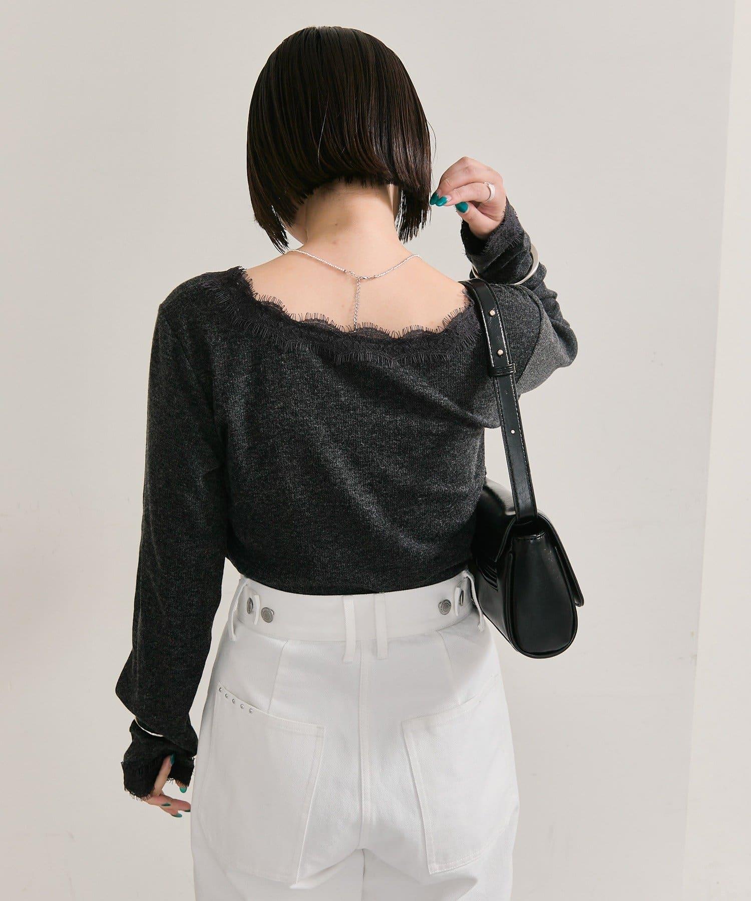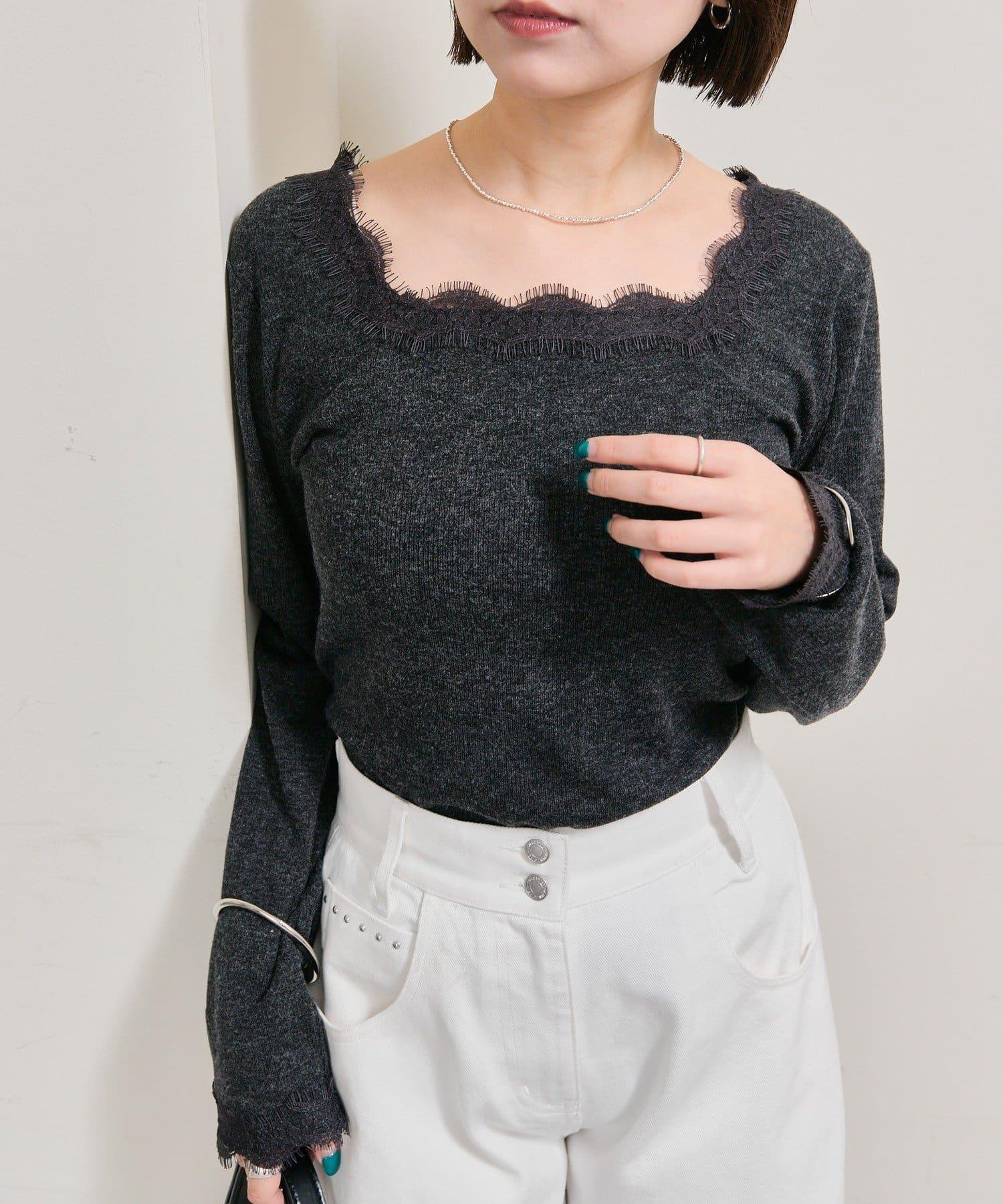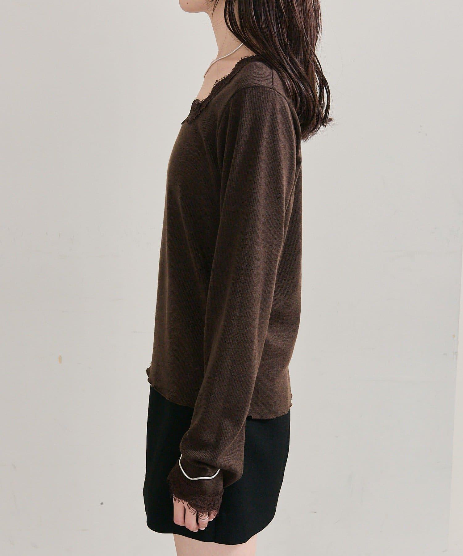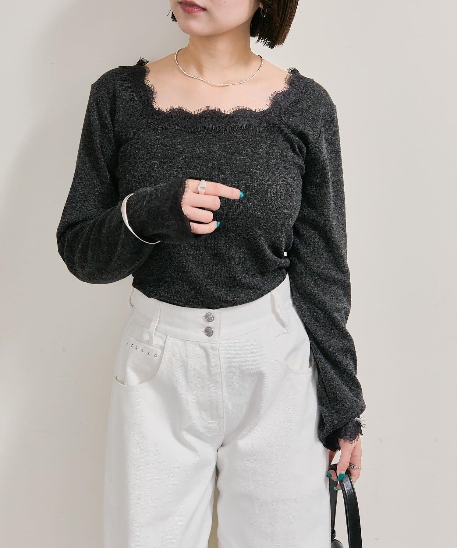 預約商品方領蕾絲長袖T恤