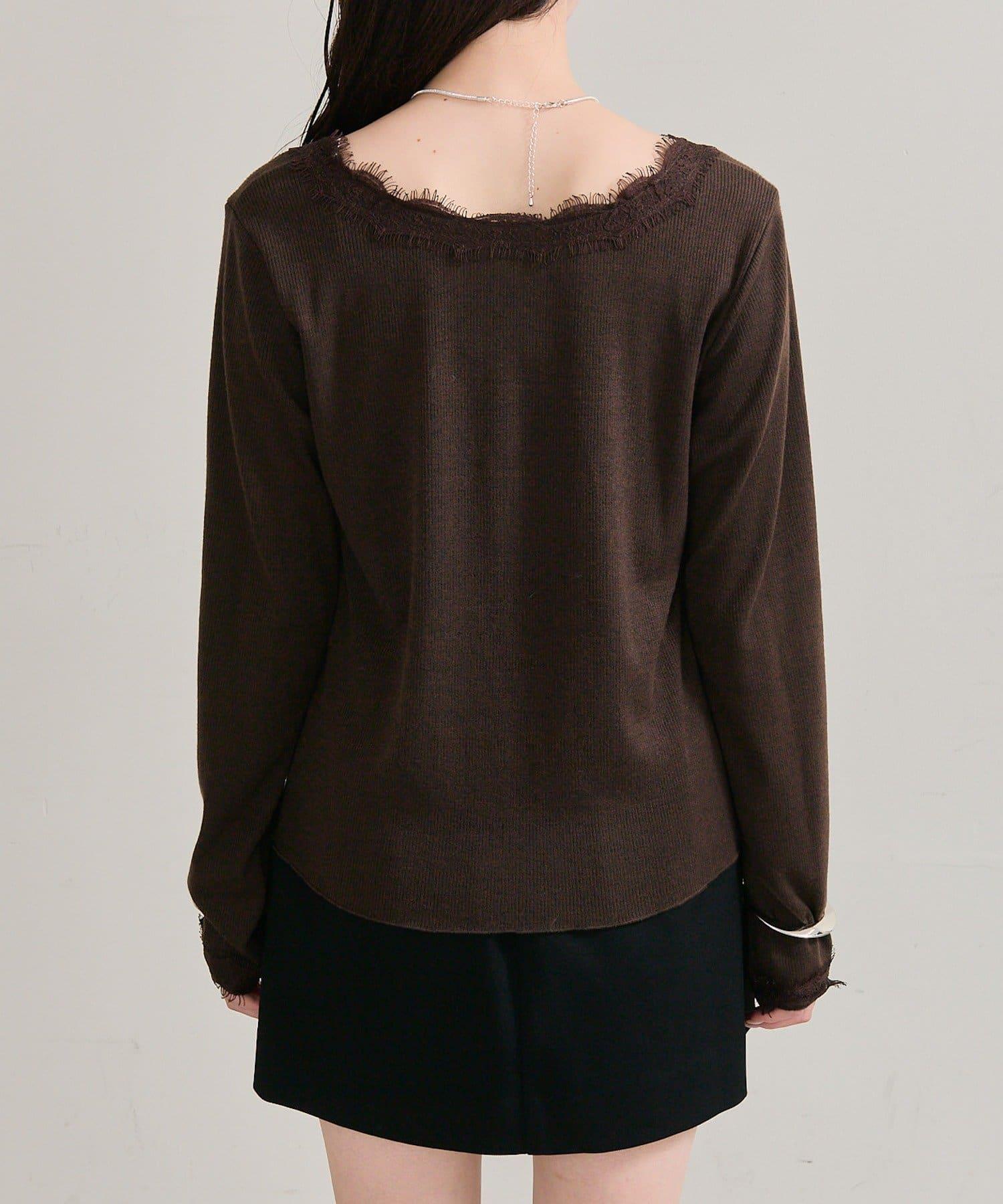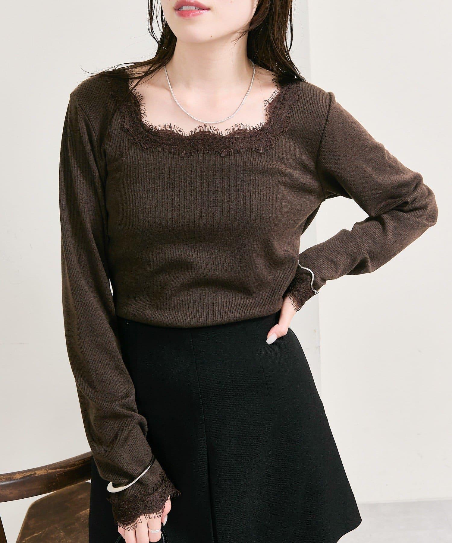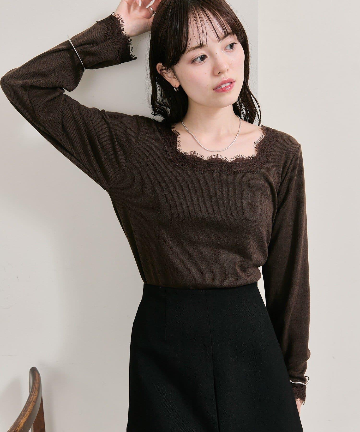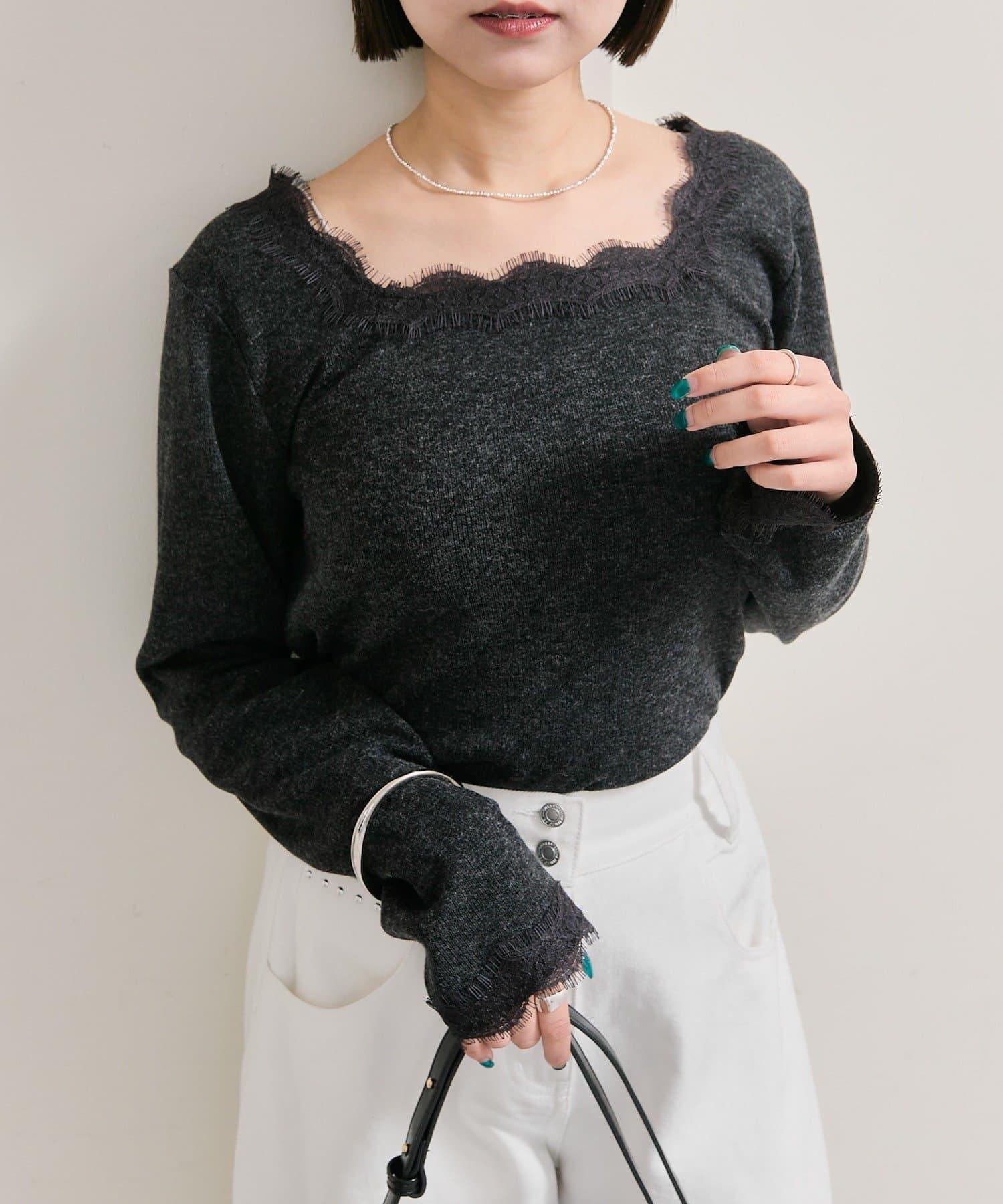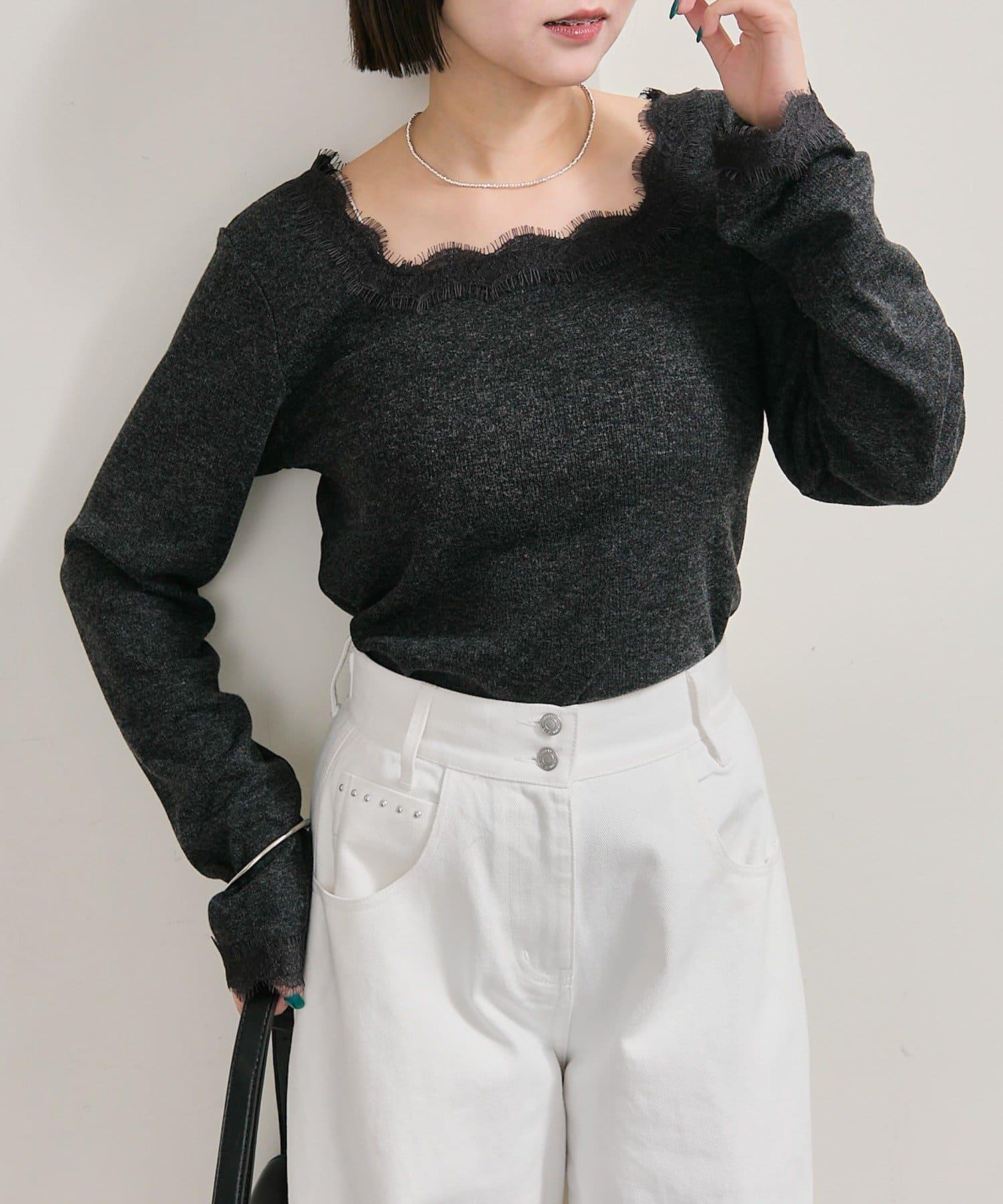 預約商品方領蕾絲長袖T恤