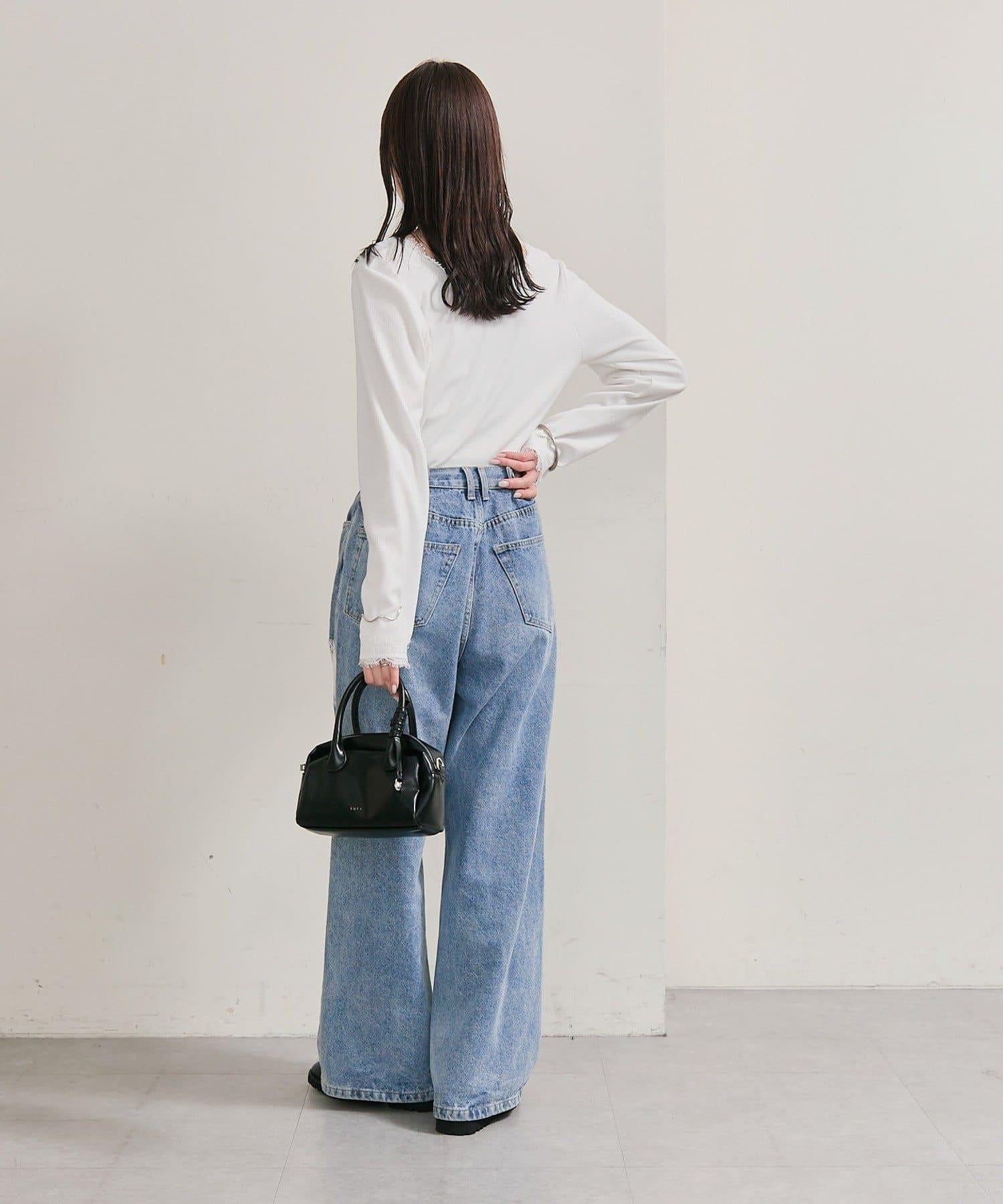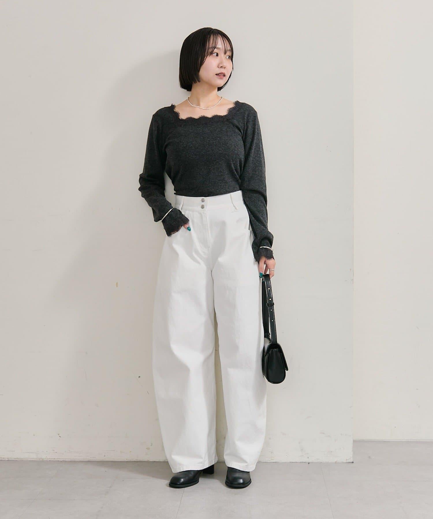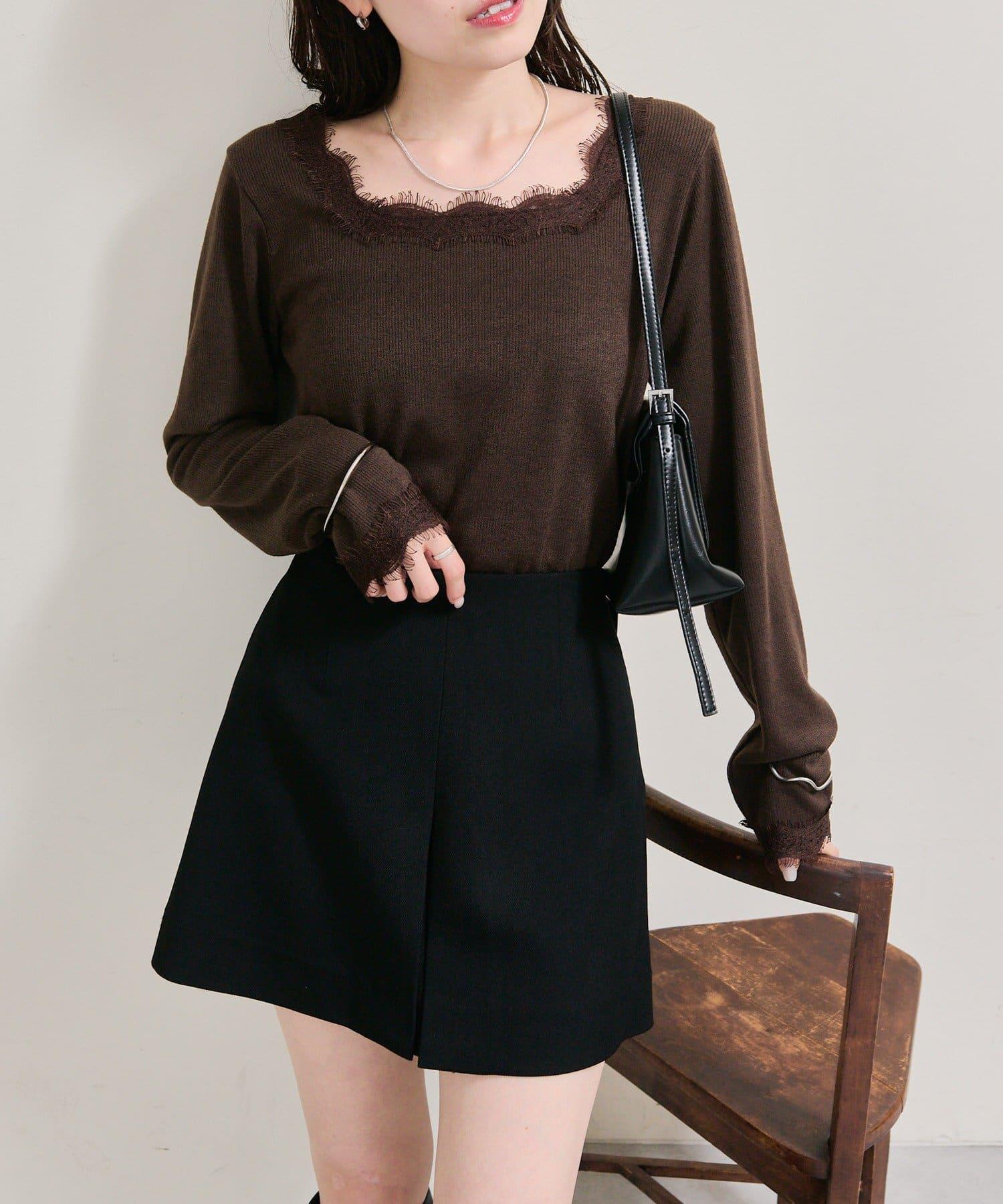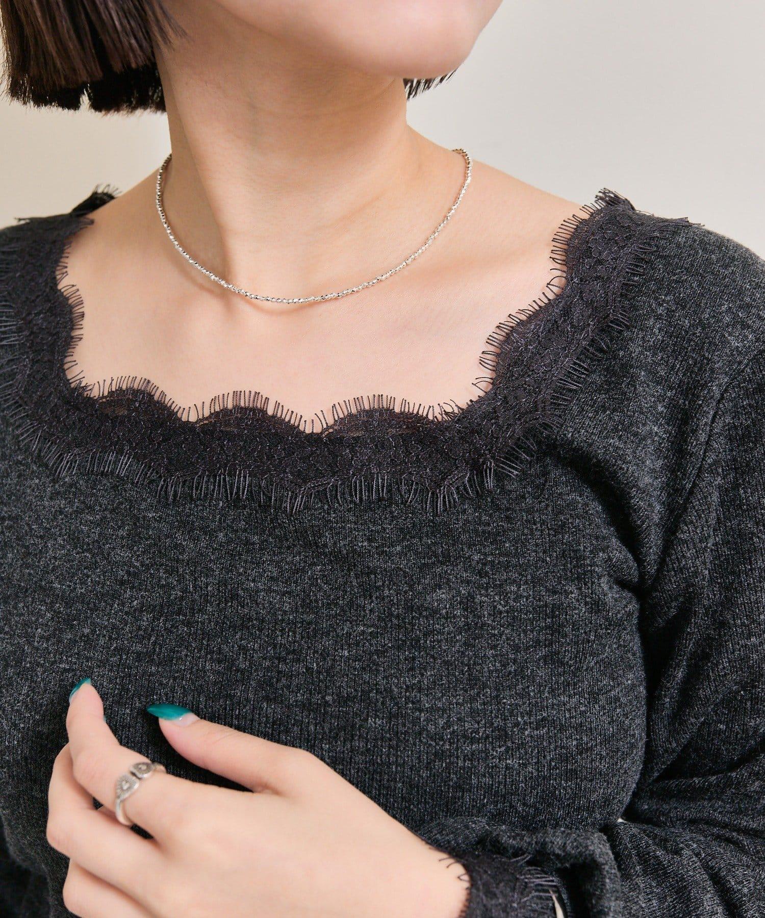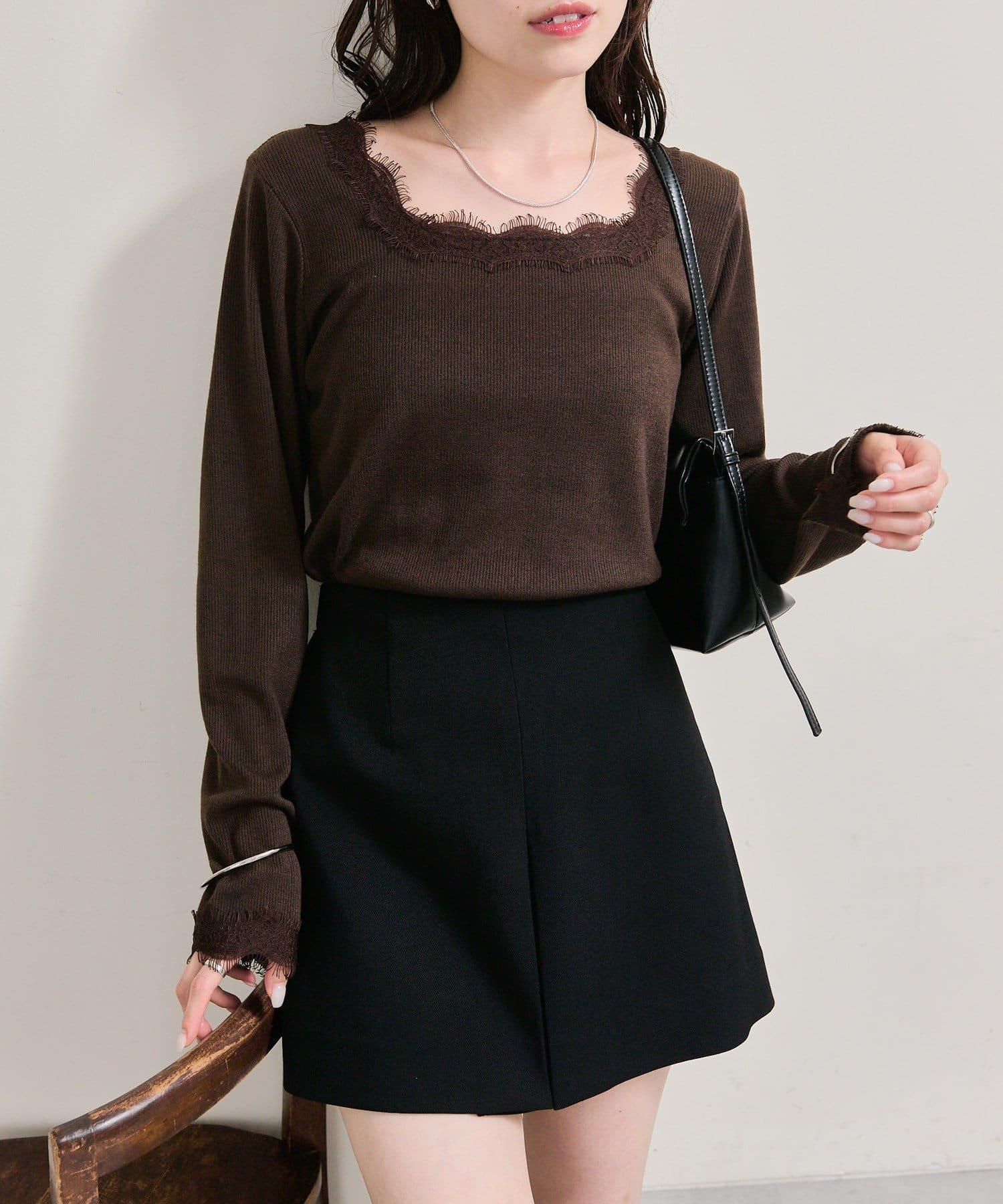 預約商品方領蕾絲長袖T恤