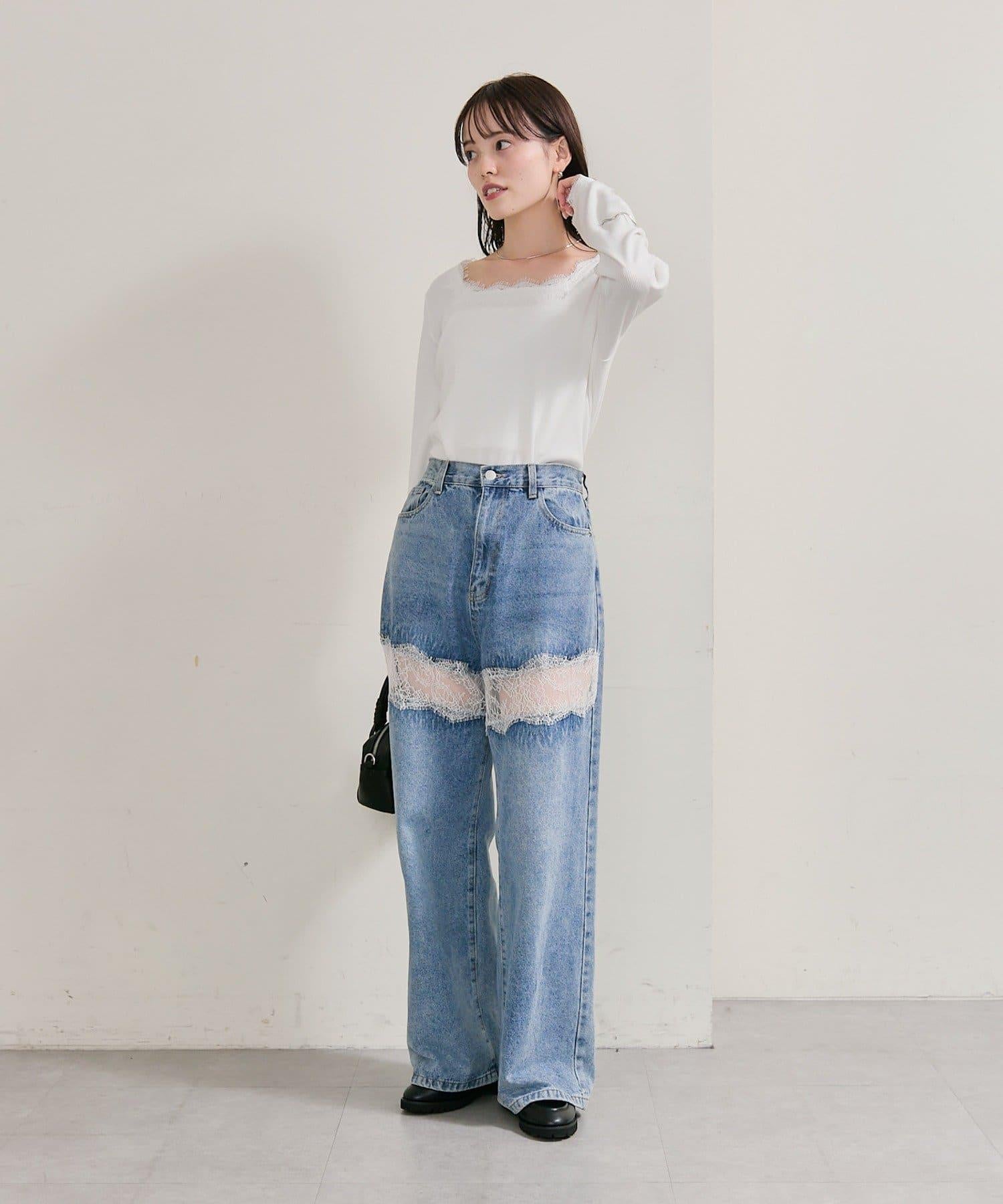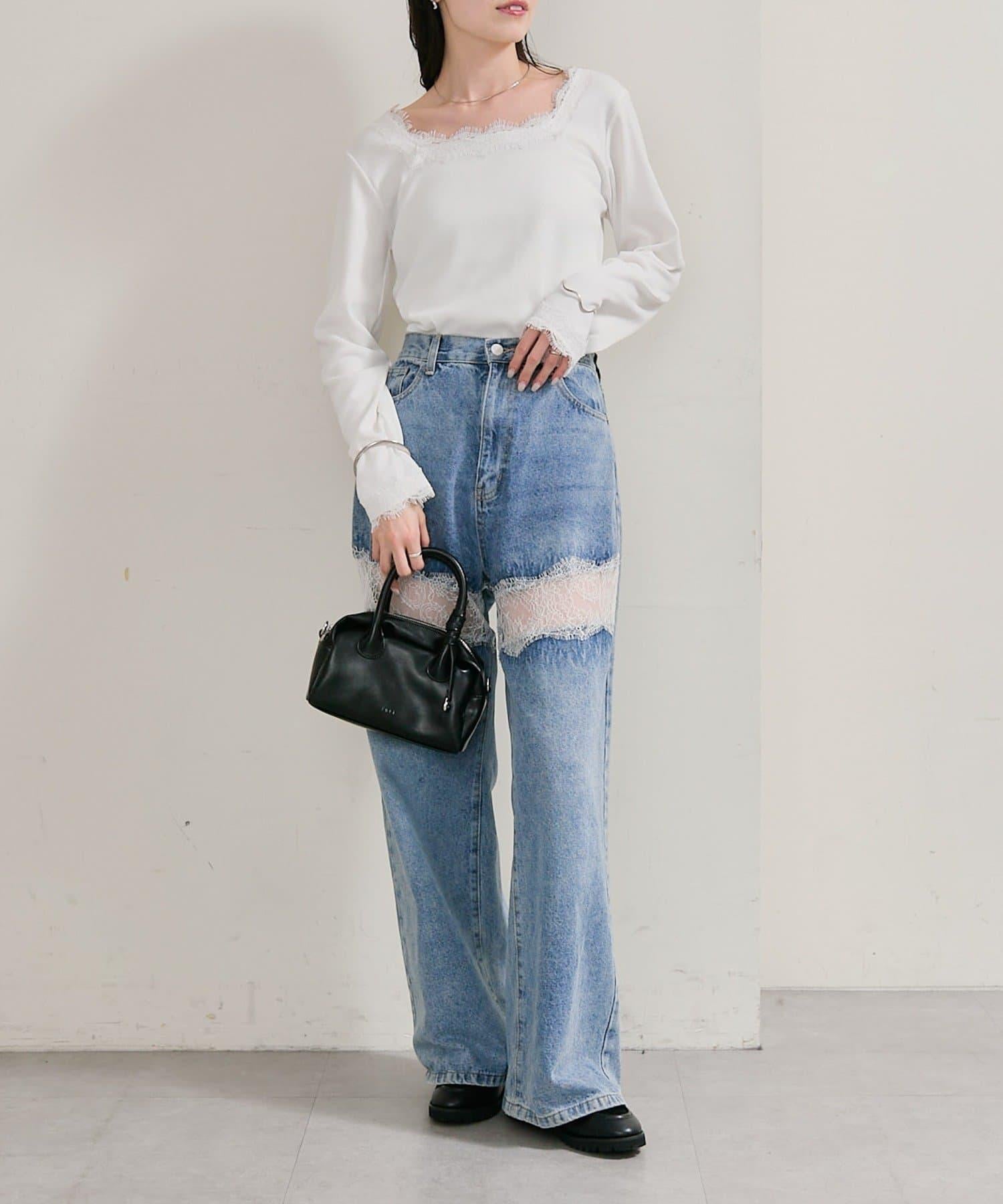方領蕾絲長袖T恤