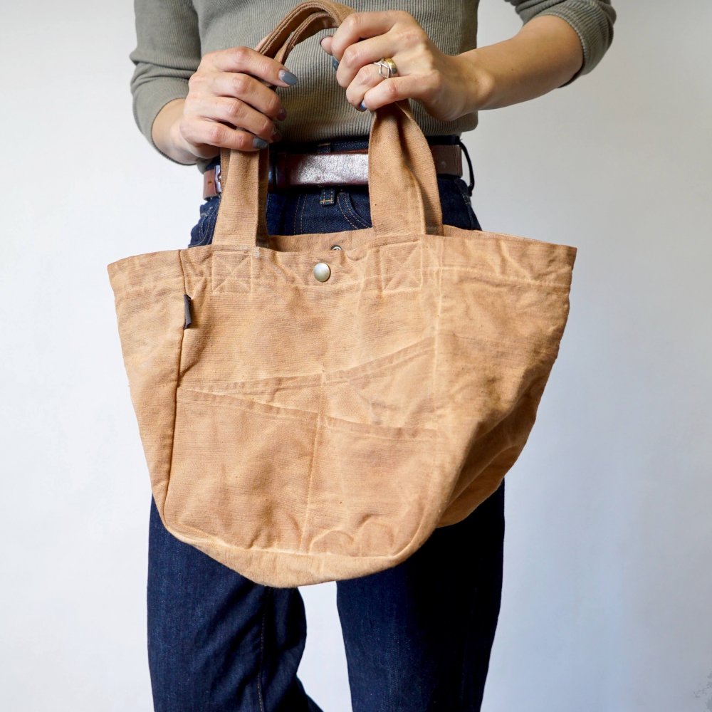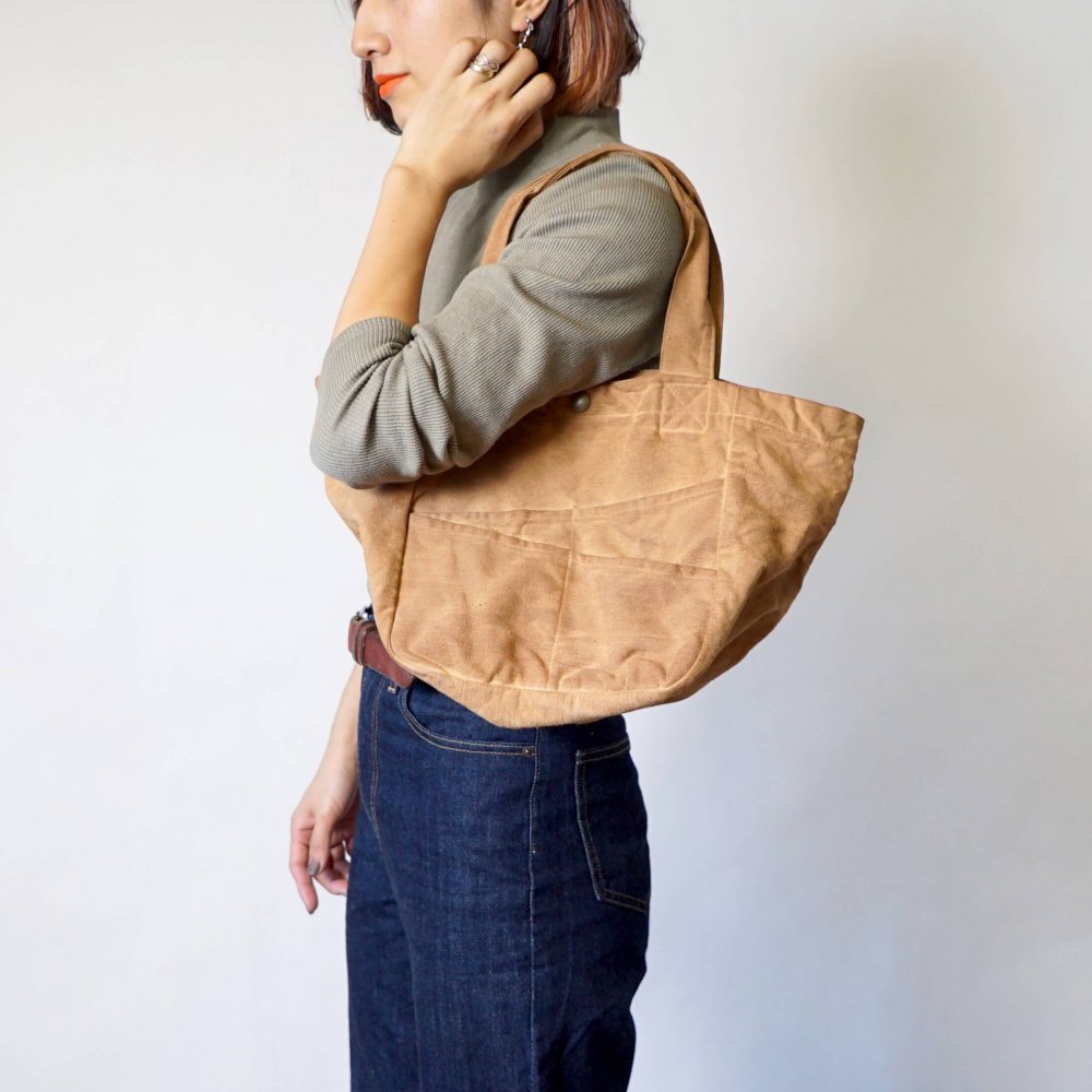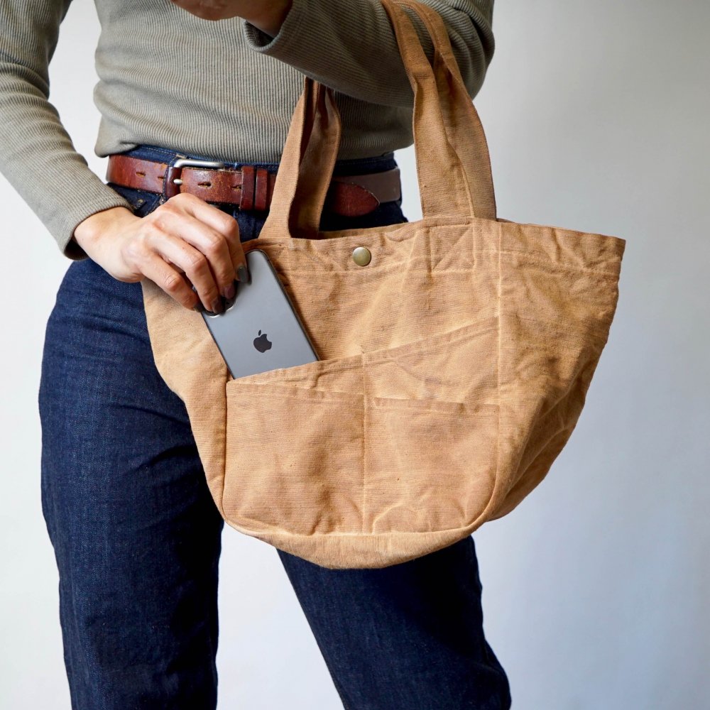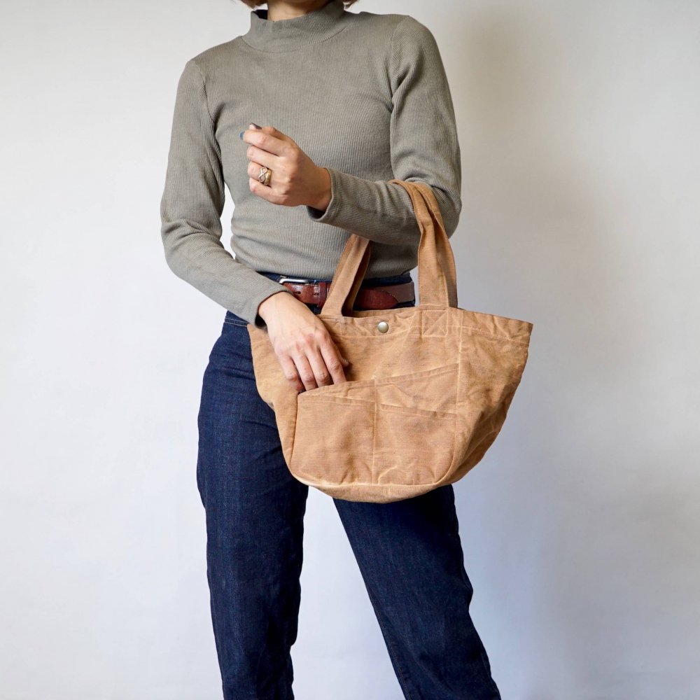四個口袋以對角線表示,外觀獨特。內側也有一個口袋。這款包的容量很大,但不會太大。但我們收到了一位顧客的意見:"這款包可以用於日常生活,雖然小巧,但需要的時候可以裝很多東西,重的時候可以斜挎在肩上"。我對這個想法非常滿意。我們曾擔心過包包的大小,但通過把夾層做大,我們👍終得到了一個大小剛好適合日常使用的包包。簡潔的設計使其易於使用。 [尺寸] [材料] 100%純棉前帆布/三河紡織品(愛知縣西尾市生產) [染色] UZUiRO/柿石染色/使用京都無味柿石 (本產品利用了紋理、略微不均勻的顏色和皺褶感。由於柿單寧染色的性質,產品周圍會呈現出陳舊的質感。請在瞭解上述特點的基礎上購買)。----------------------------------------------------------- [布料的故事] 用粗線織成的布料是酒鋪和米鋪的標準布料。有一天,我們店突然接到一個電話。'我們的倉庫要拆了,如果你們能用一些我們織的布料......'。電話是一位 90 歲的老奶奶打來的,她已經關閉了在家鄉西尾的機械商店。她說,她和喜歡機械的丈夫在昭和與平成時代一直經營著這家店。 她說,她的丈夫去世了,她沒有接班人,所以就把店關了。她高興地講述了自己的歷史和想法。他們告訴我們,他們以前既生產針織品,也生產機織物。 我們參觀了工廠,它仍然保存完好。織物已經不再生產了......" 帶著這種略帶傷感的心情, ,也萌生了將其改頭換面的願望。我們收回了充滿這種感情的珍貴的三河紡織面料,並在 上完成了產品。在 insta-live 上介紹了不同的顏色。(從 11:30 分鐘左右開始) ↓↓↓