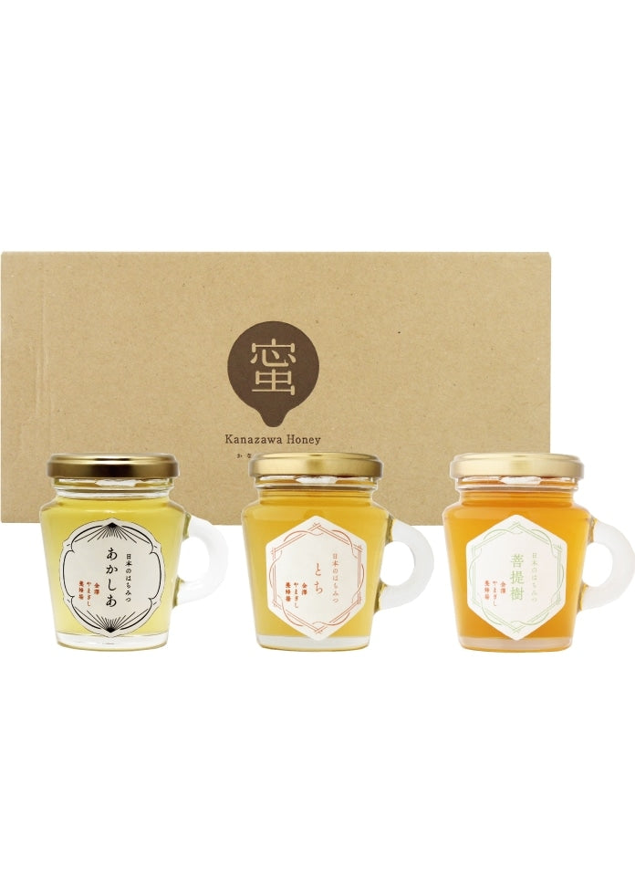 金澤山石養蜂場從日本各地精心挑選的三種蜂蜜。