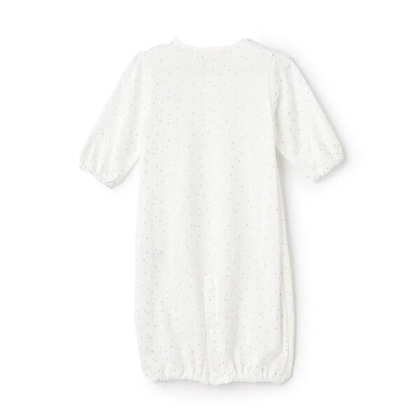 寶寶剛出生時可作為連衣裙穿,2 或 3 個月大時可通過改變襠部的紐扣開合改為長褲,一直可穿到不到 6 個月大。