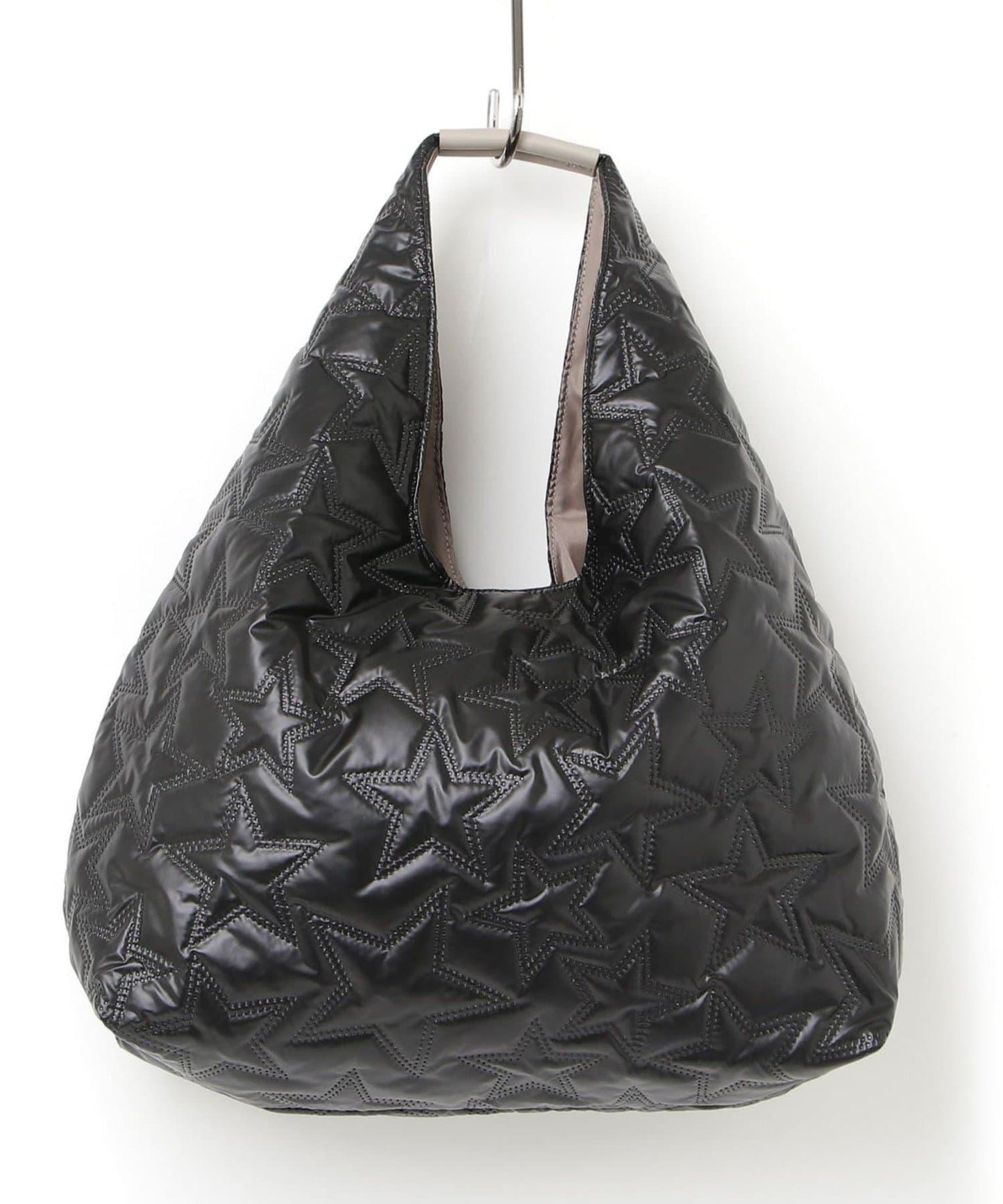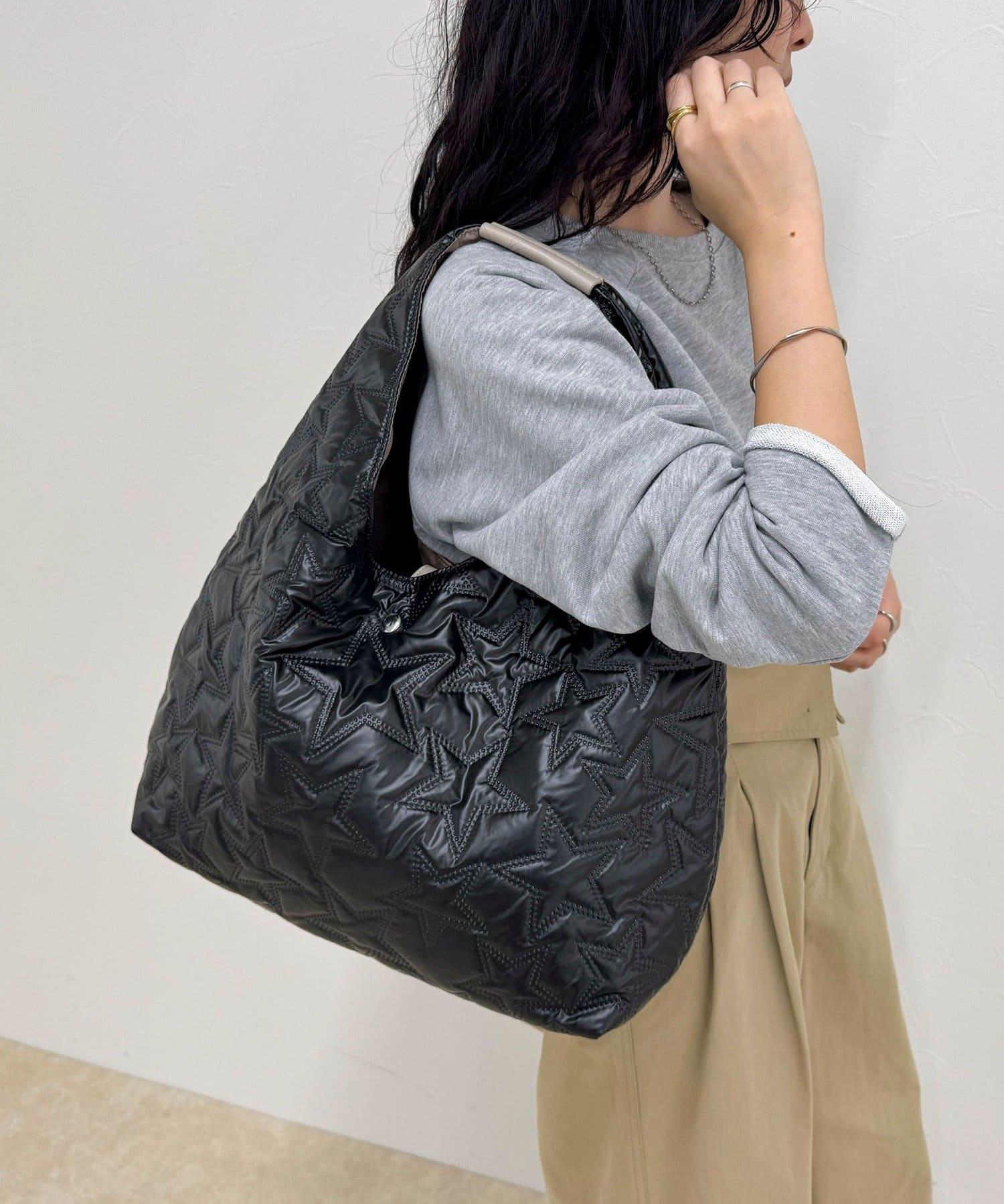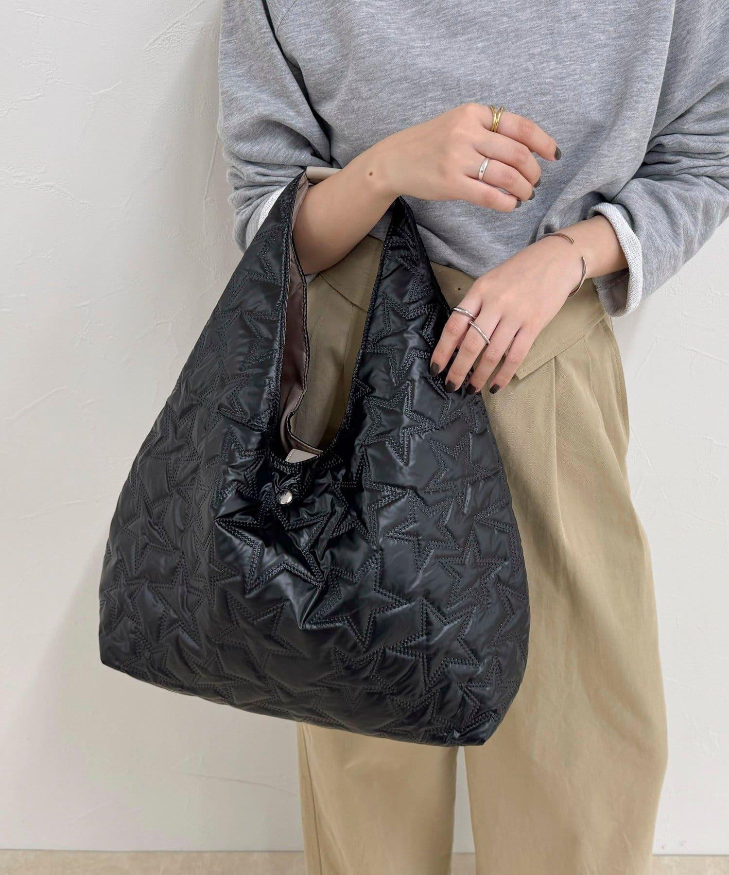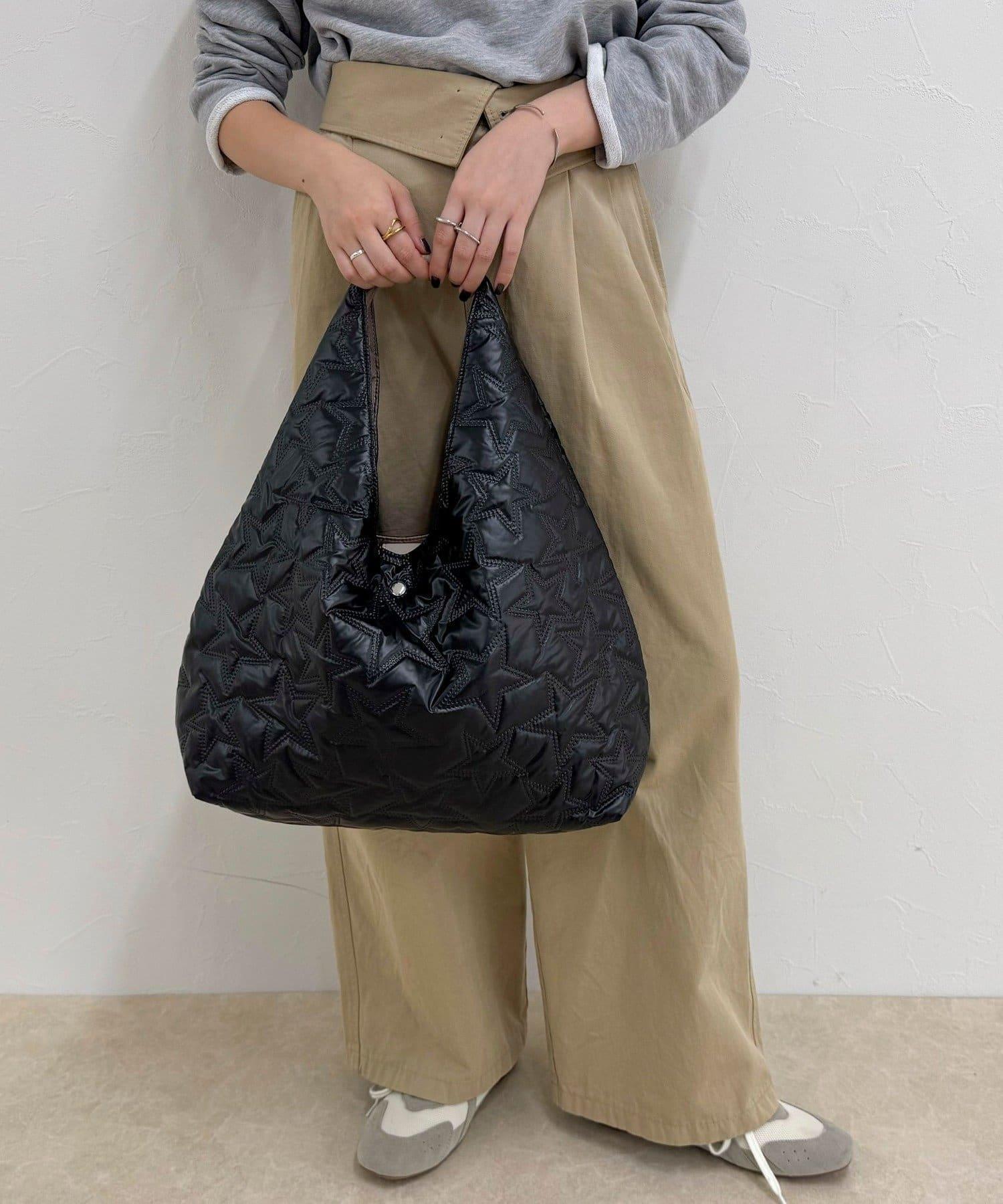 三角形手提包上有醒目的星形絎縫圖案。