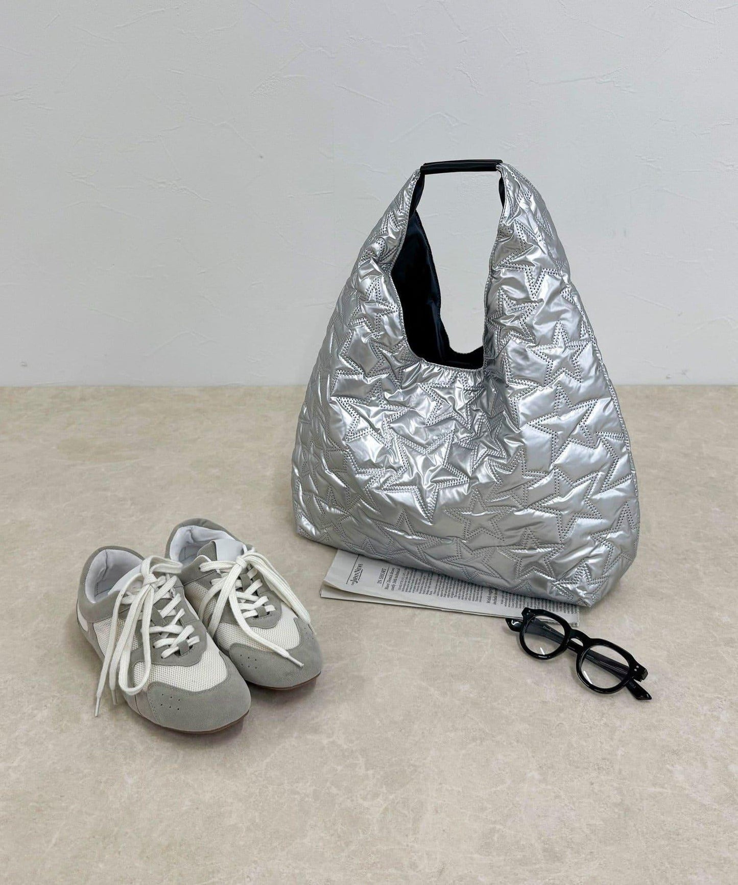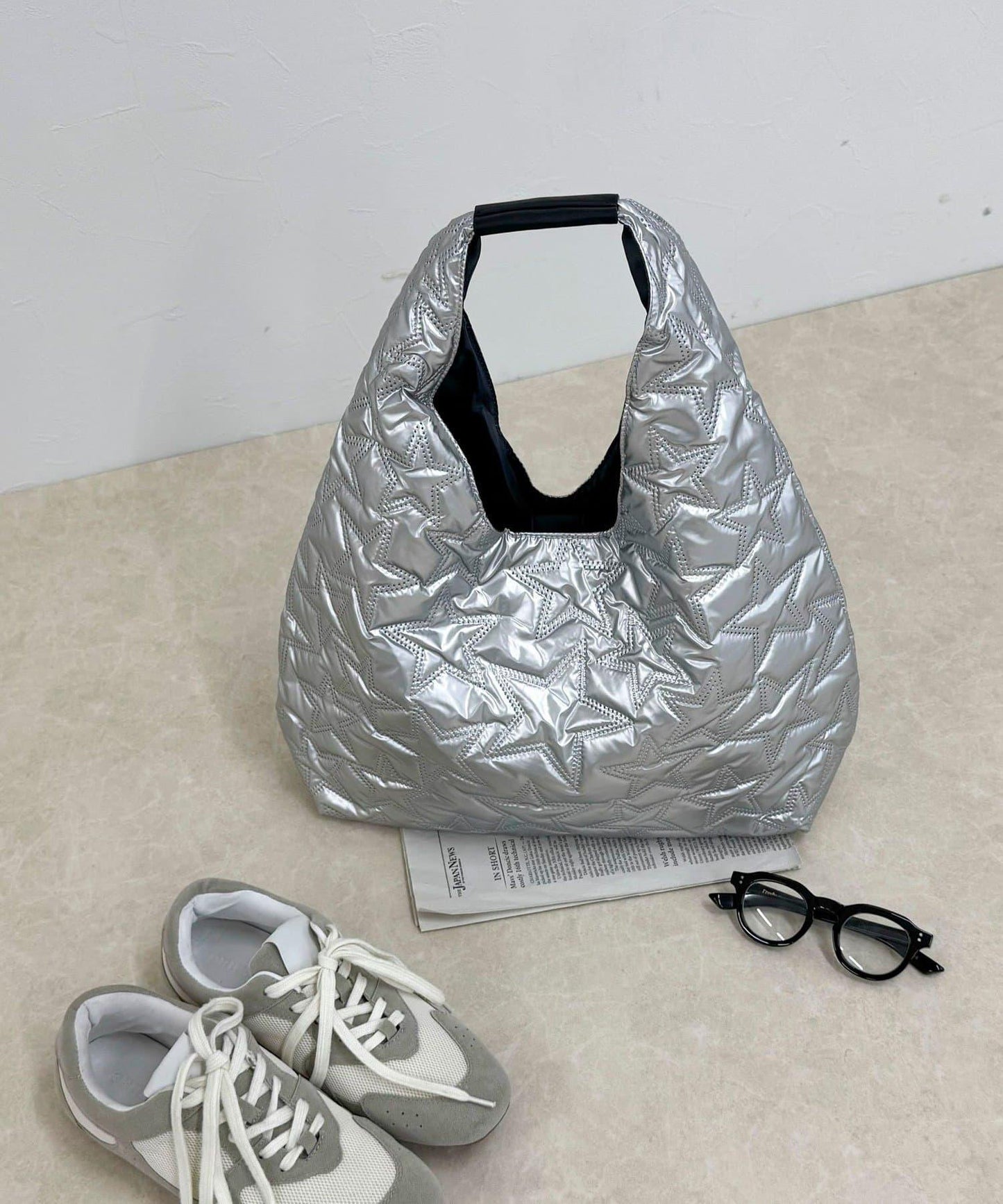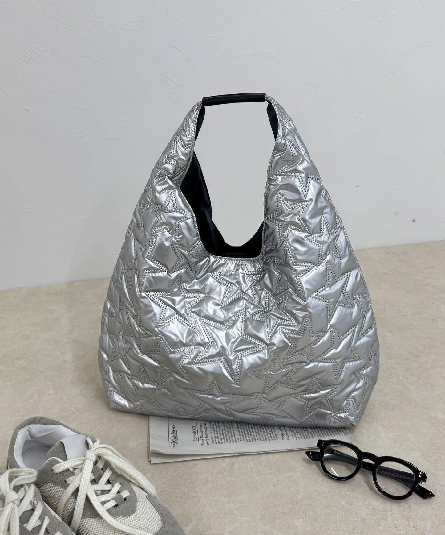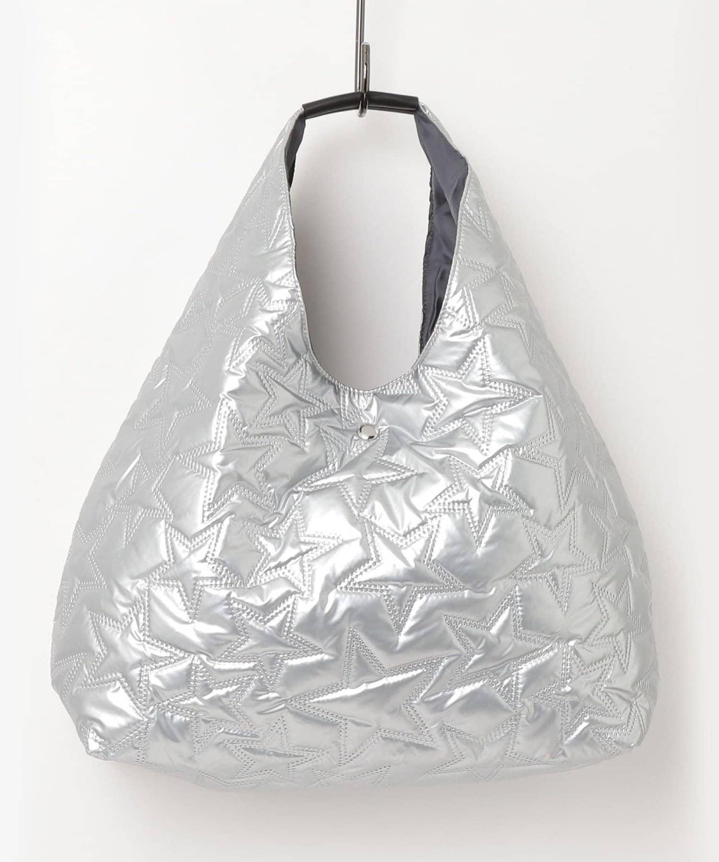 三角形手提包上有醒目的星形絎縫圖案。