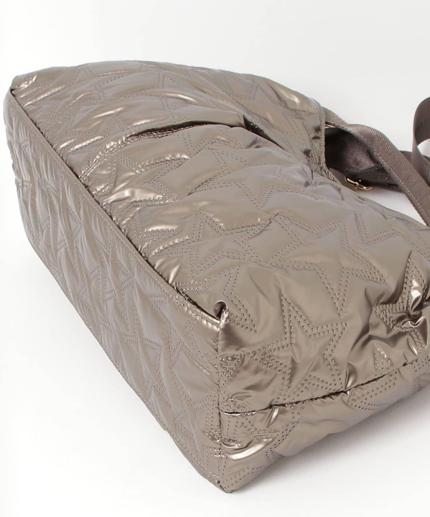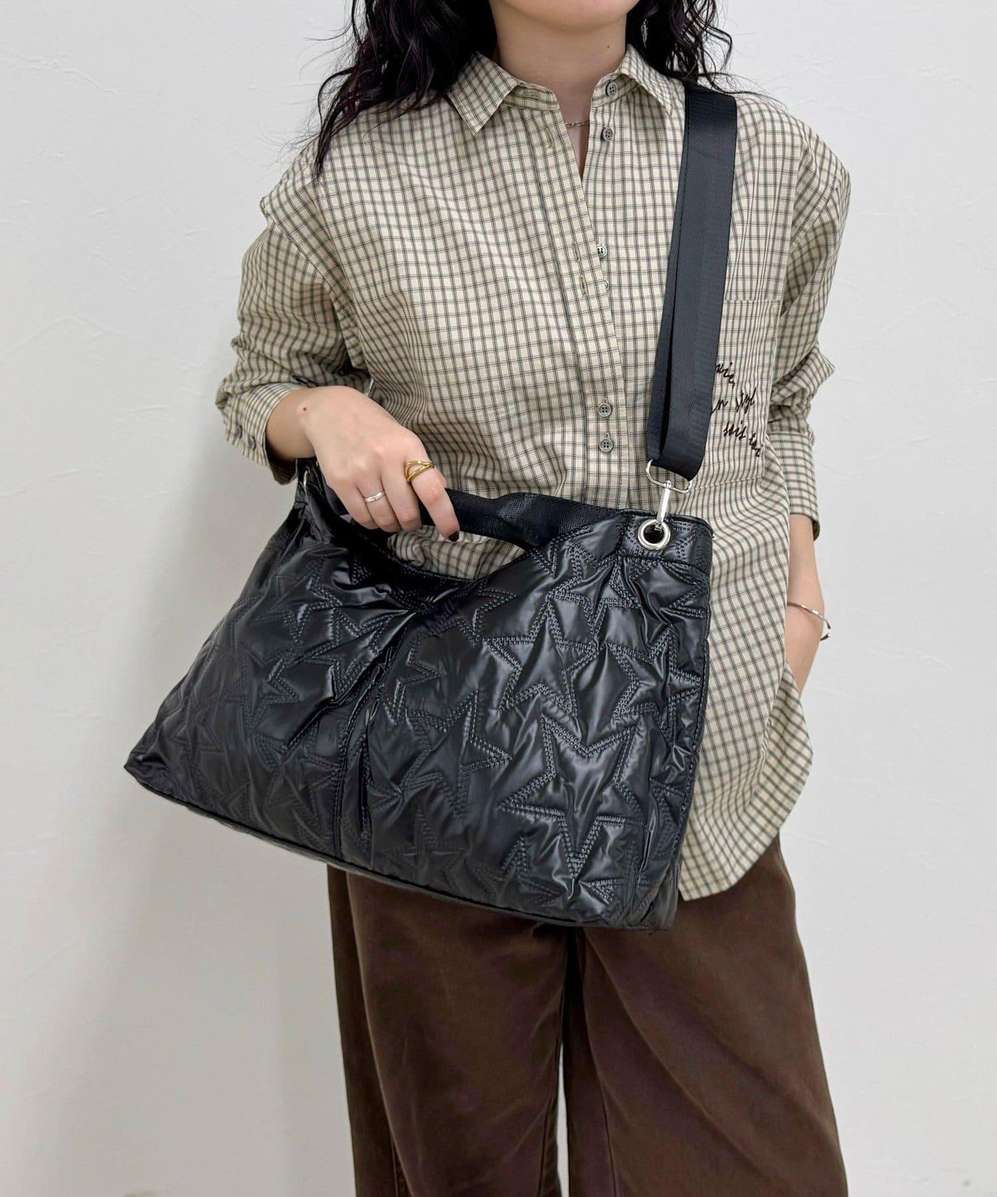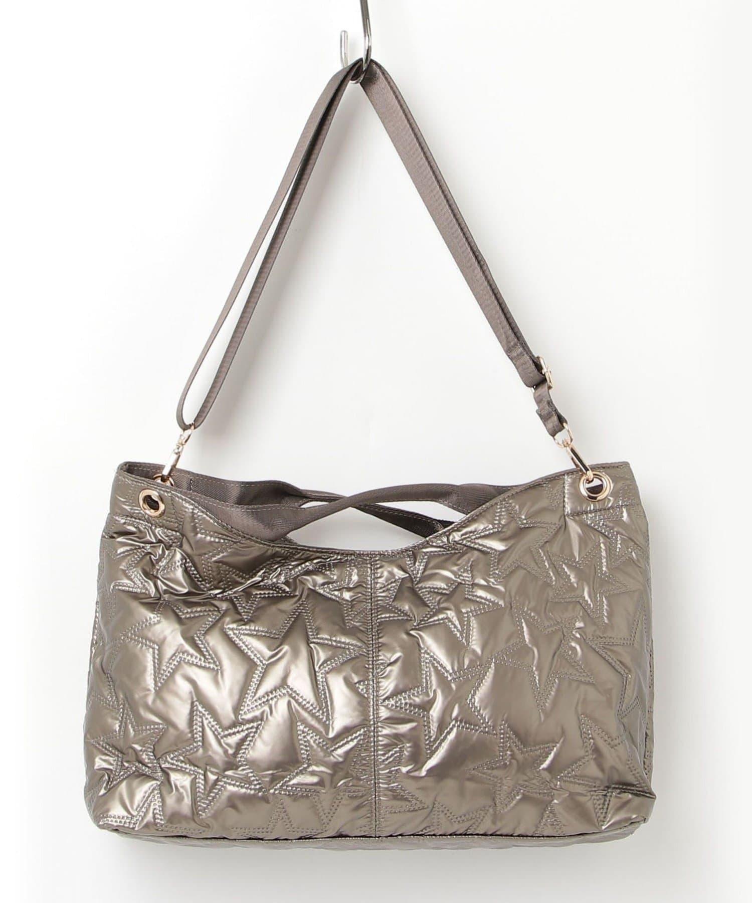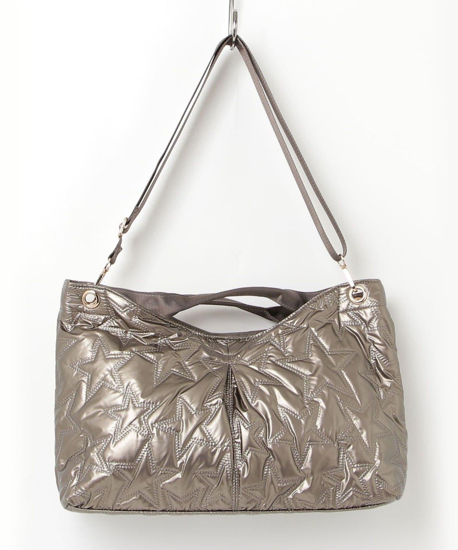 一款星形絎縫手提包,其金屬材質成為一個協調點。