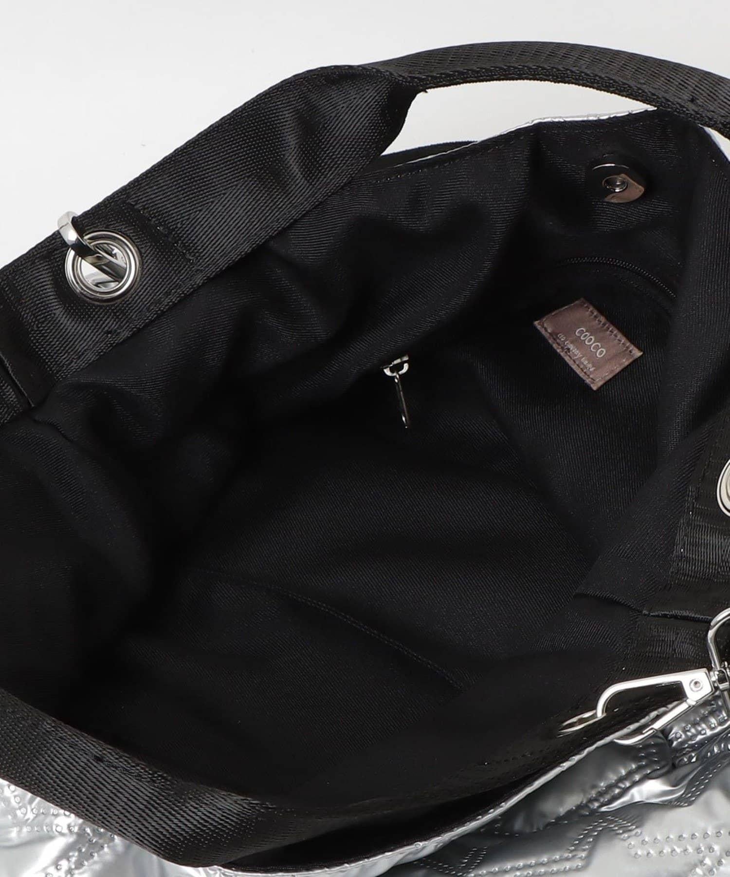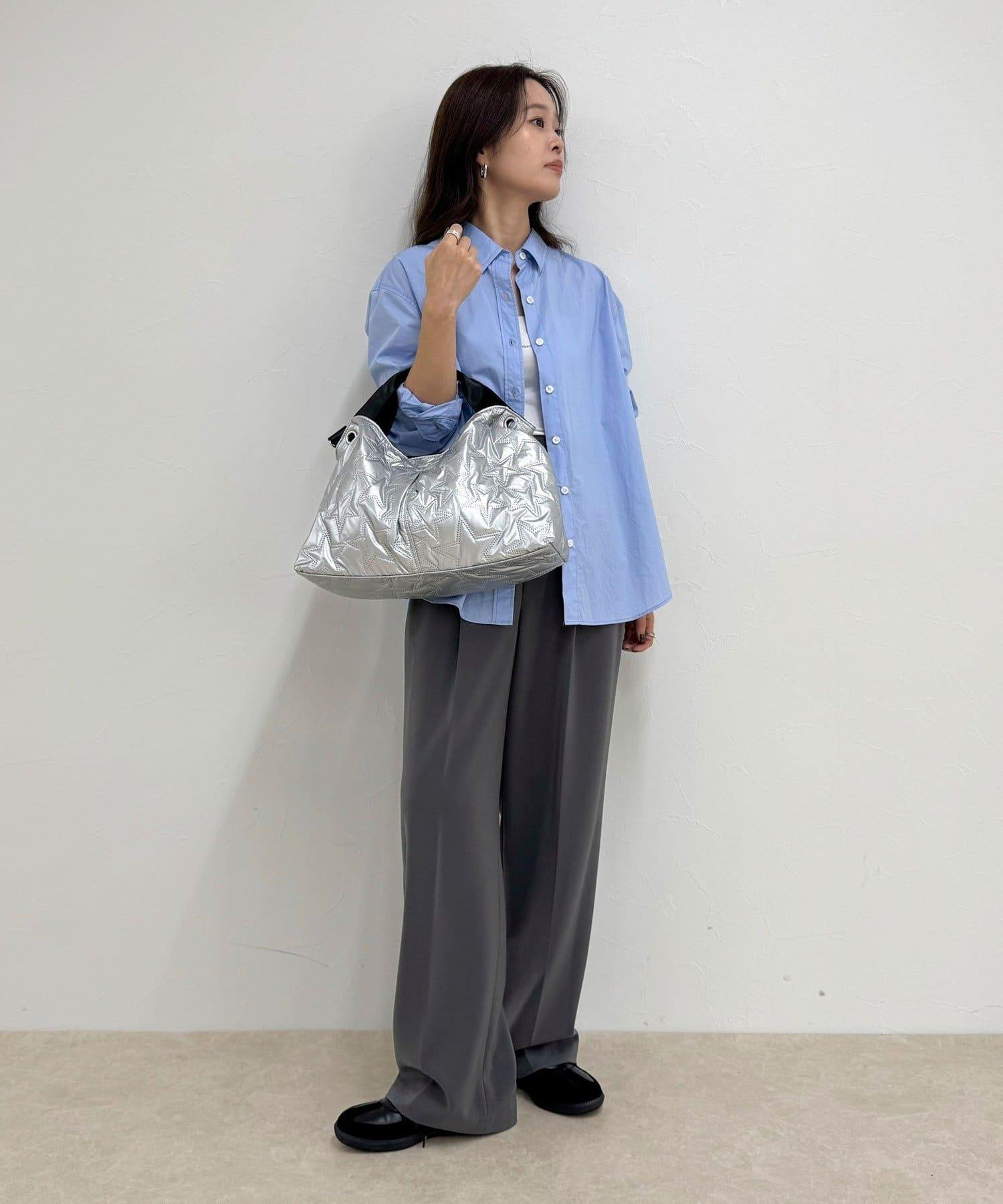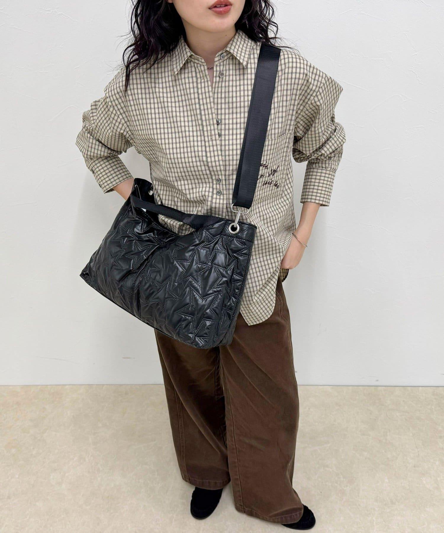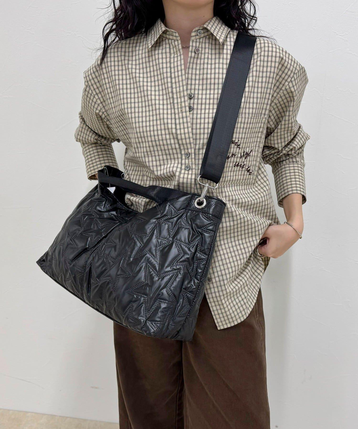 一款星形絎縫手提包,其金屬材質成為一個協調點。