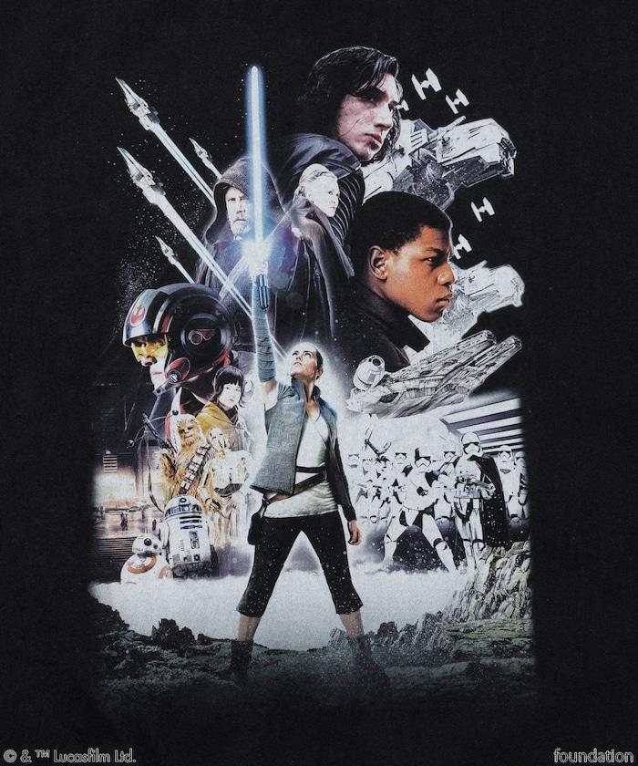 來自《星球大戰:👍後的絕地武士》(第 8 集),正面是全體演員的海報圖,中間是 "蕾伊 "舉起的光劍,背面是片名標誌和 "HOPE LIVES IN THE GALAXY "的副本。