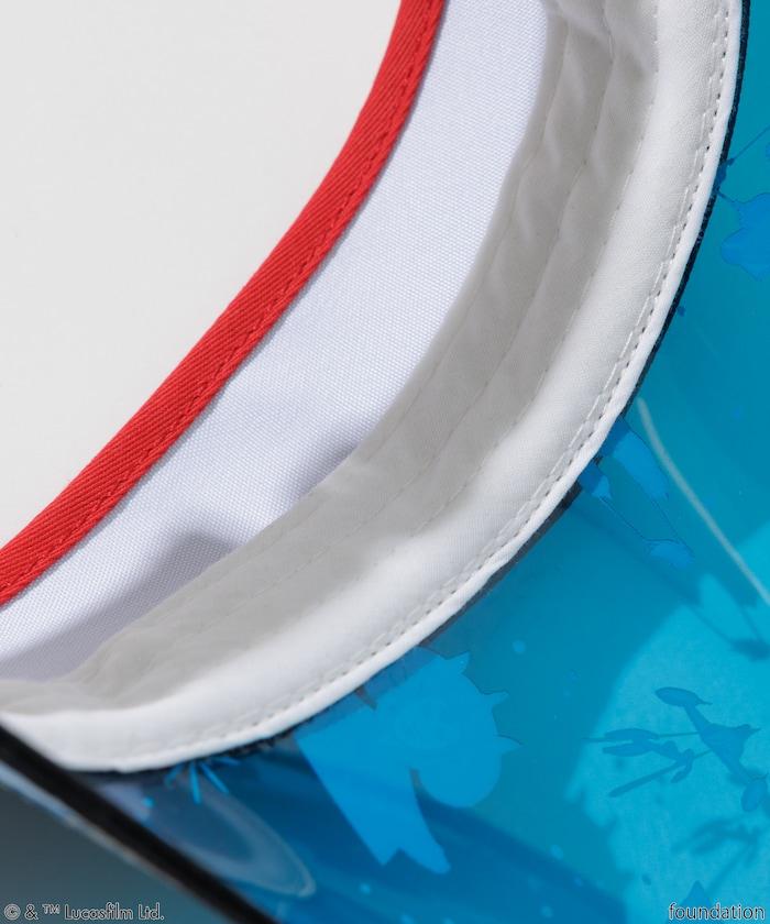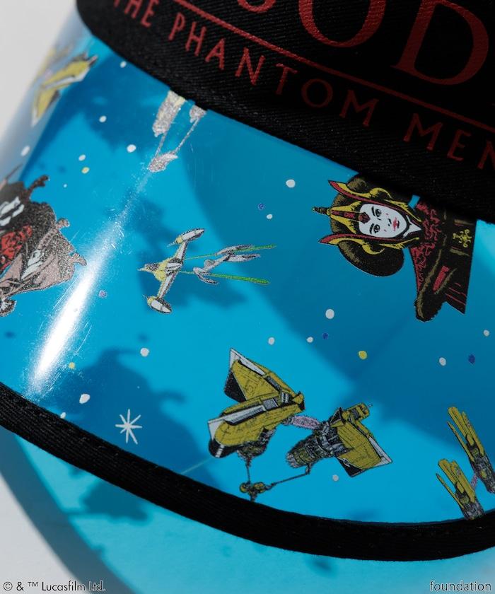 星球大戰:魅影危機(第 1 集)》中的徽標位於前額,"帕德梅-阿米達拉"、"達斯-毛爾"、"歐比-旺-克諾比 "和 "奎剛-金 "的插圖位於透明太空影像材料的藍色帽簷上。此外,遮陽板上的 "Podracer "和 "Naboo Starfighter "飛來飛去,頗具復古風格。