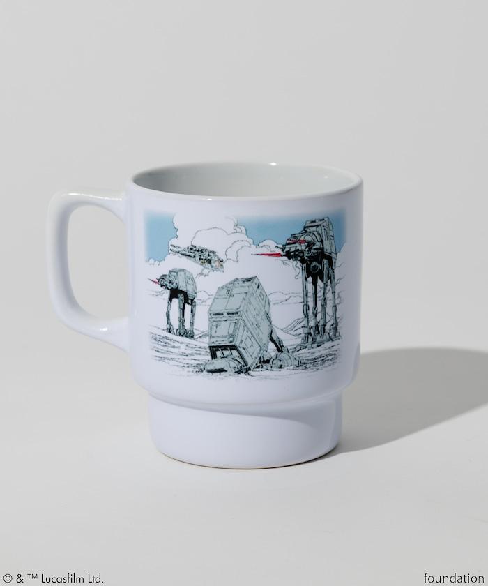 星球大戰:帝國反擊戰》(第 5 集)中,盧克-天行者乘坐的 "Tone-Tone "印有徽標。另一面是復古風格的堆疊杯,印有 AT-AT 行屍和雪地飛車在冰雪星球霍斯的戰鬥。