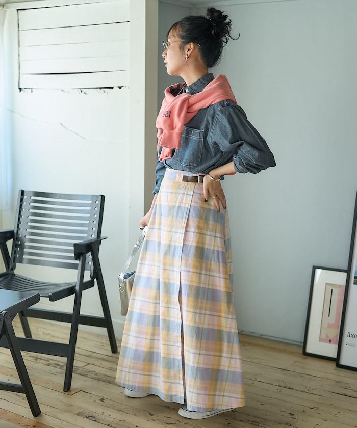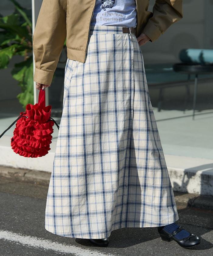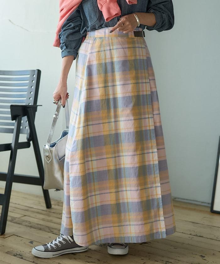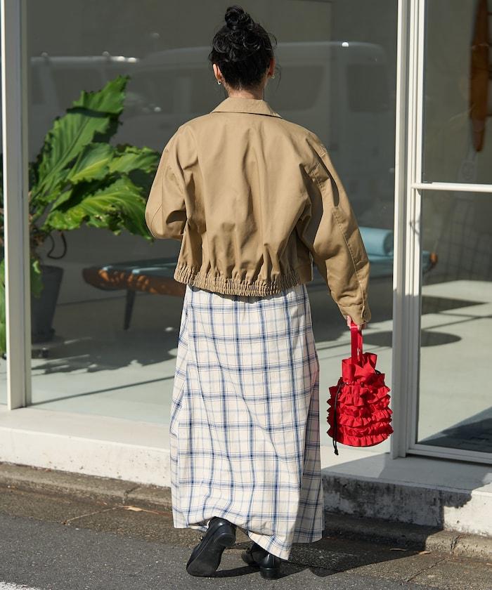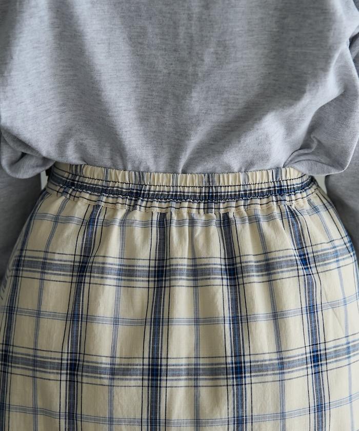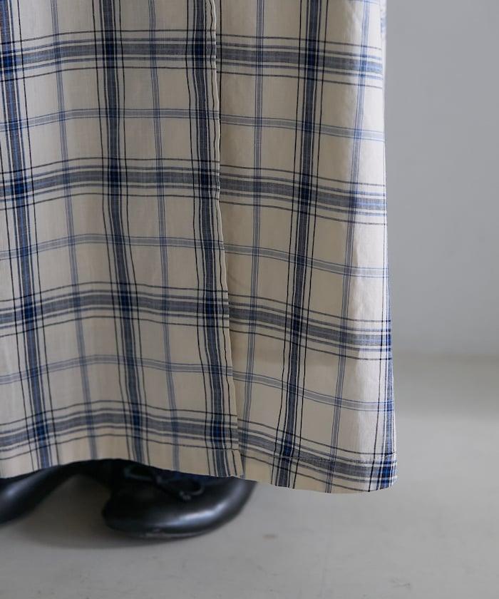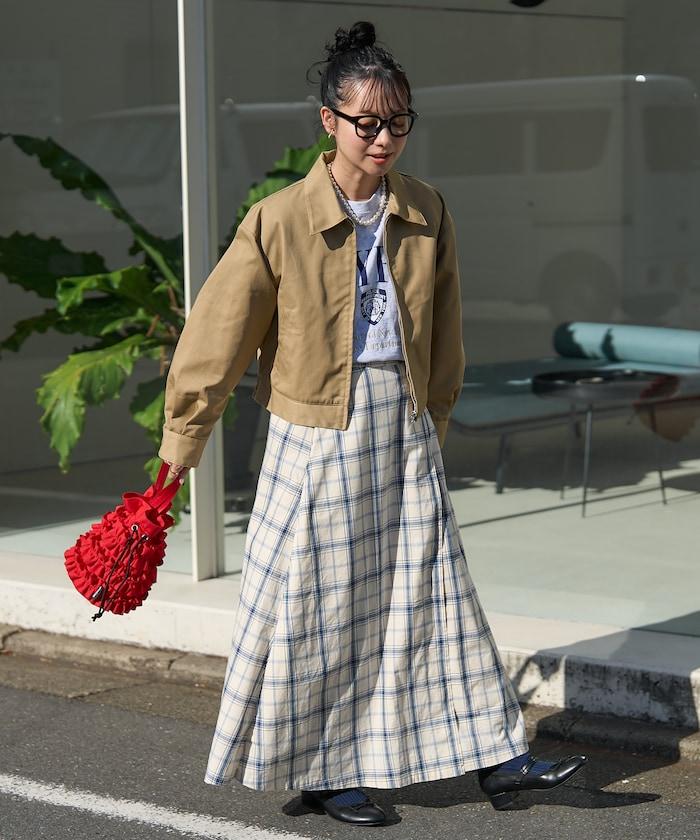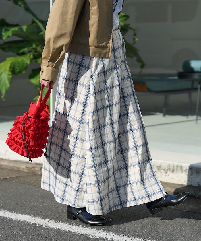 帶有淺色格紋圖案的喇叭裙,營造出本季的氛圍。