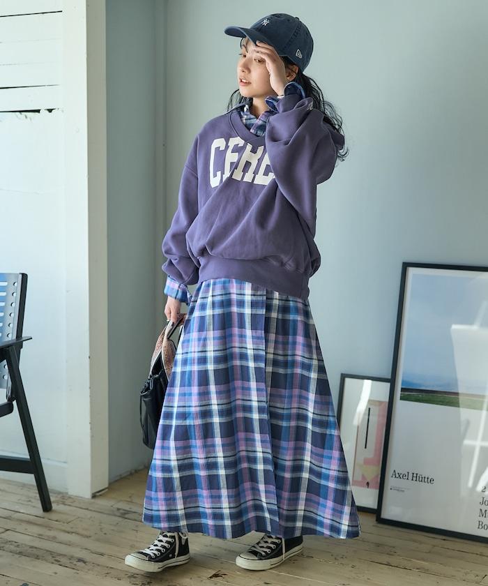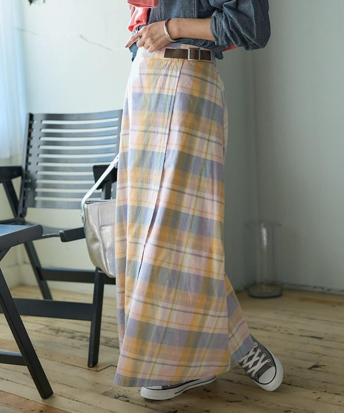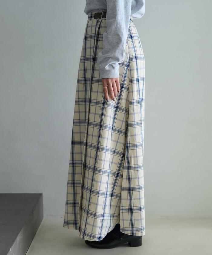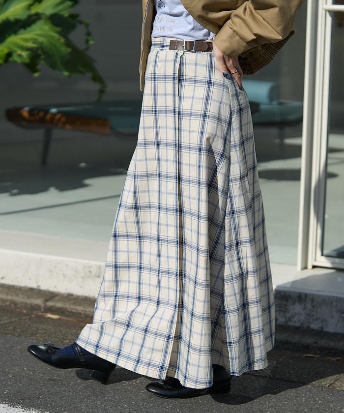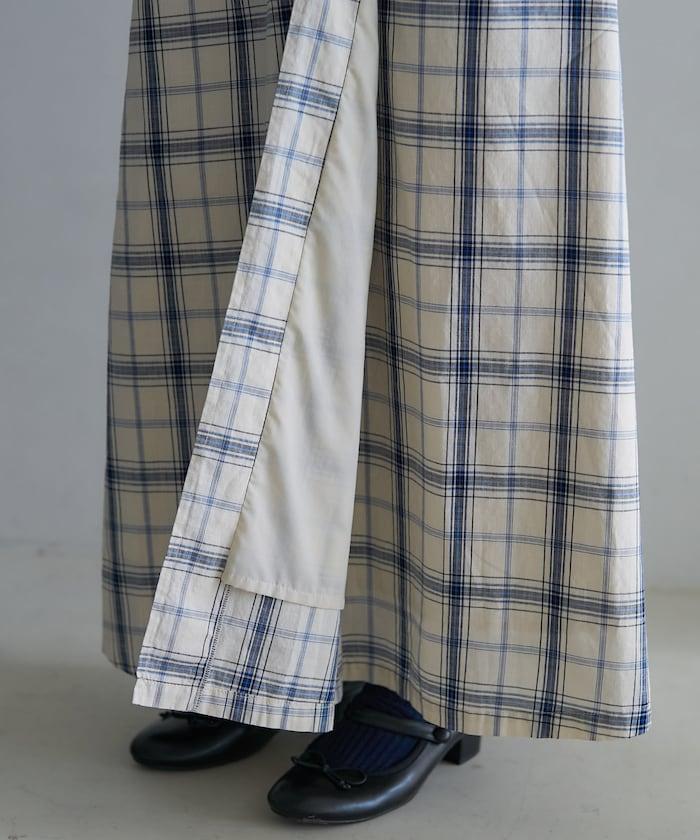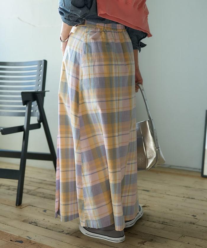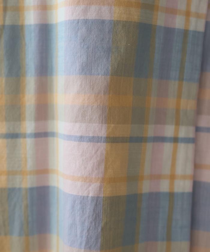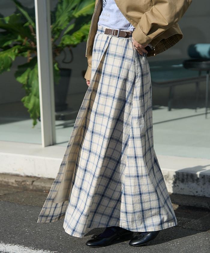 帶有淺色格紋圖案的喇叭裙,營造出本季的氛圍。