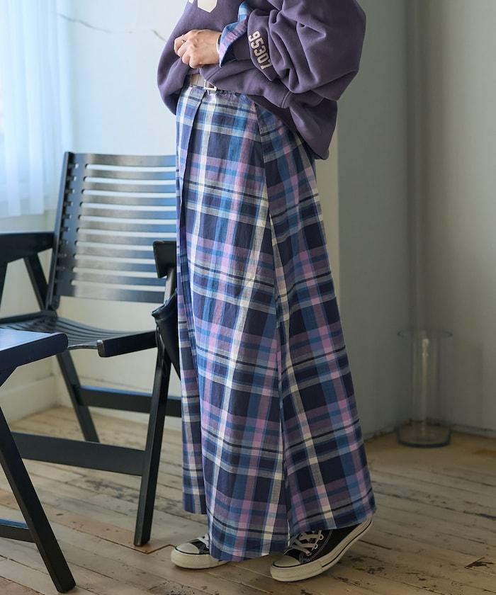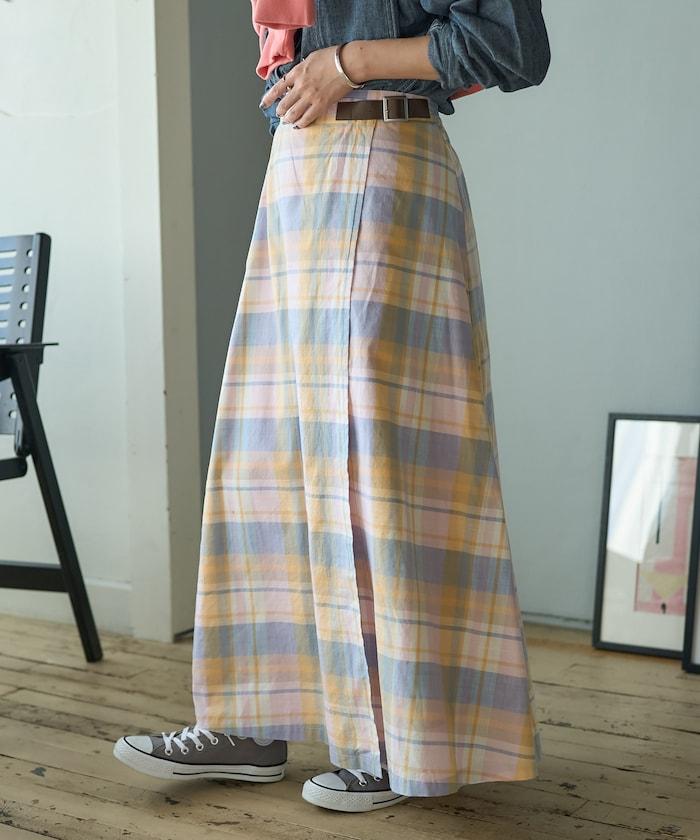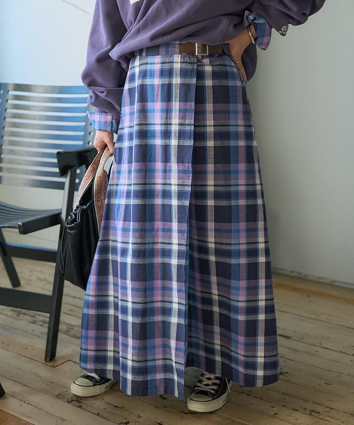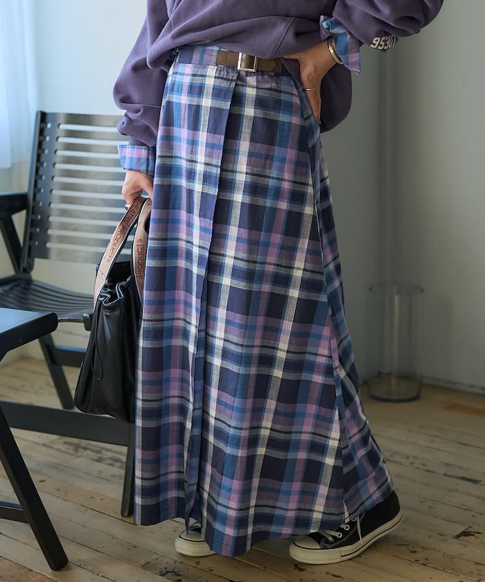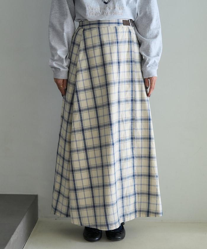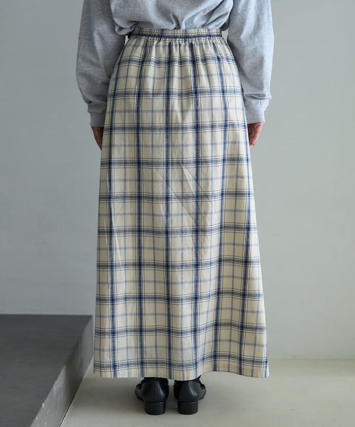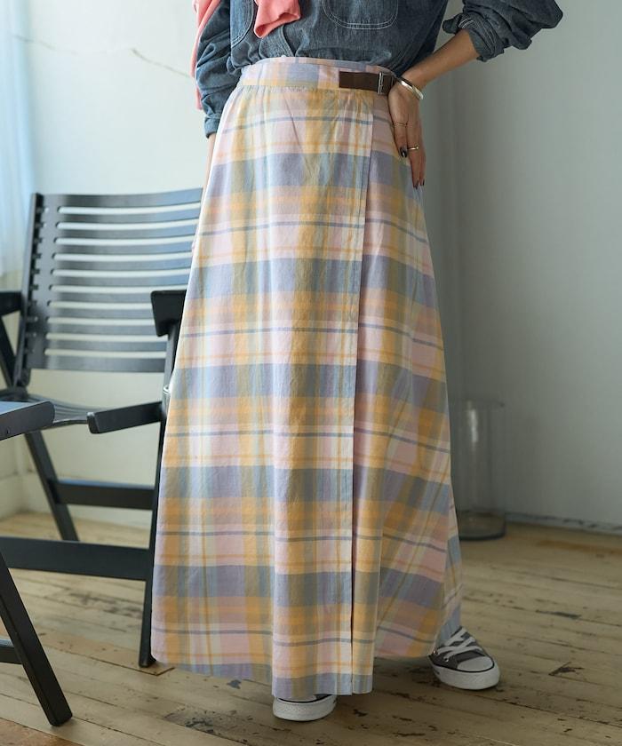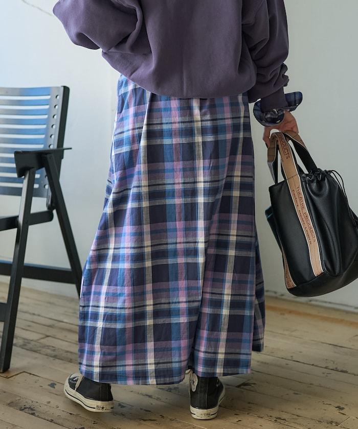 帶有淺色格紋圖案的喇叭裙,營造出本季的氛圍。