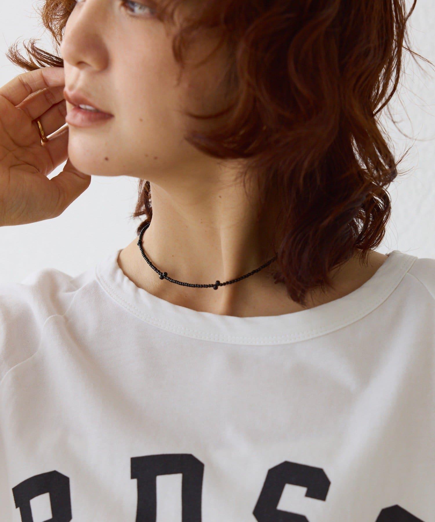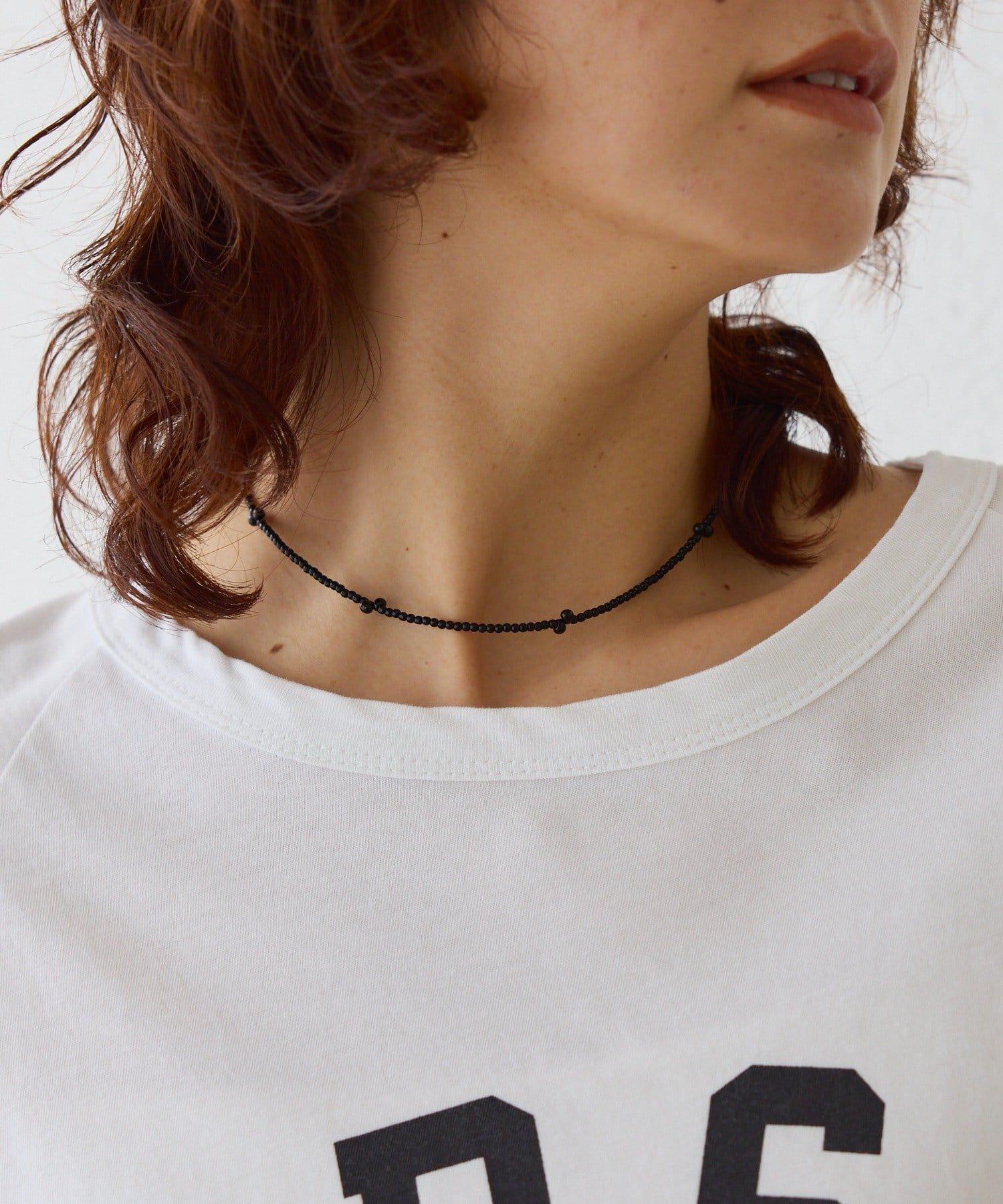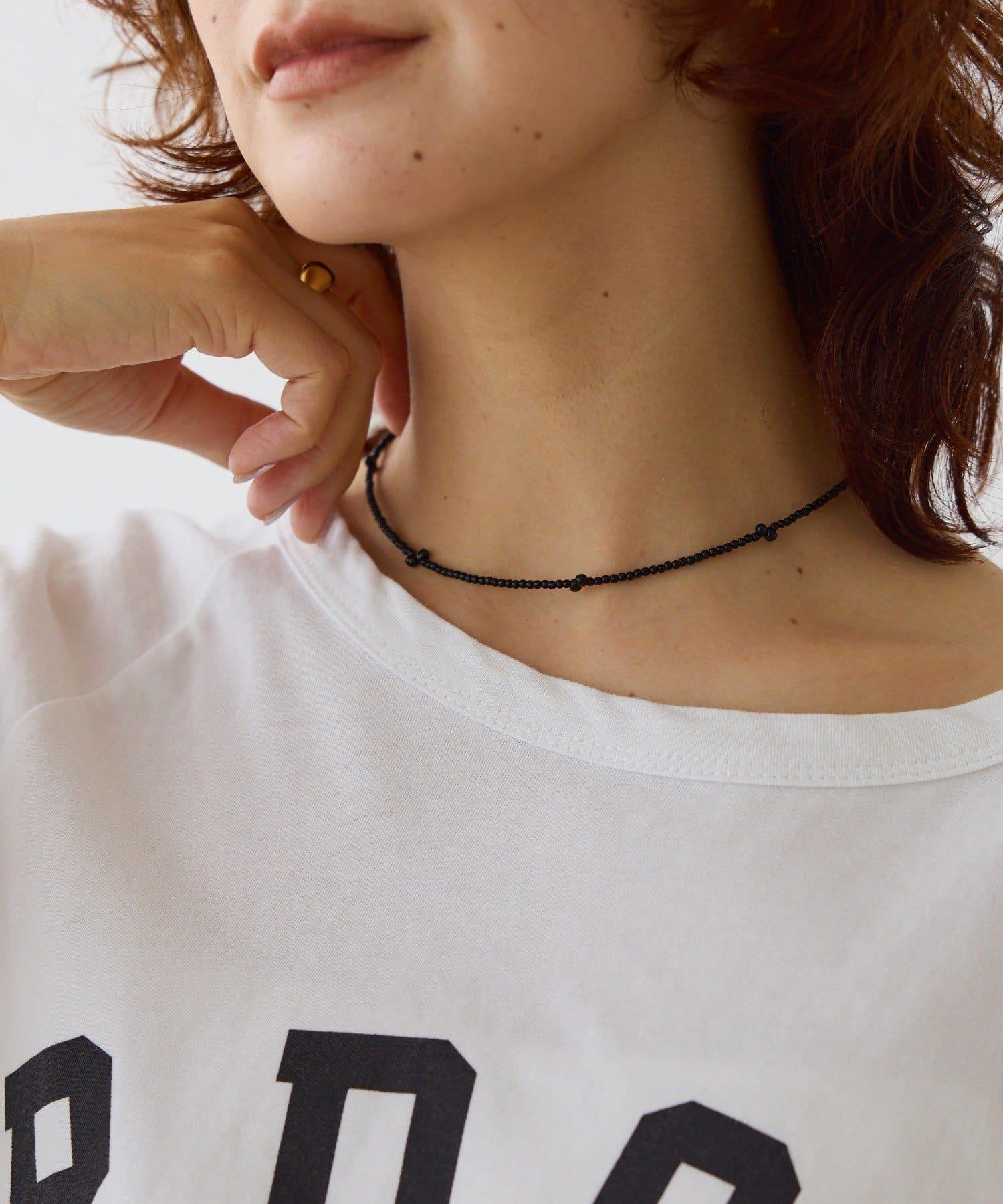 黑色珠子短項鍊。