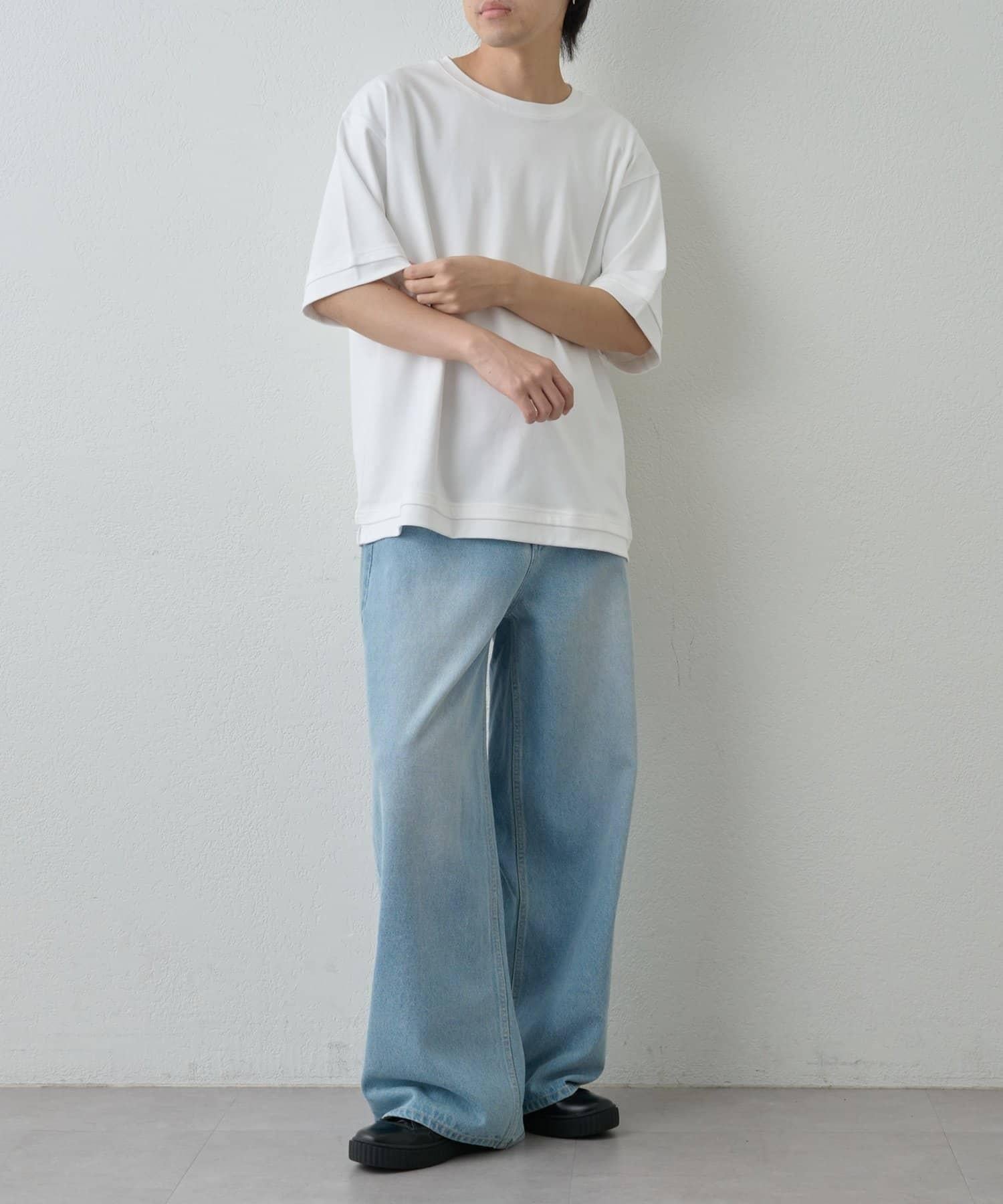 乍看之下,它只是一件普通的 T 恤,但袖子和下襬上別具一格的開關設計增加了服裝的層次感,使其看起來更加時尚。