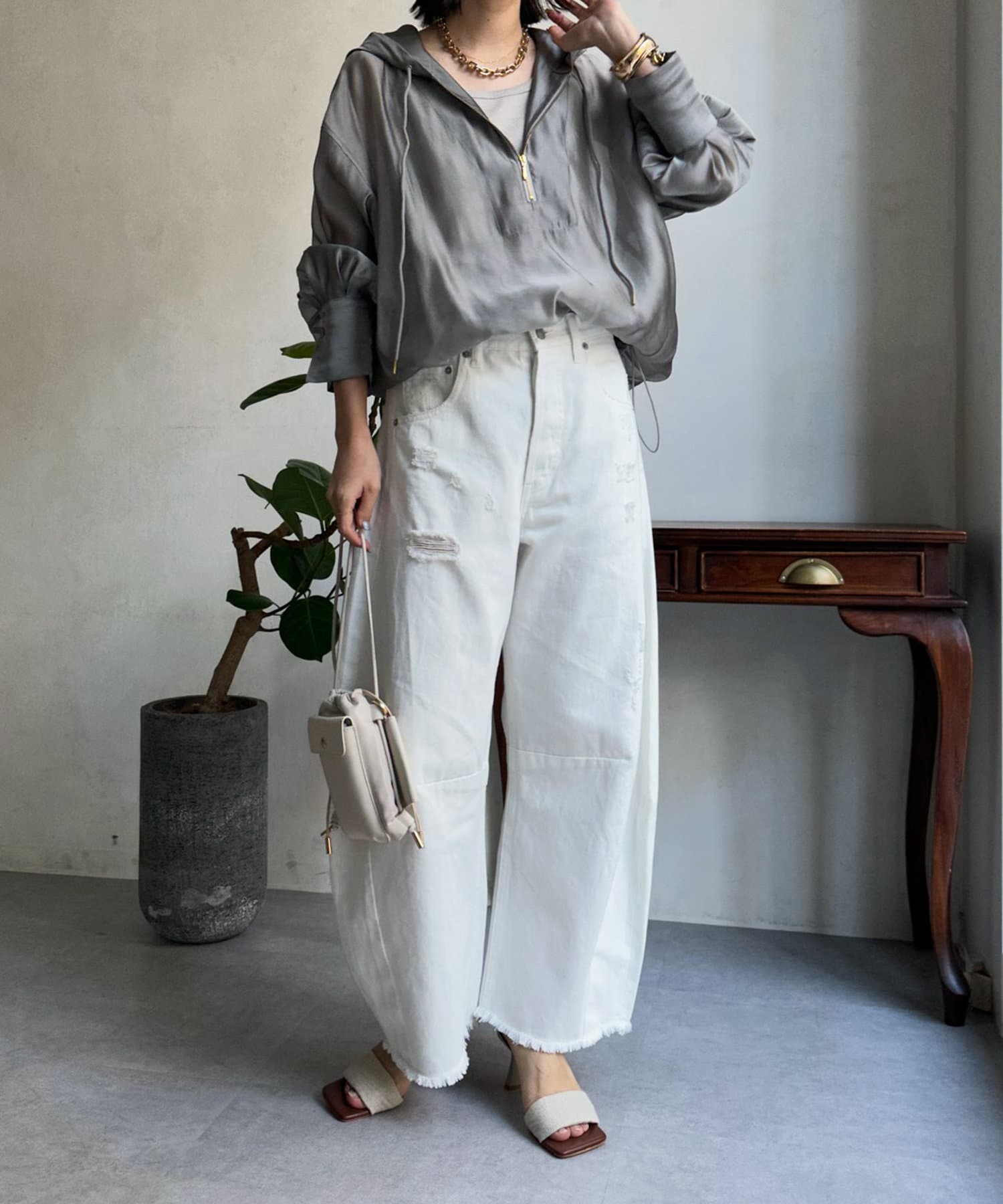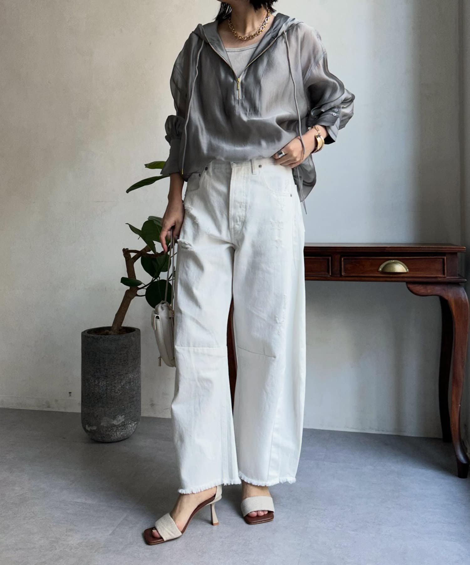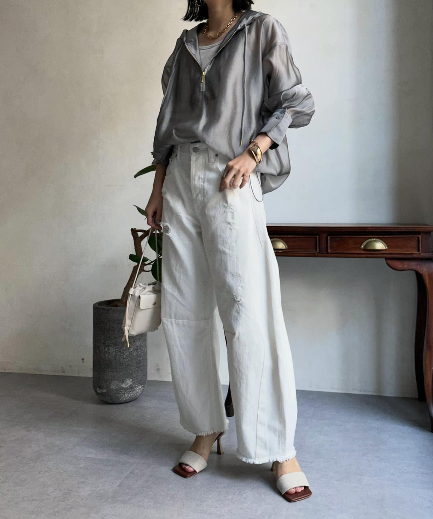 廓形在接近下襬時變得更加苗條,同時覆蓋了令人關注的區域,如臀部線條和腿部線條。
