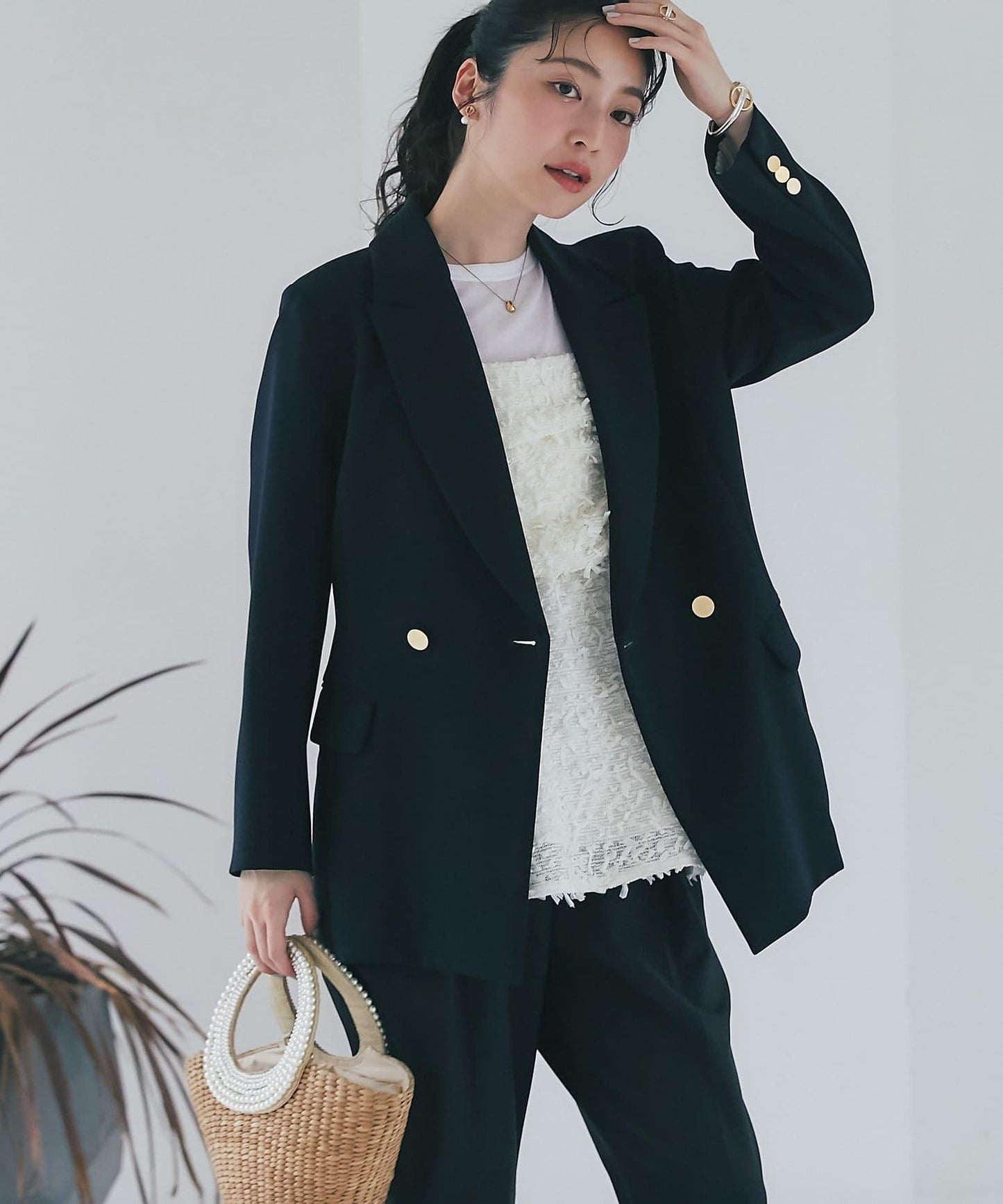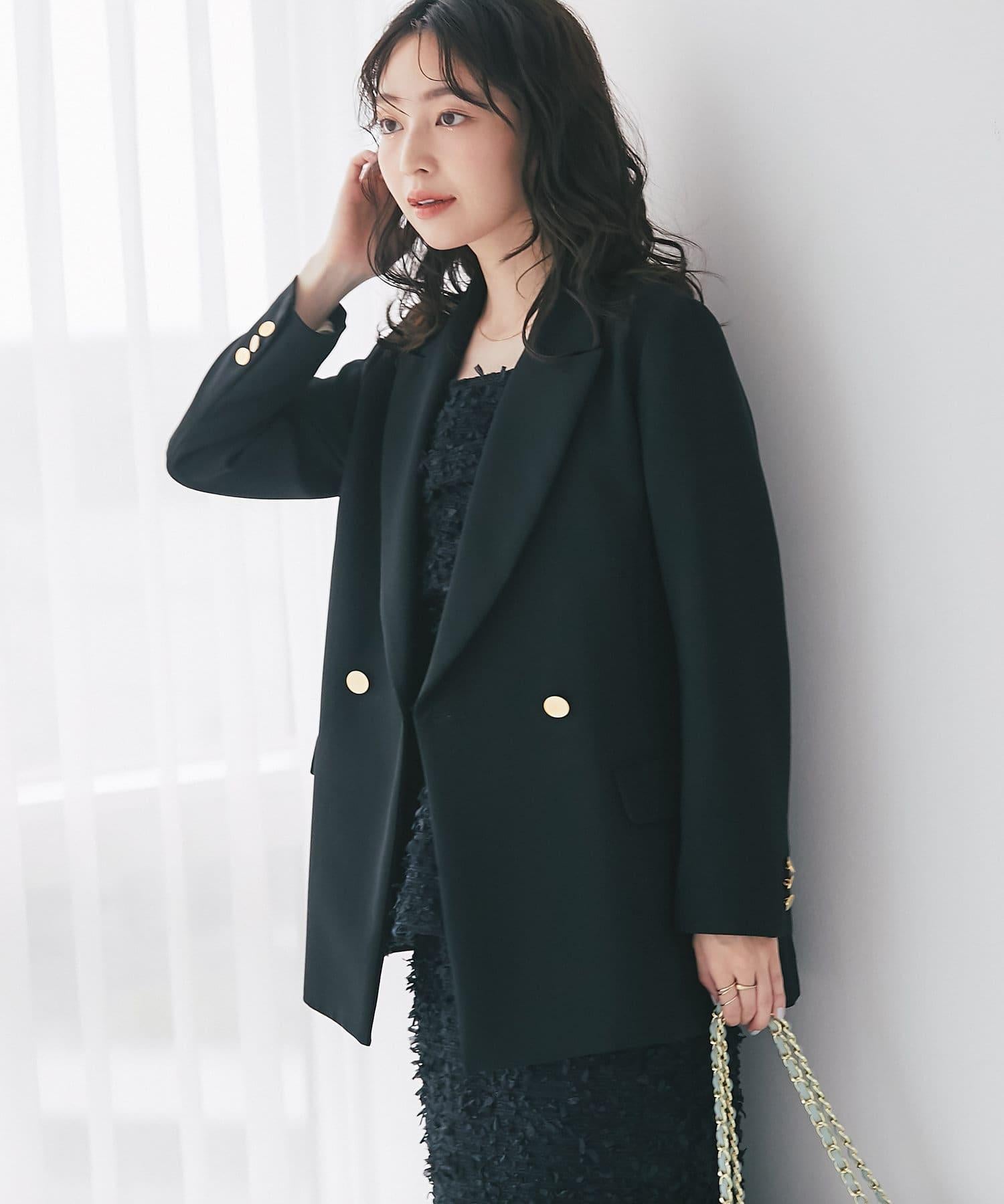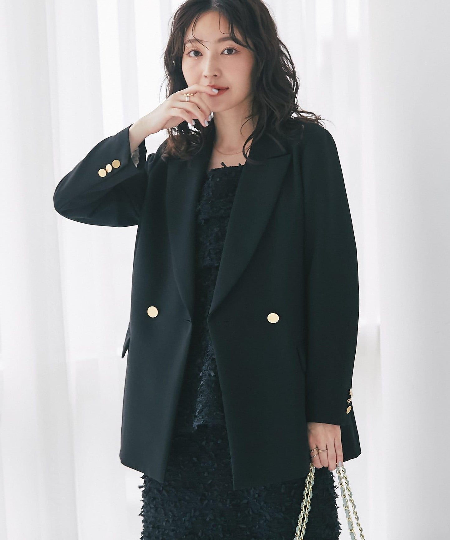 ☑ 金色紐扣引導視線上移,有效提升氣質。