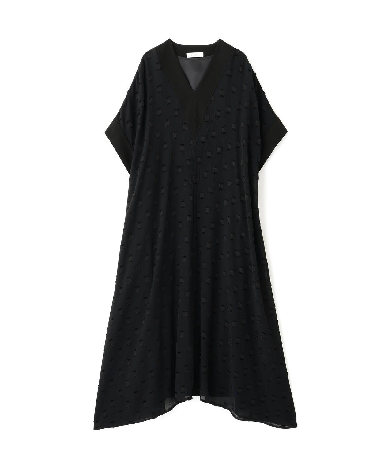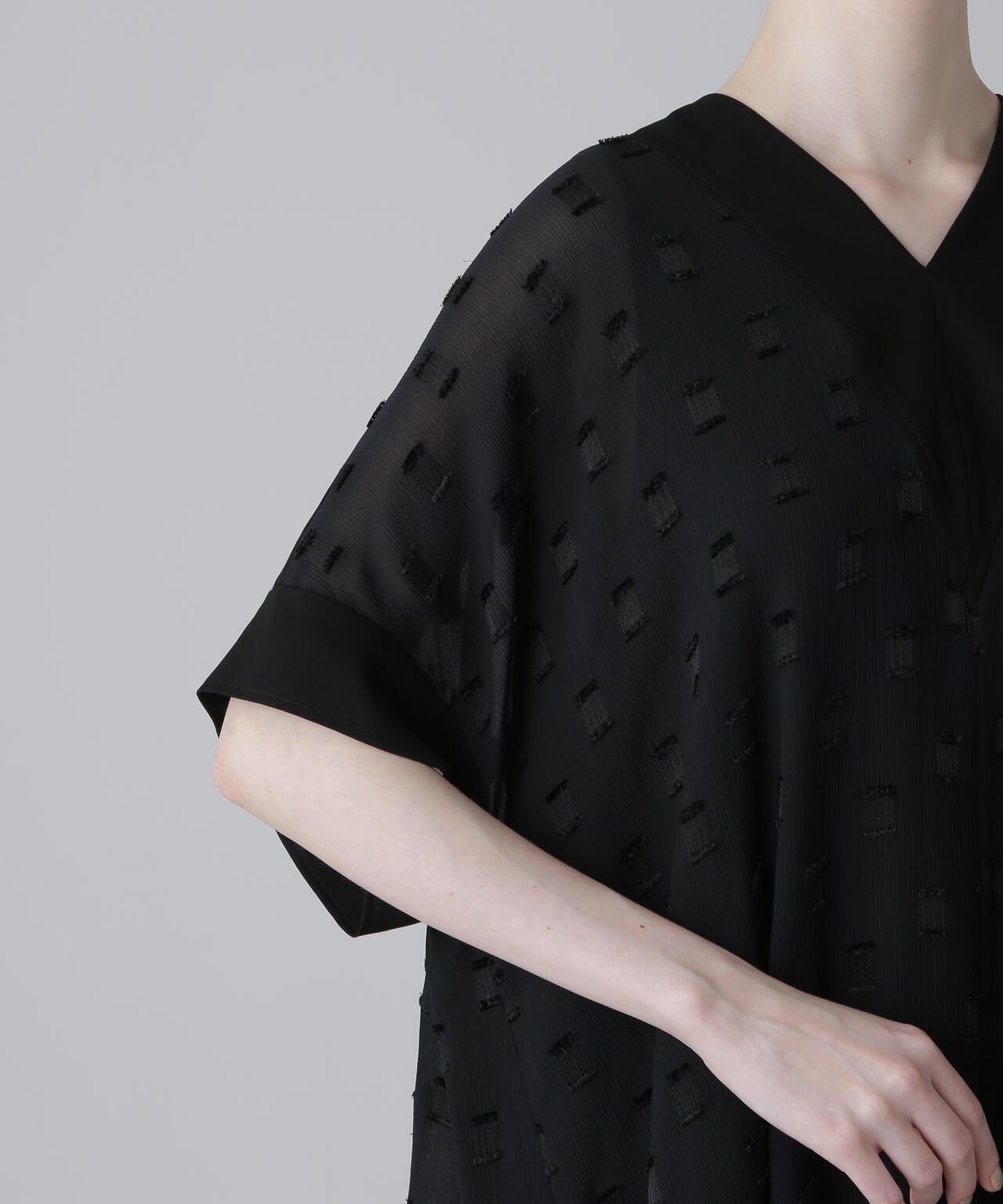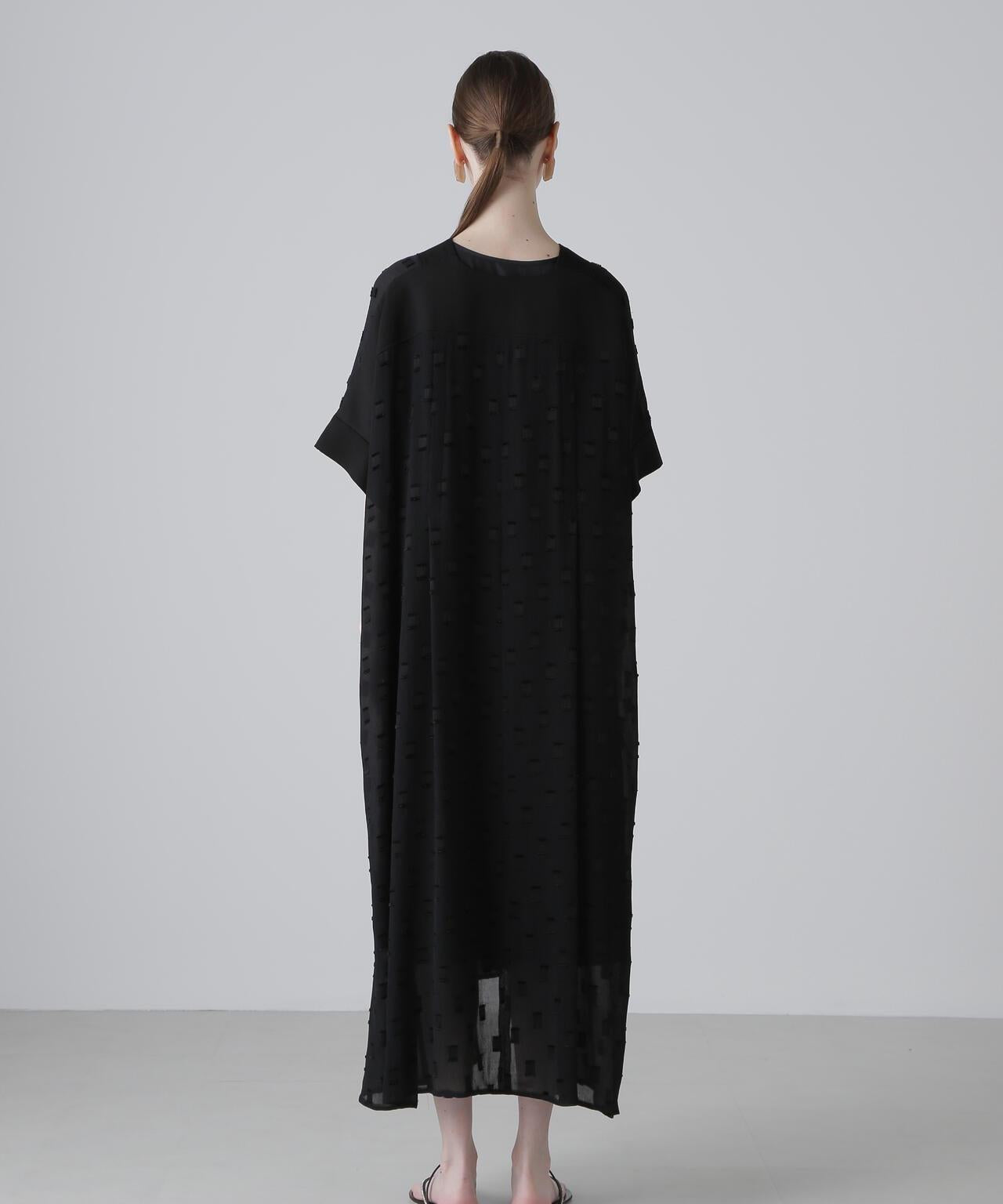 方形圖案提花面料連衣裙這款連衣裙採用優質提花面料製成,非常適合初秋季節穿著。V 領和寬鬆廓形,頸部和軛部採用單獨的不透明材料製成。後軛下大膽的褶襉設計更突出了設計感。這種提花面料未經加工,但由於紗線捻度和收縮率的不同,經線上會出現像柳條一樣的褶皺,用閃亮的聚酯紗線表現出重點剪裁的圖案。請注意,這種面料較薄,比較脆弱,請注意防滑和防撕裂。
