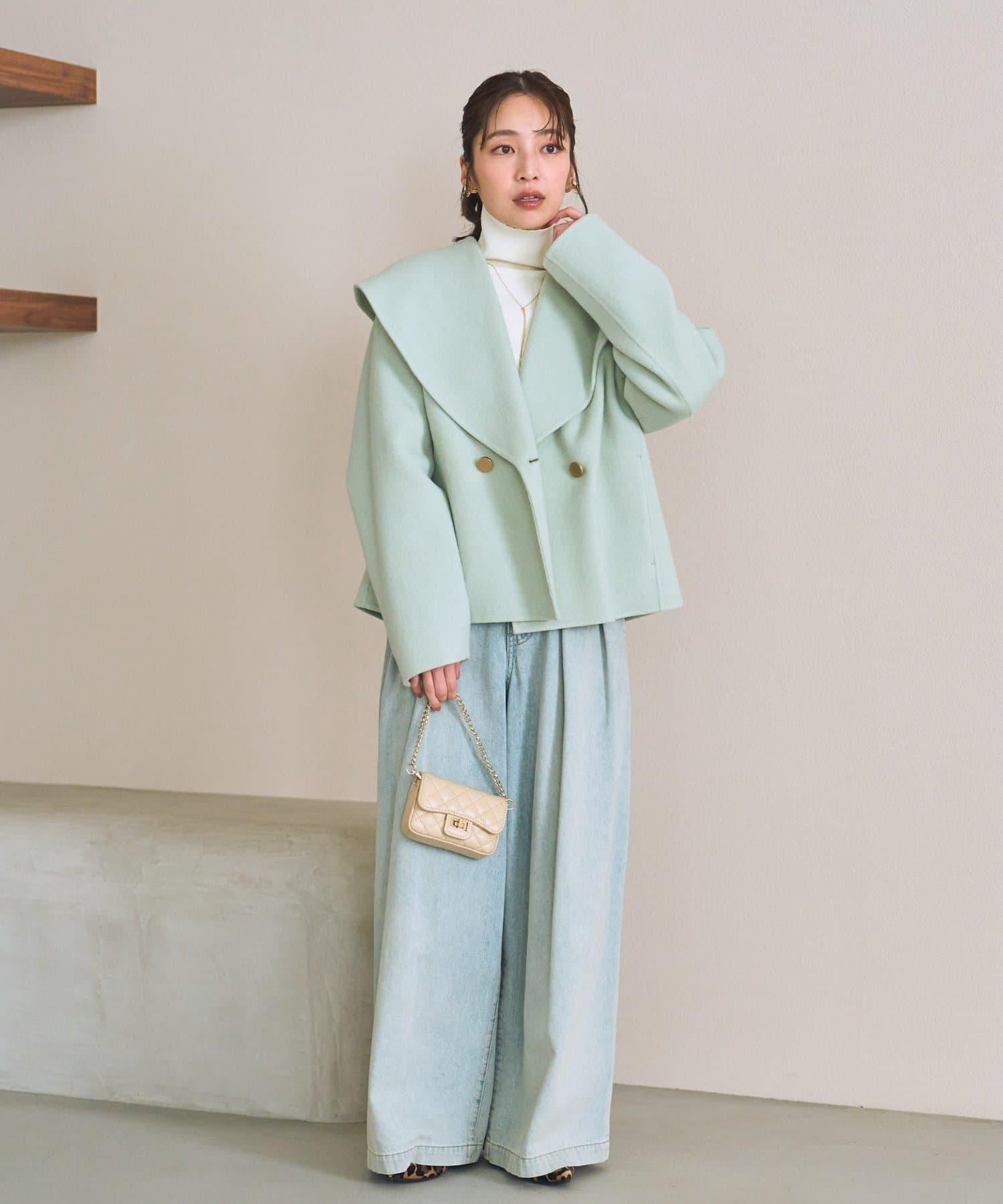 短款大衣,領子較大,使臉部看起來更加華麗。