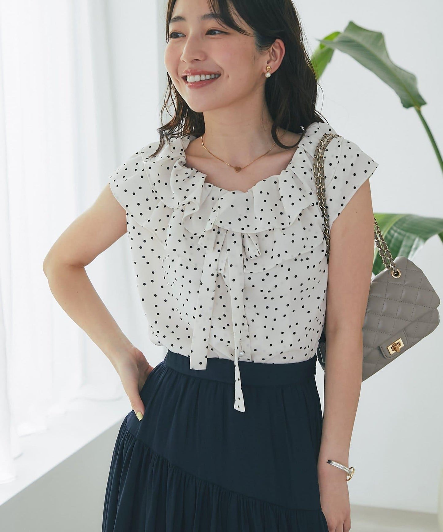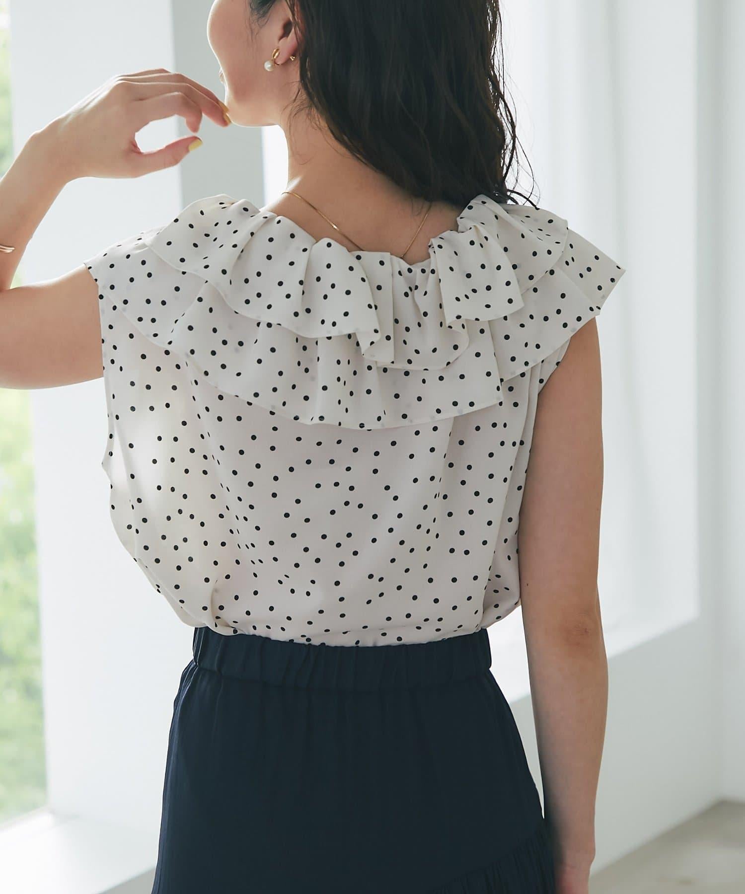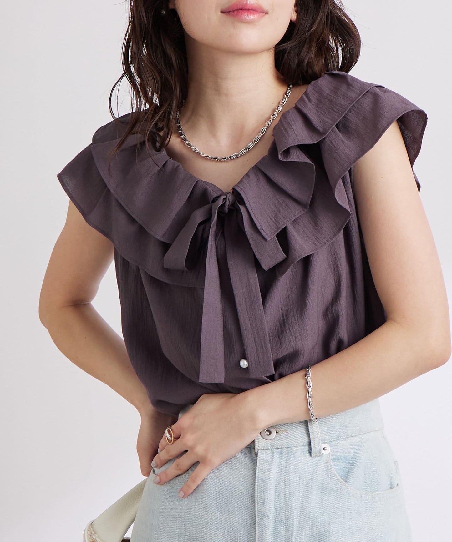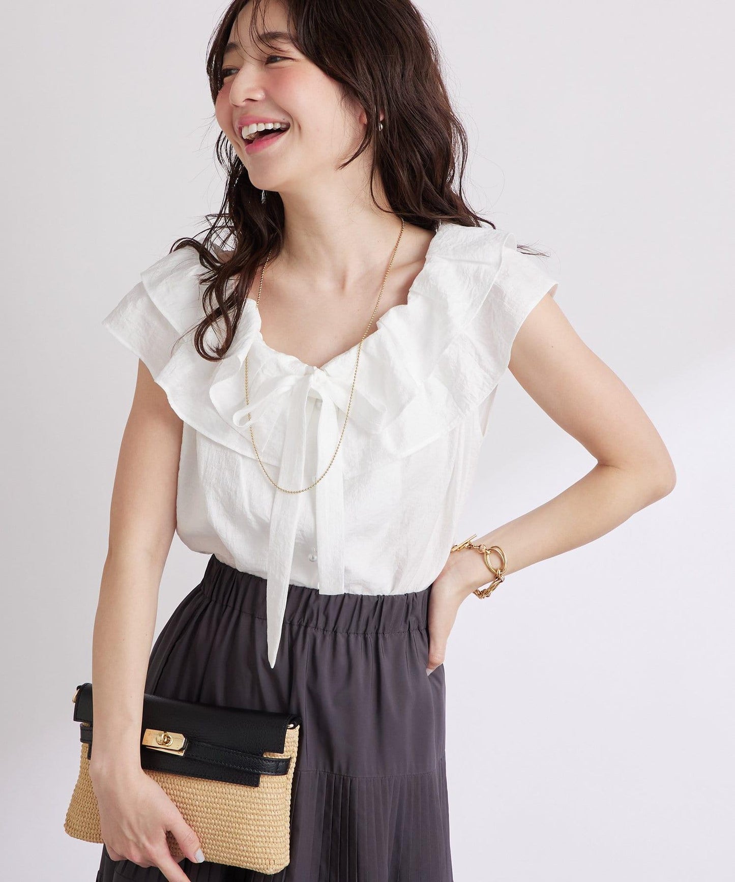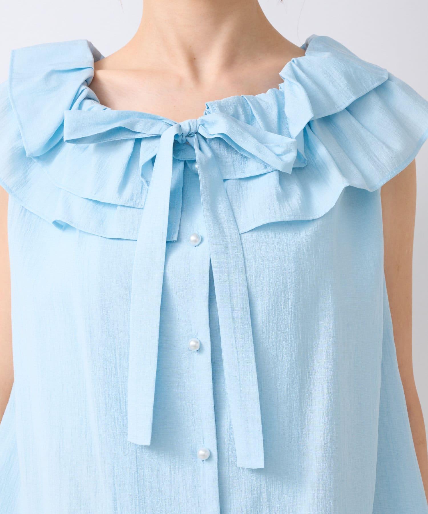 【最強被愛】聚攏荷葉邊蝴蝶結無袖襯衫