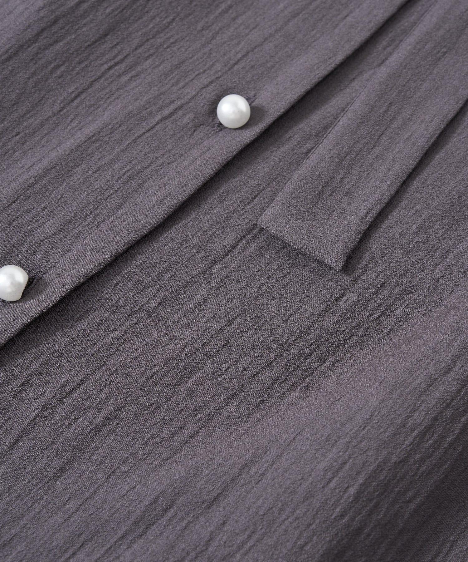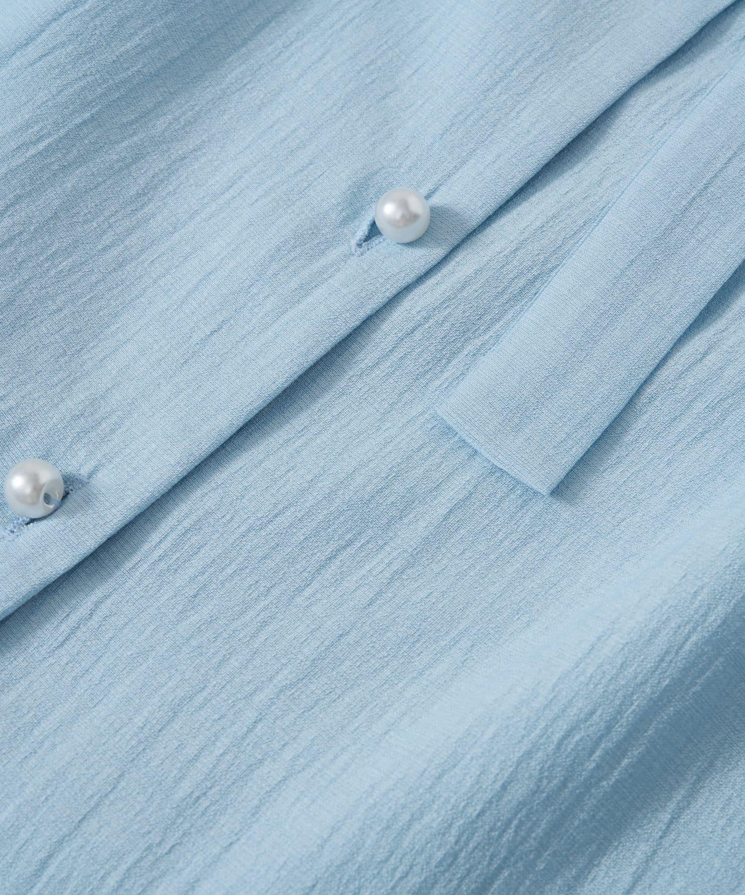 前襟飾有優雅的珍珠紐扣,起到了巧妙的點綴作用。