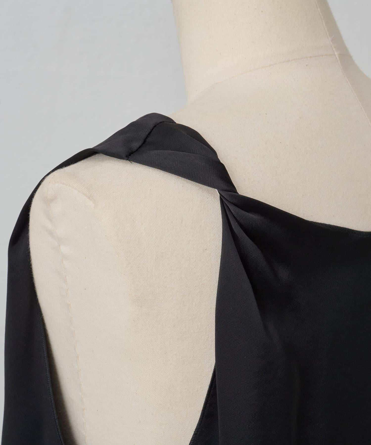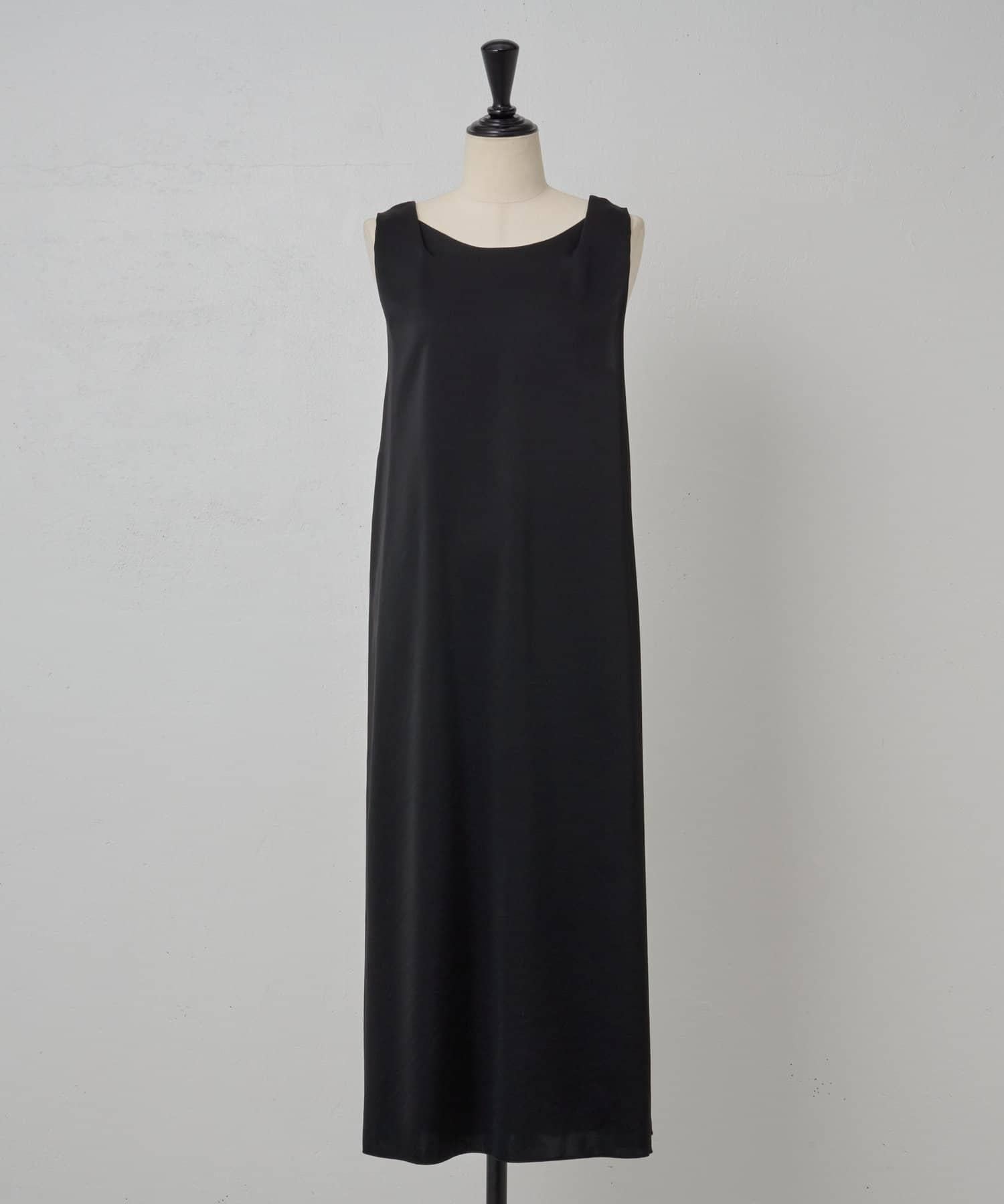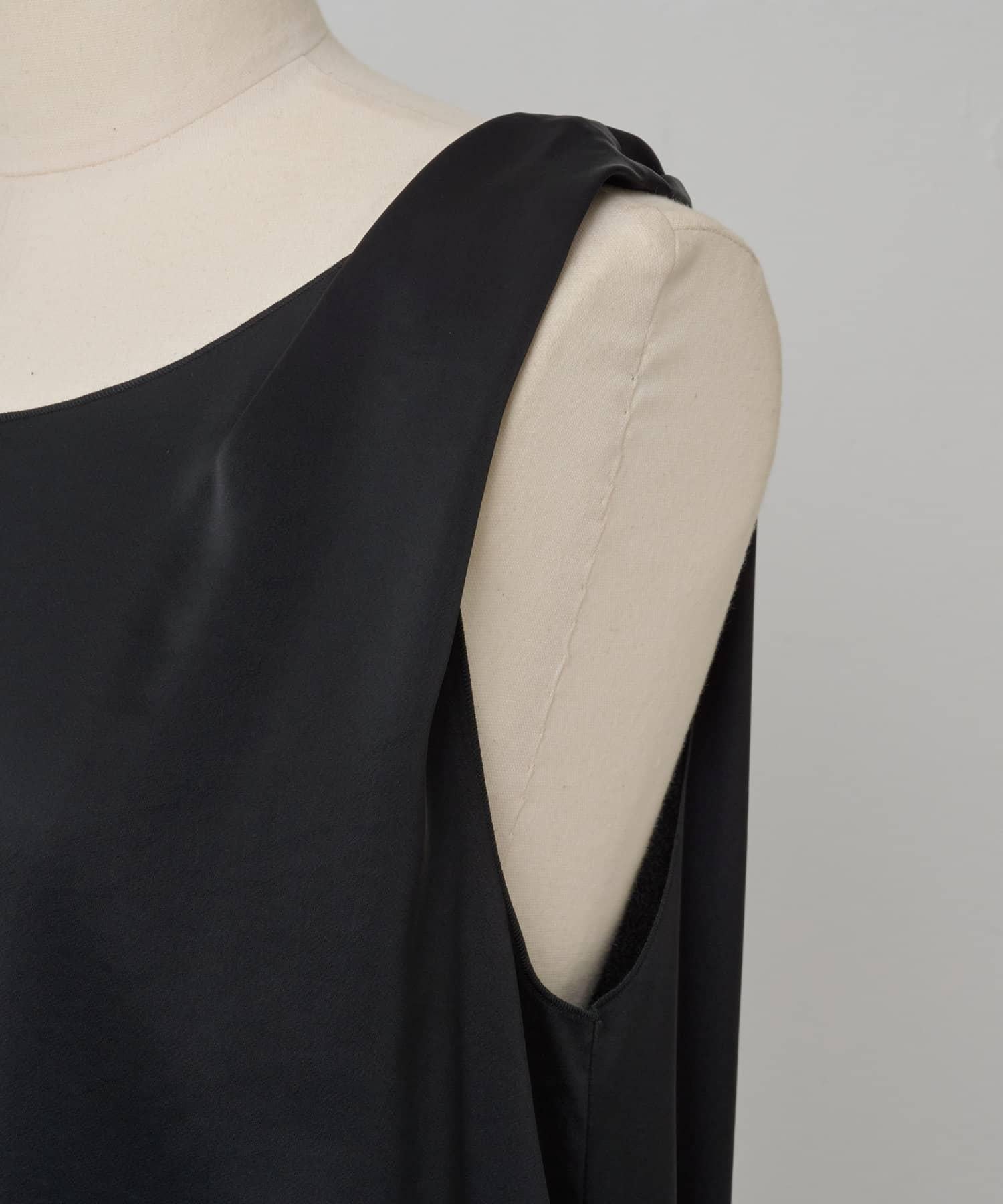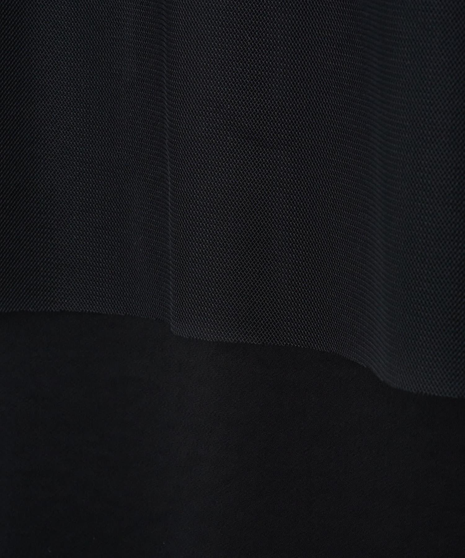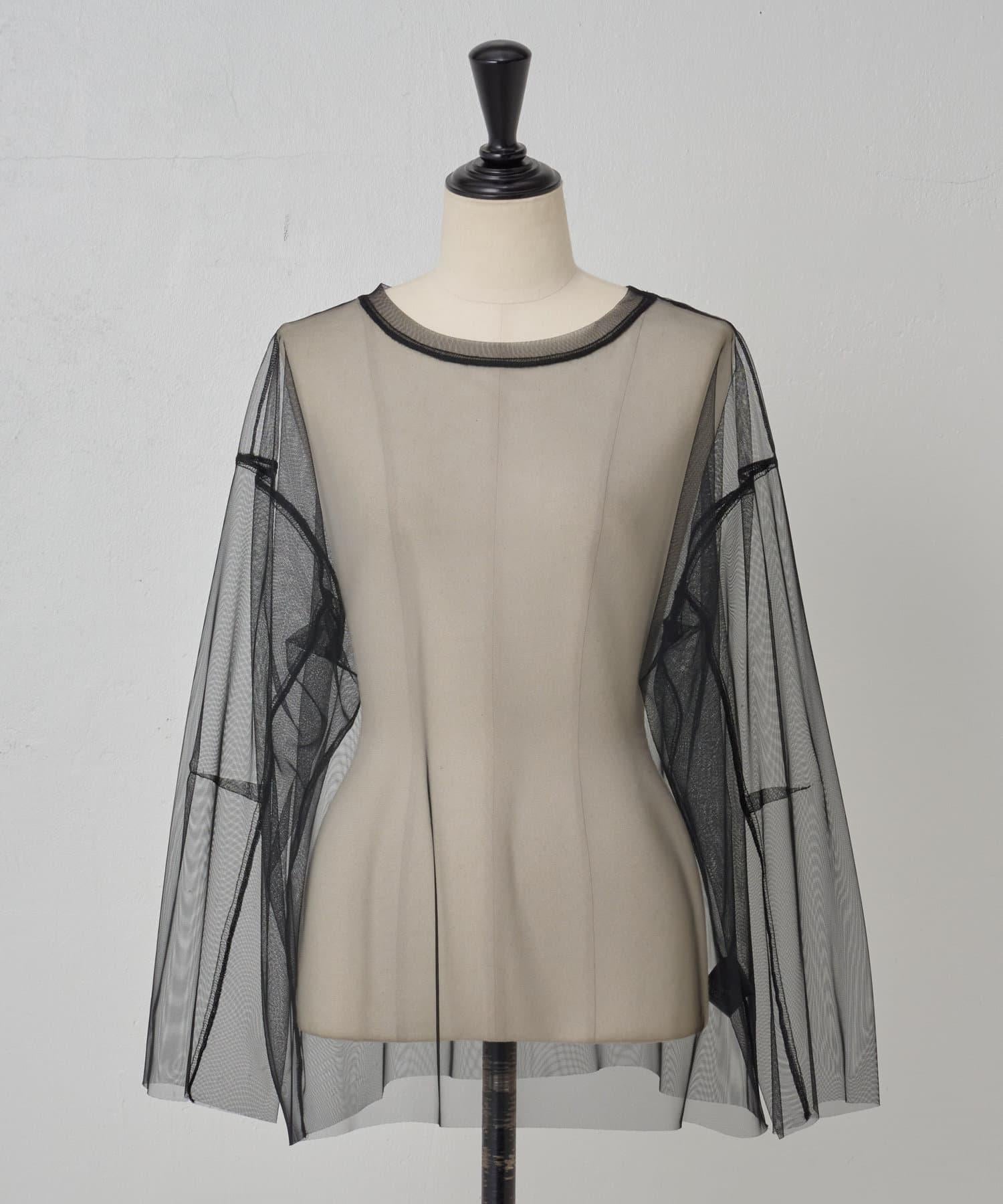 透明薄紗罩衫和無袖連身裙套裝,具有墜落感。