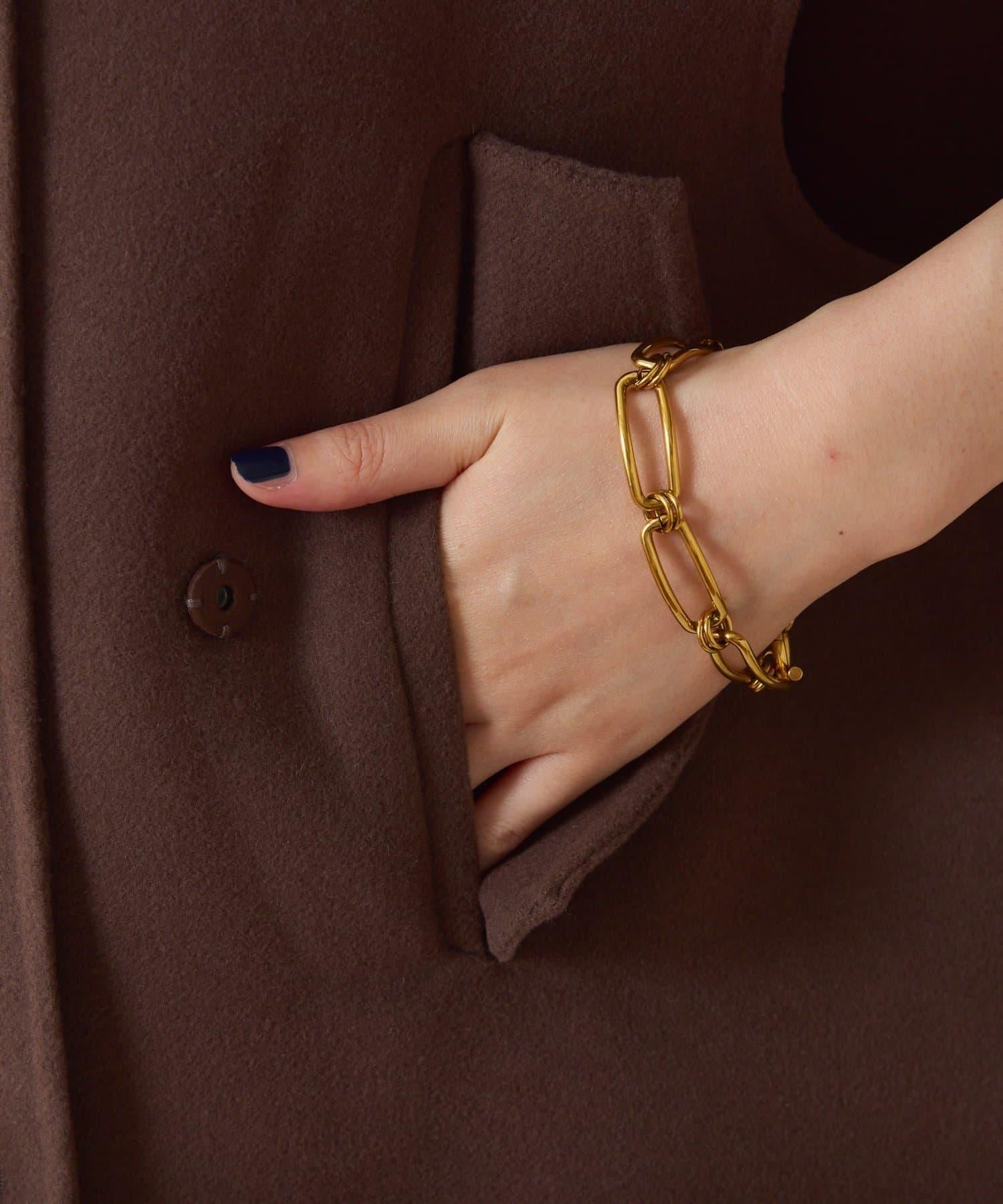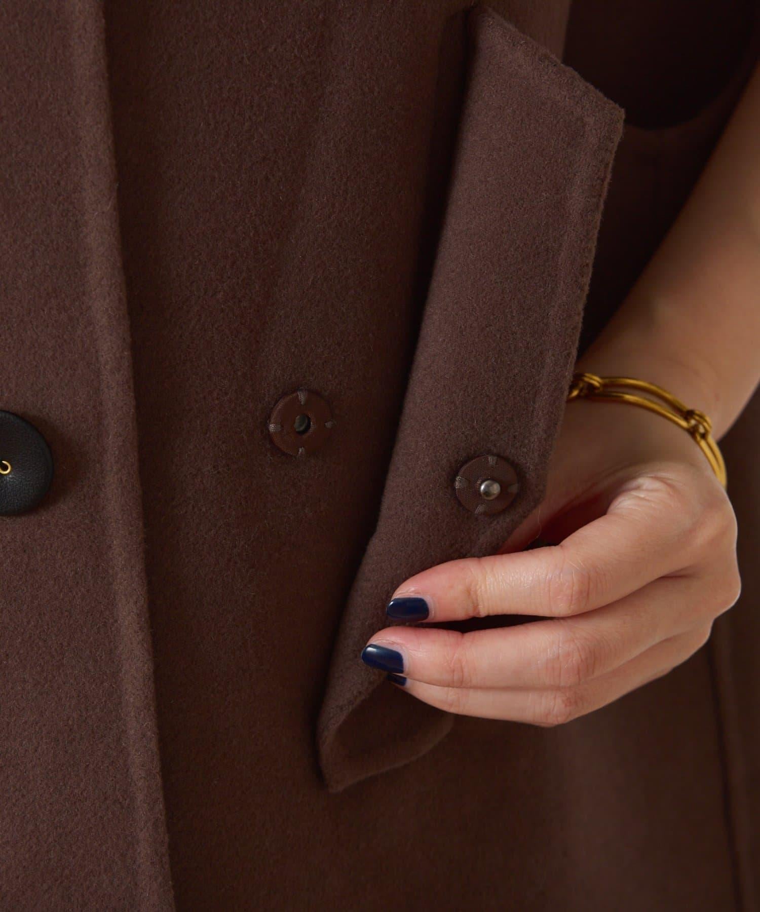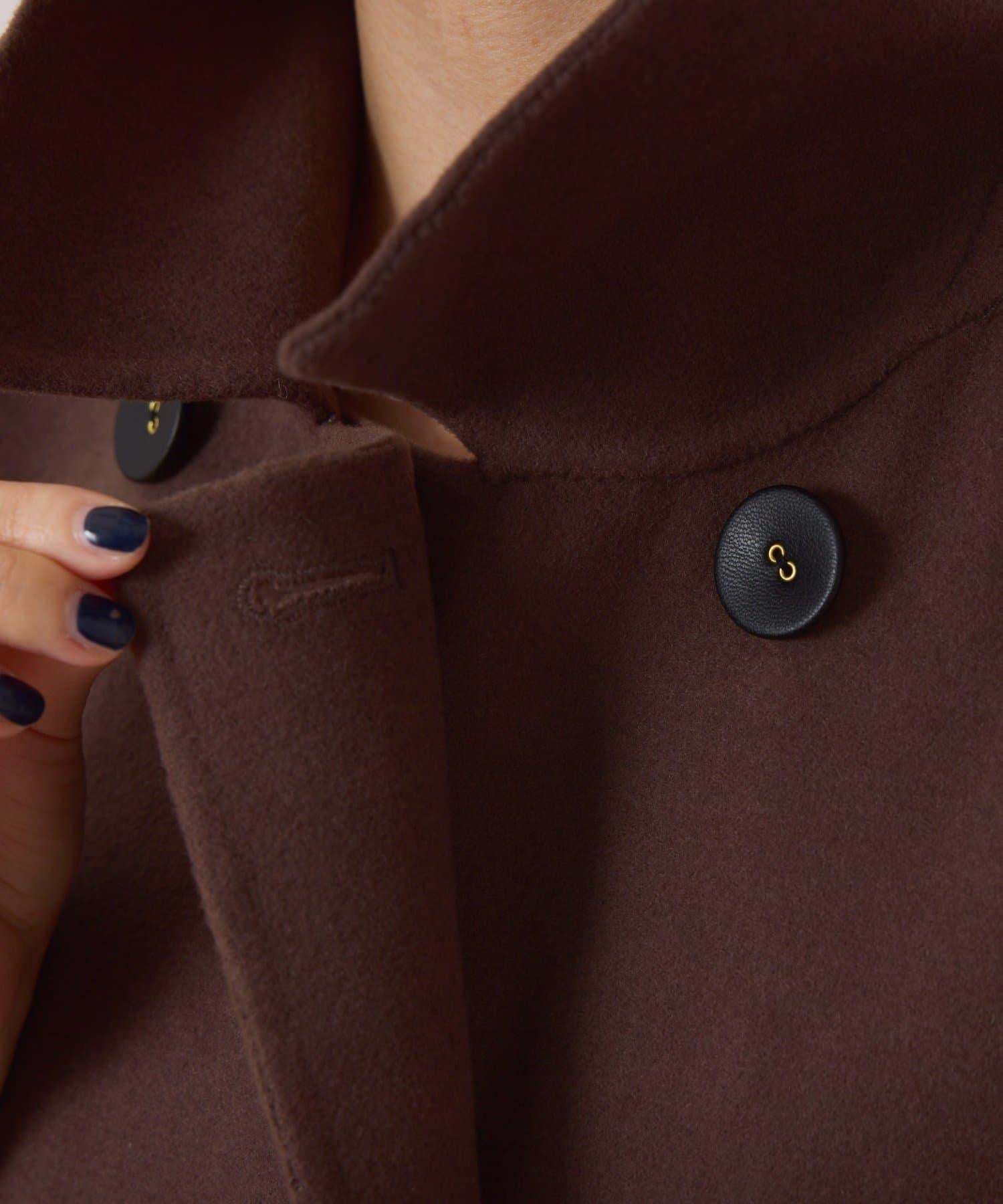 環保皮革胡桃木紐扣清新脫俗,金色鴿尾裝飾更添女性柔美氣息。