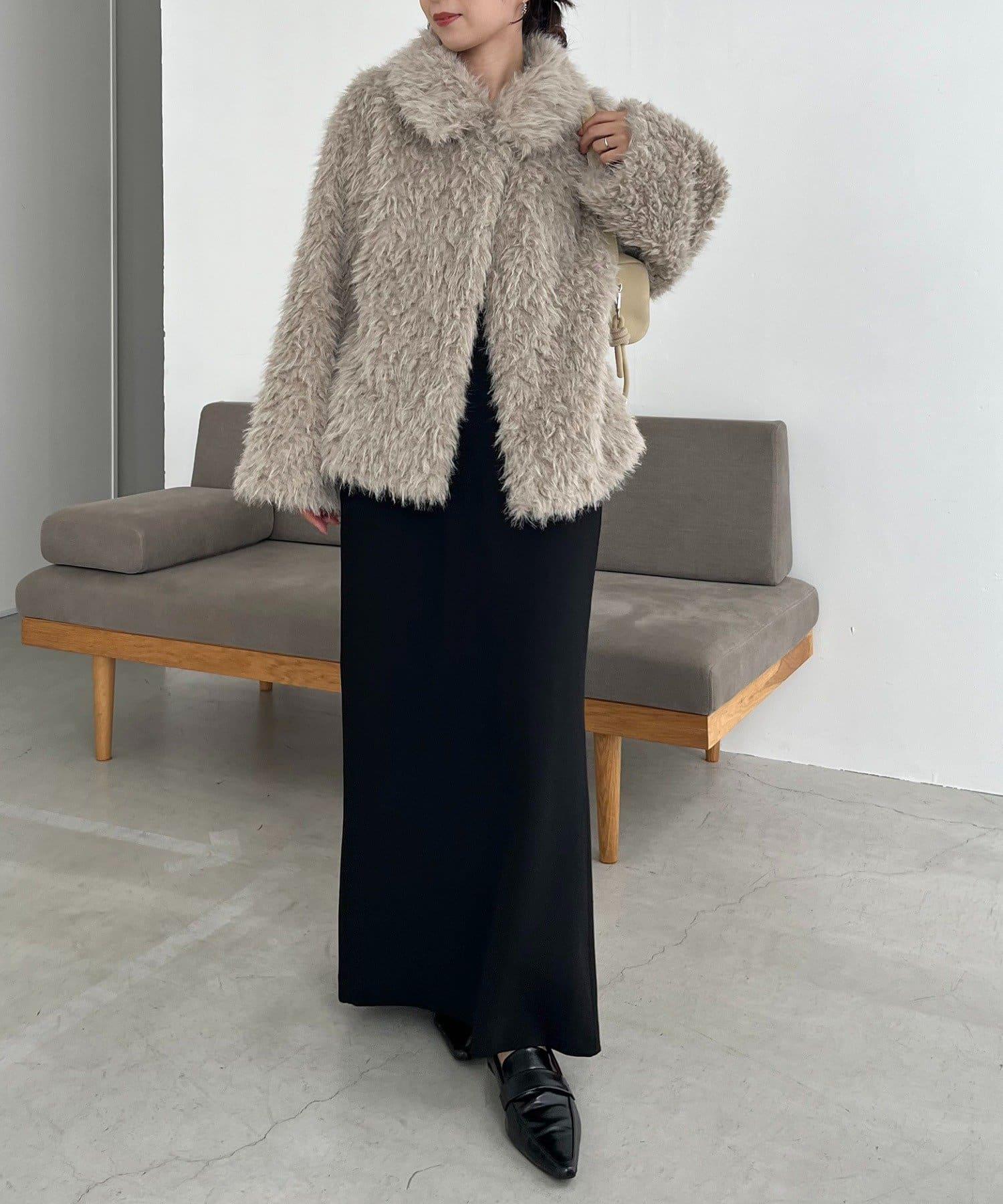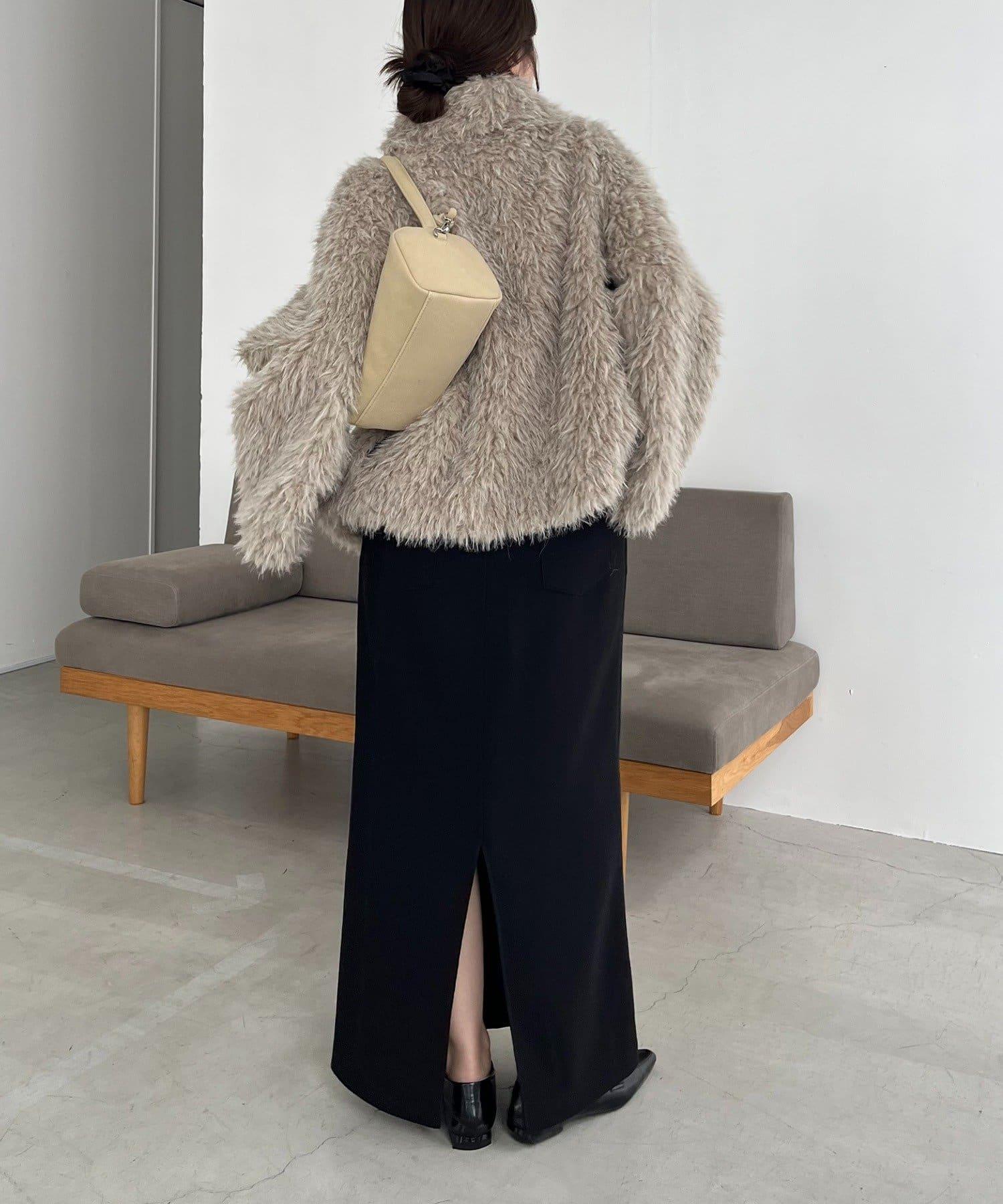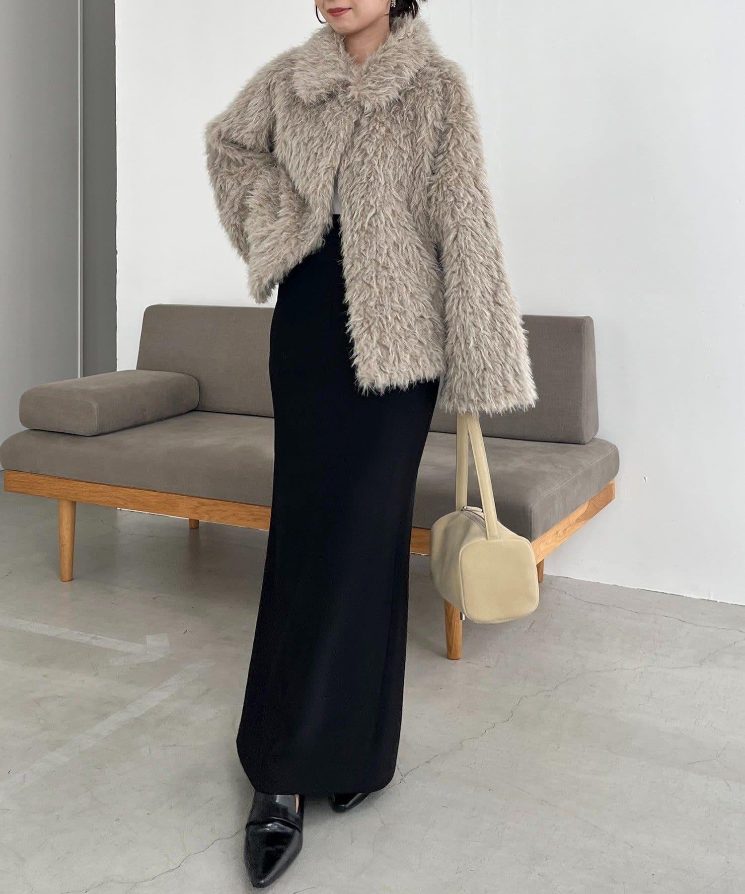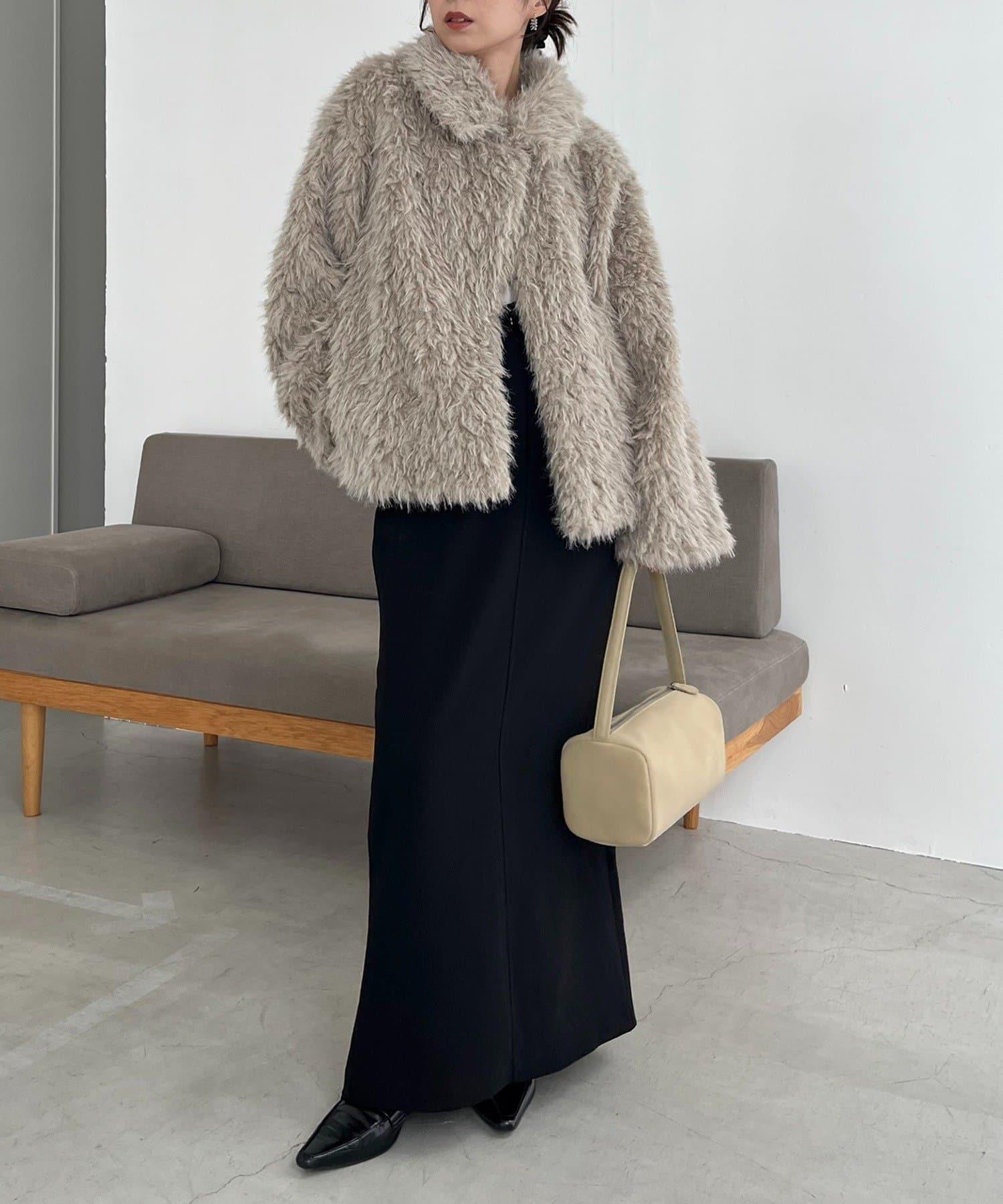 兩種毛皮混搭的皮草大衣,極富表現力。
