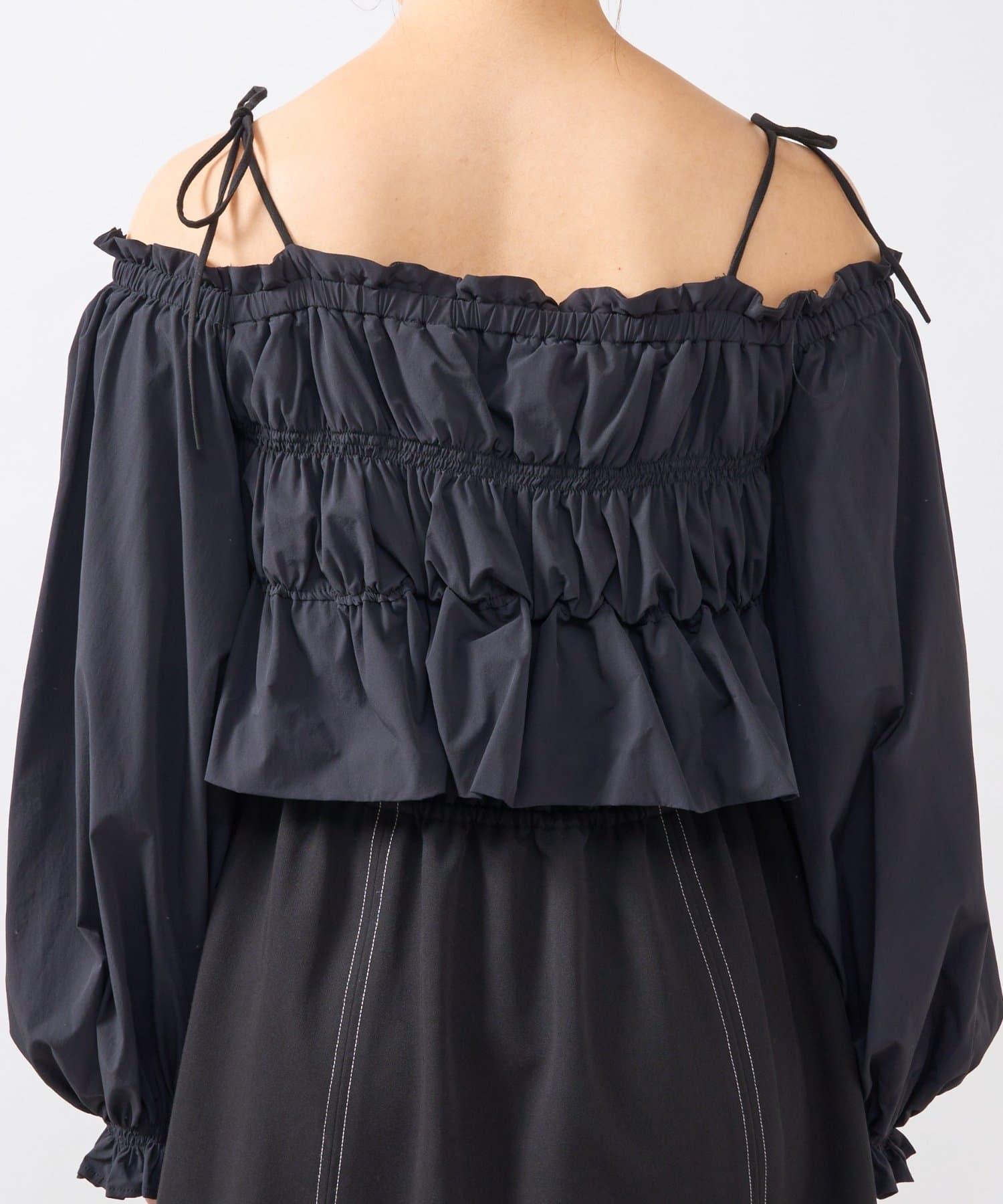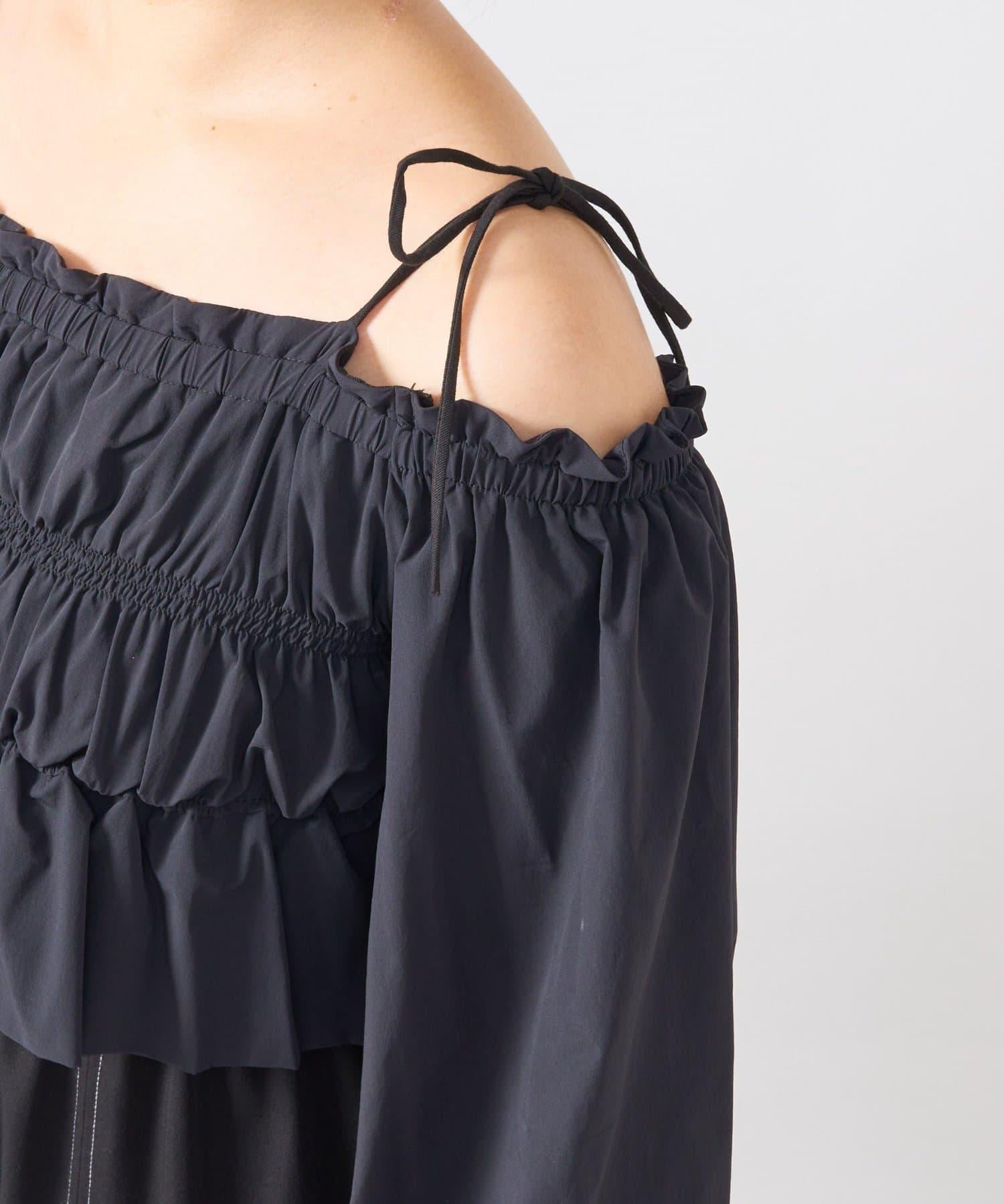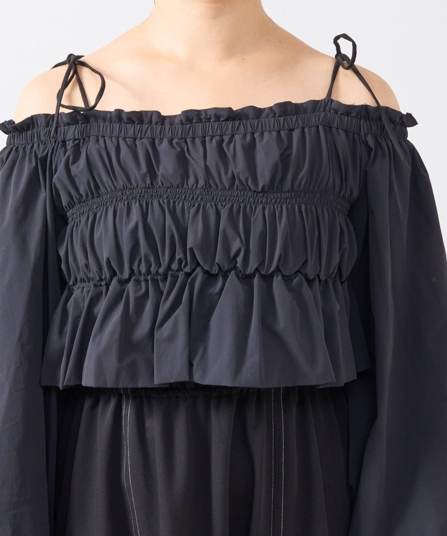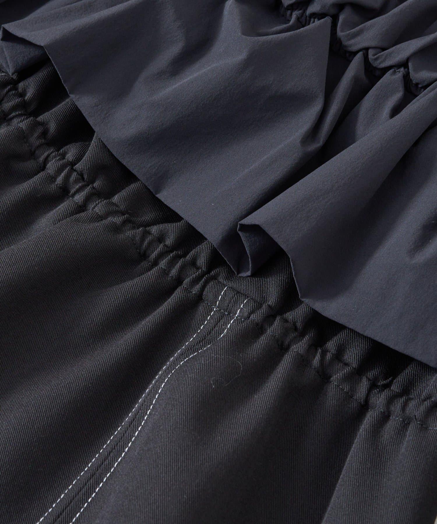 【有小個子尺碼・成熟女性優雅感◎】方領拼接材質褶皺連衣裙
