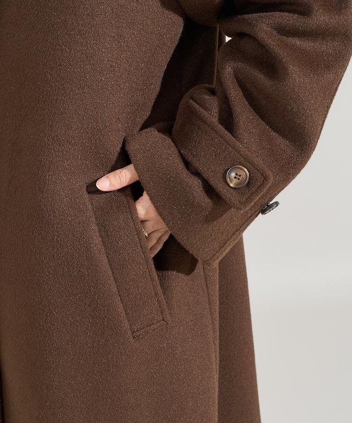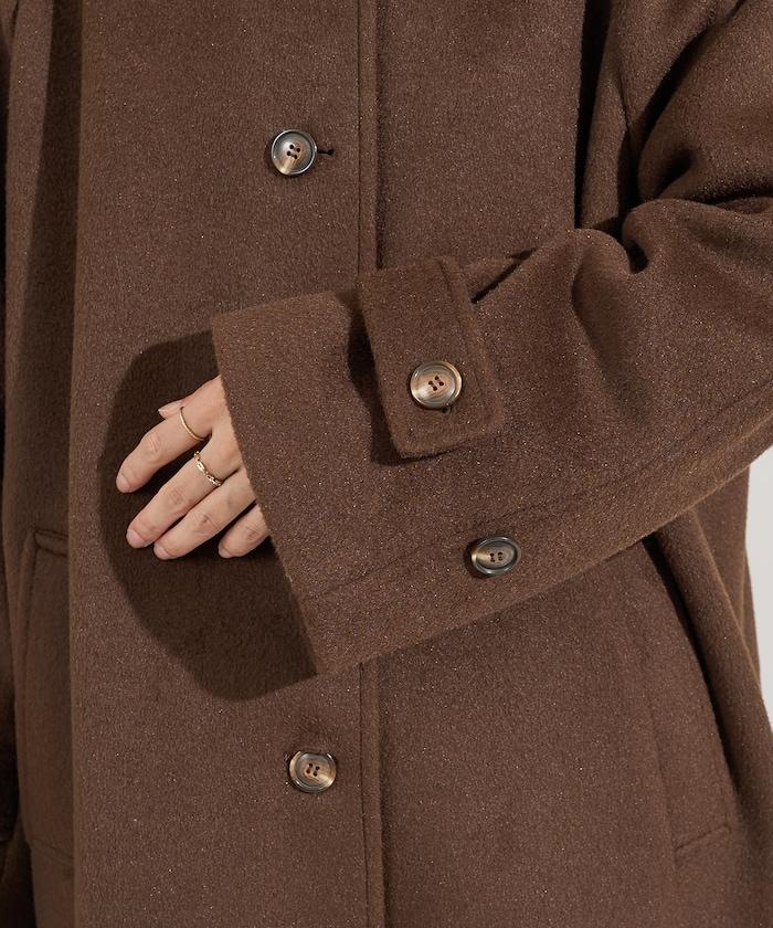 不鏽鋼領長款大衣,設計簡潔,上班下班均可穿著。