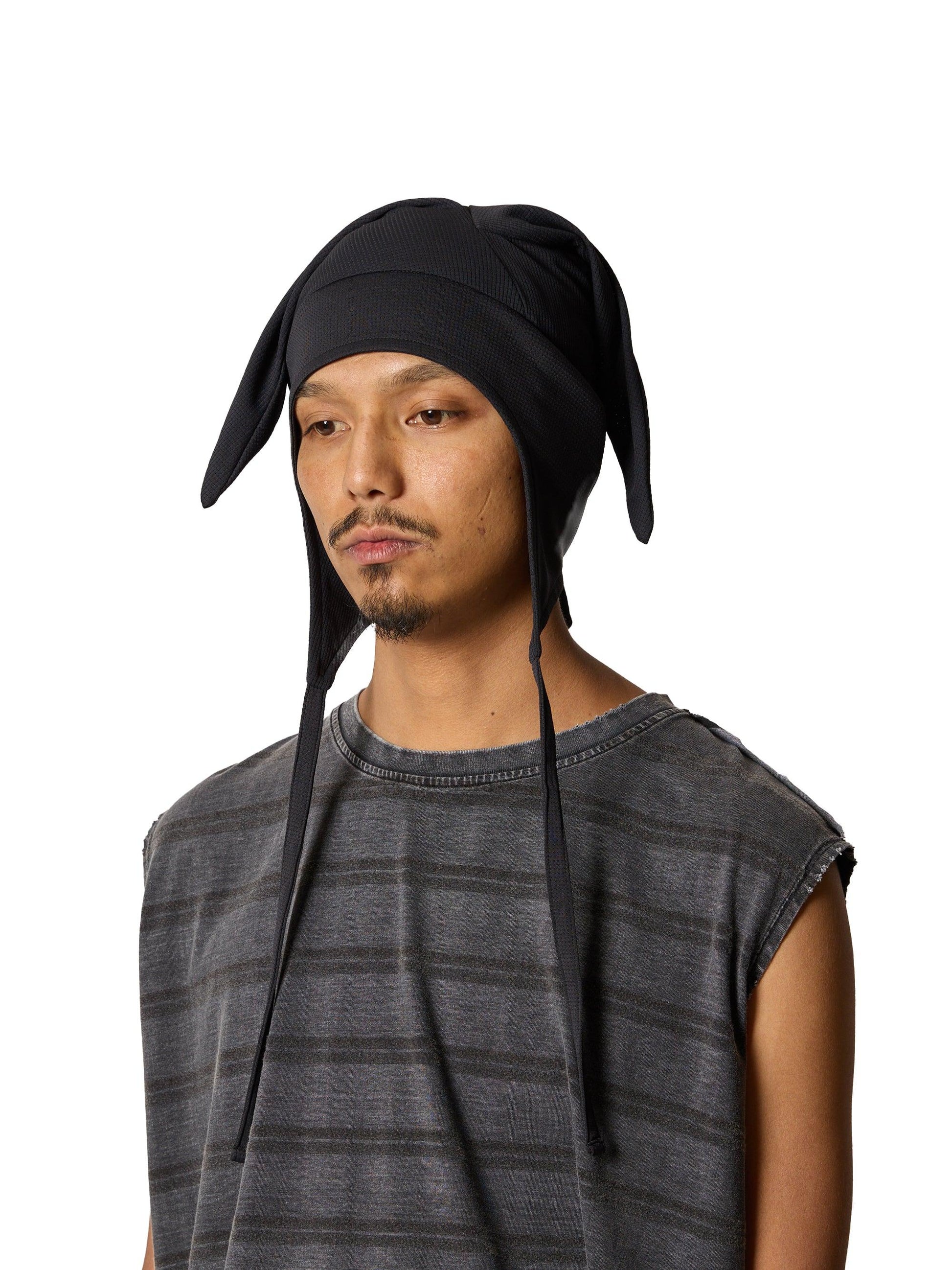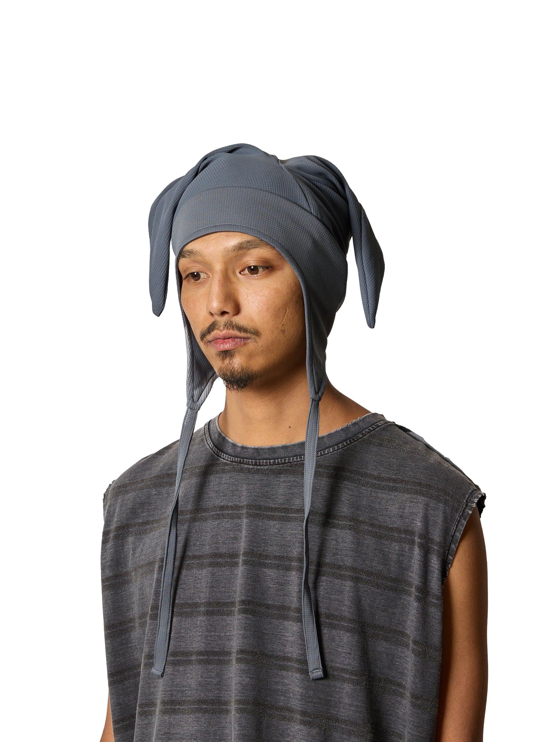由 COOL MAX® ECOMADE 製成,採用化學回收技術生產。它具有良好的吸水性、速乾性、接觸冷卻性和紫外線防護性。圖案以打牌的小丑戴的帽子為原型。