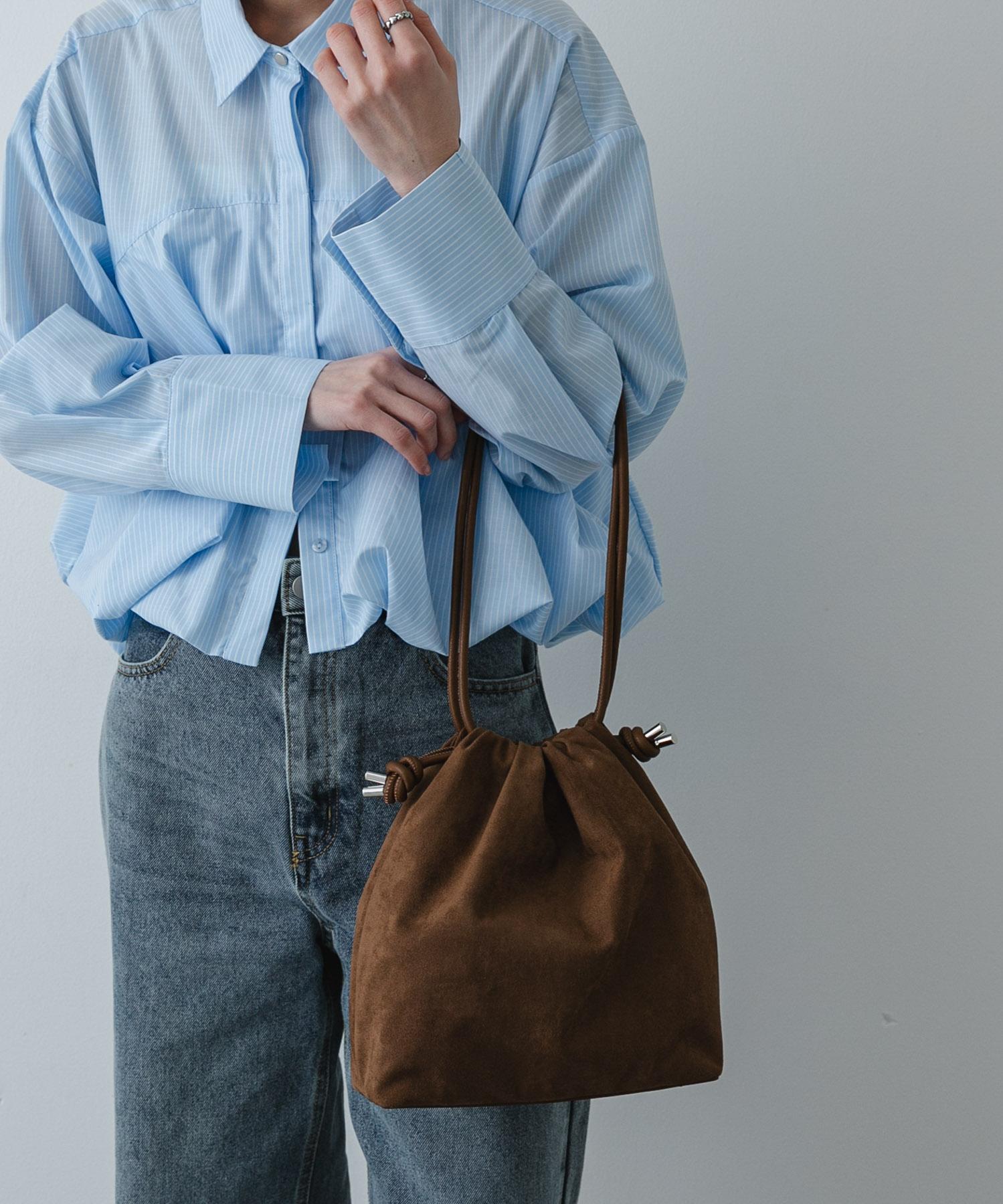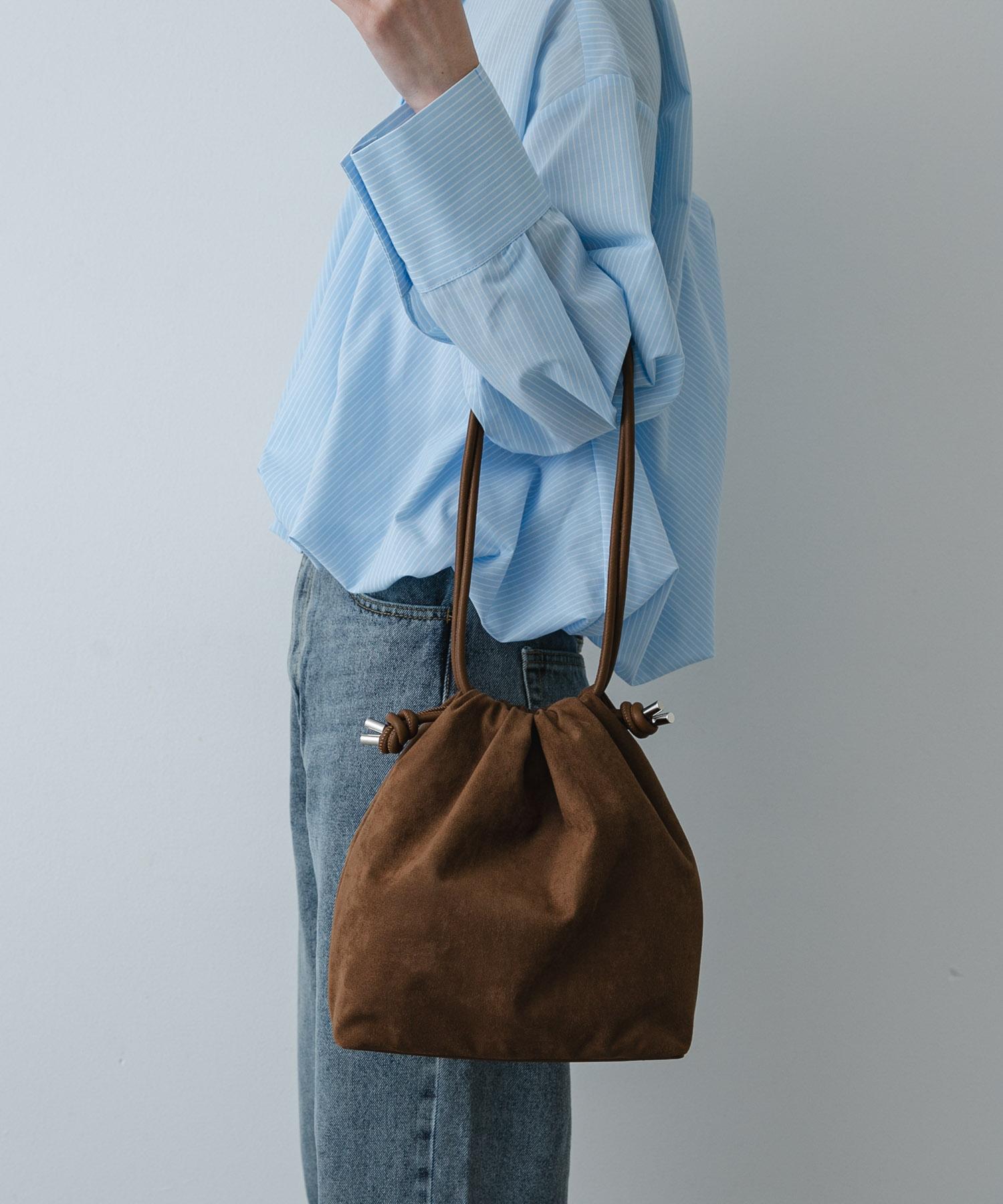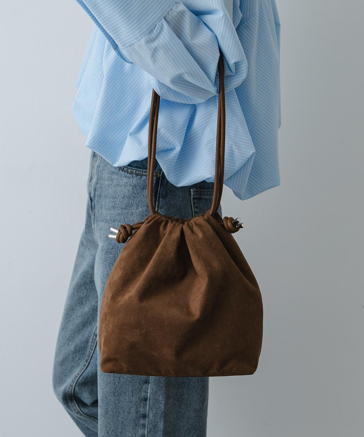 這款抽繩包外觀可愛,充分利用了材料的獨特品質。溫暖溼潤的仿麂皮和優雅柔軟的仿皮革,讓您可以根據季節和自己的品味進行選擇。這款手袋的主要特點是多長度手柄,可以自由更換。根據當天的服裝和使用目的,這款手提包可以優雅地手提,也可以巧妙地搭在肩上或主動挎在肩上。可愛的冒號造型為簡單的搭配增添了恰到好處的甜美和俏皮。