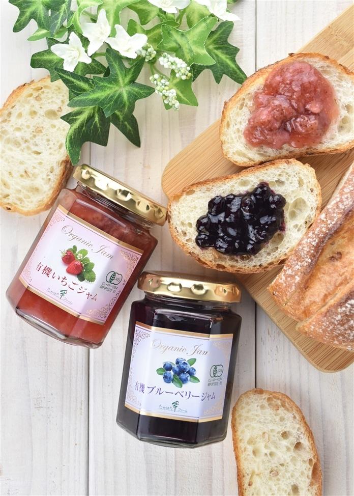 有機果醬(有機草莓)] 有機草莓(墨西哥)、有機糖、有機檸檬濃縮汁/膠凝劑(果膠) [有機果醬(有機藍莓)] 有機藍莓(加拿大)、有機糖、有機檸檬濃縮汁/膠凝劑(果膠)