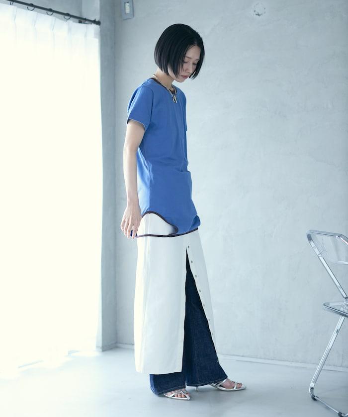 單穿時,長度可以改變為遮住臀部的長度,而摺疊穿時,長度則變短,因此您可以根據下身的搭配,享受不同的穿法。