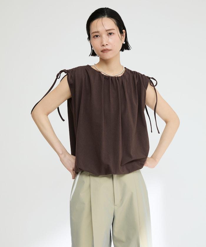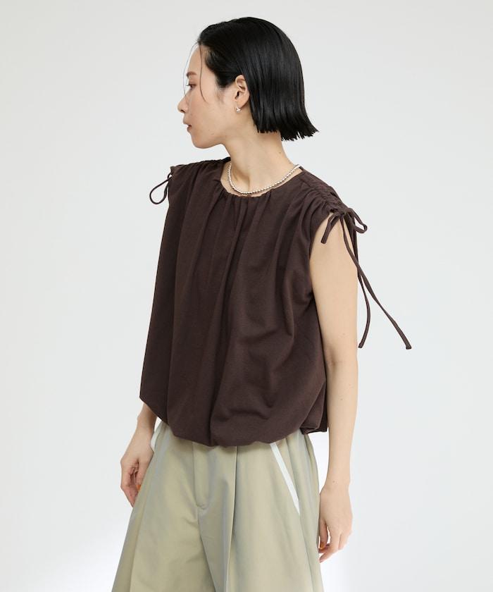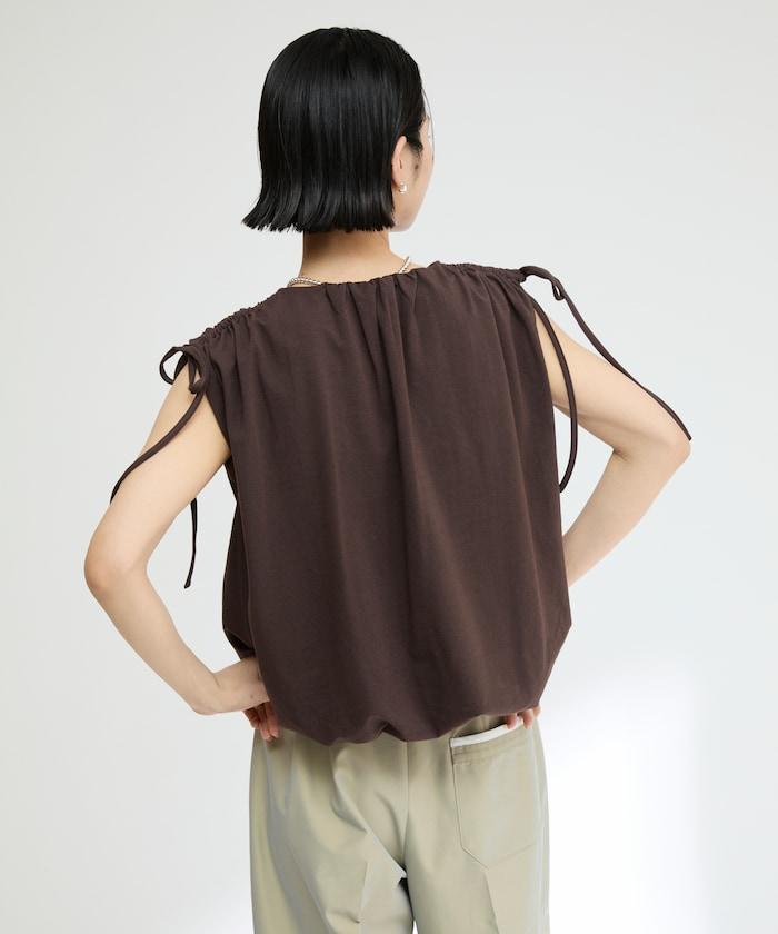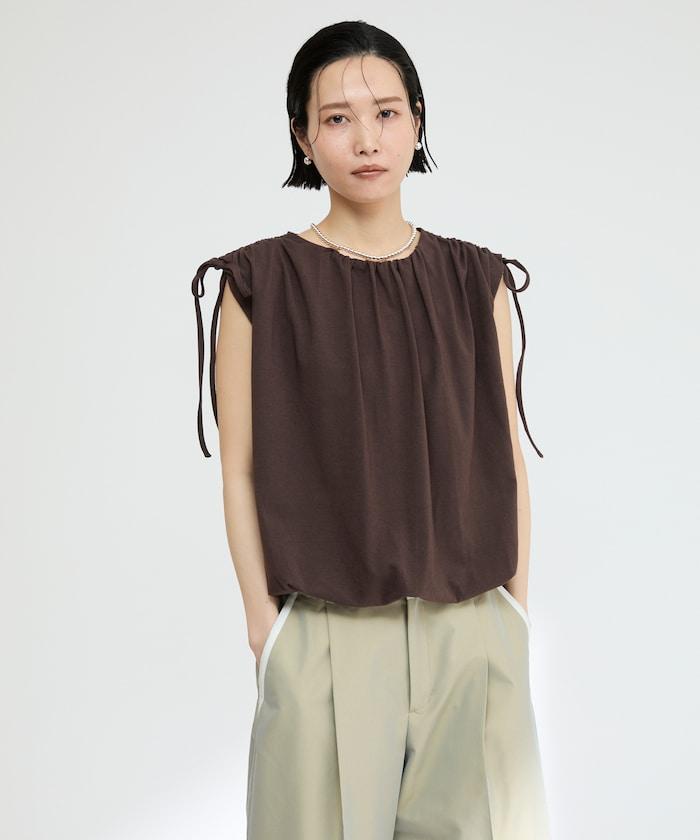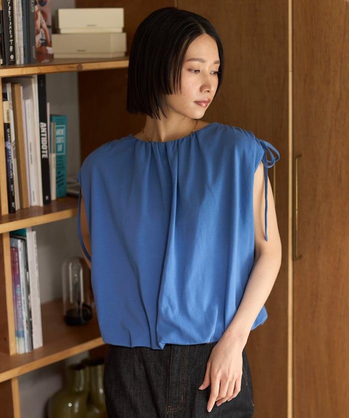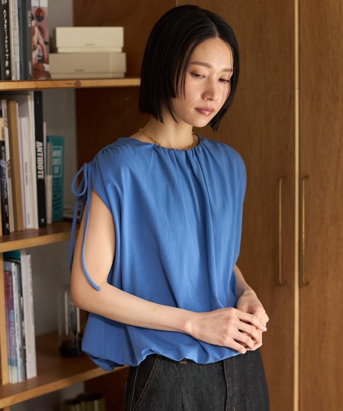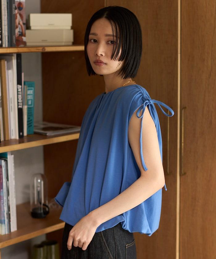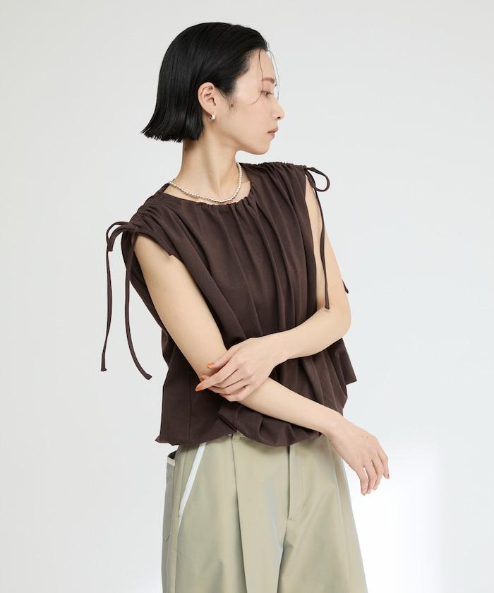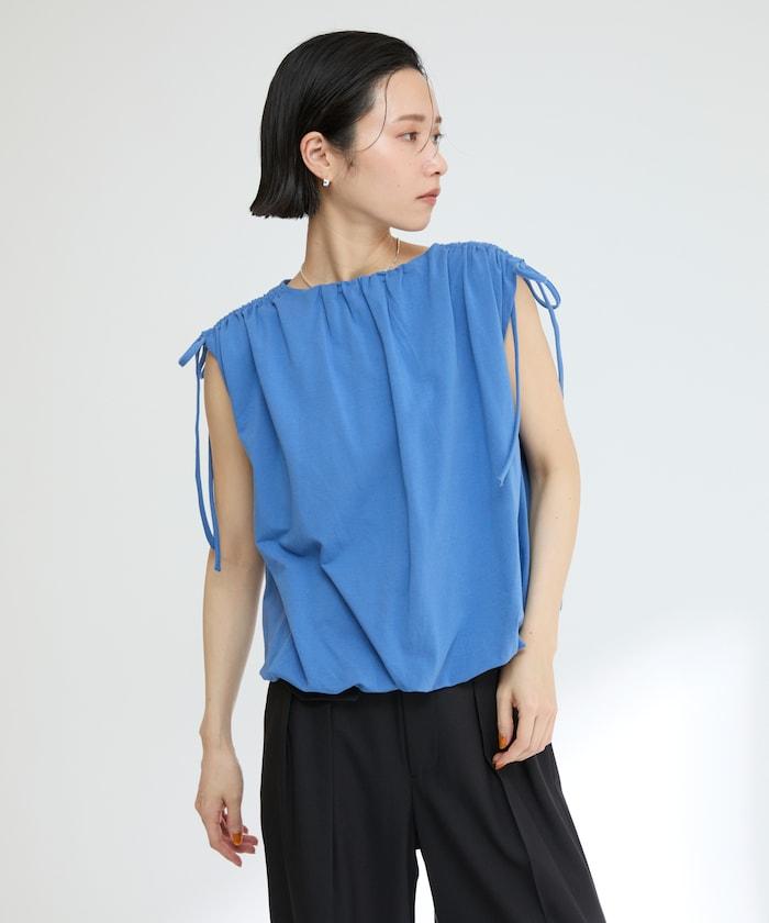 有機棉束褶垂墜上衣 / 法式短袖T恤 / 袖帶