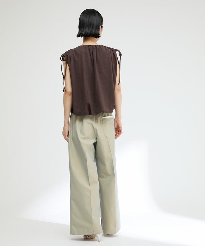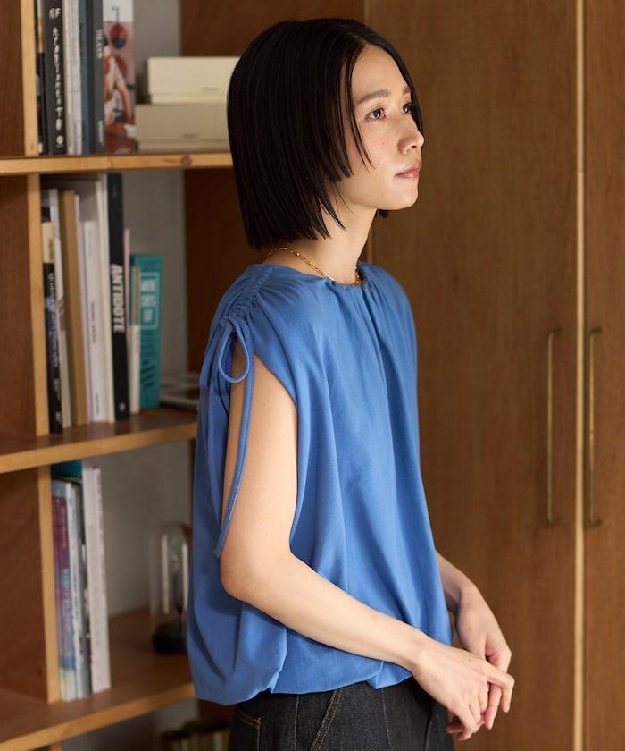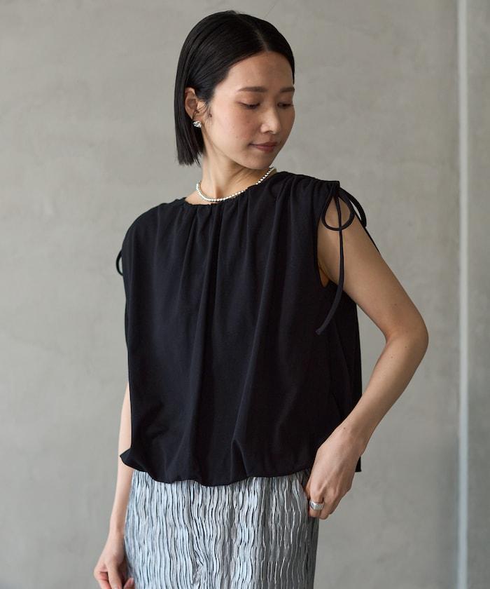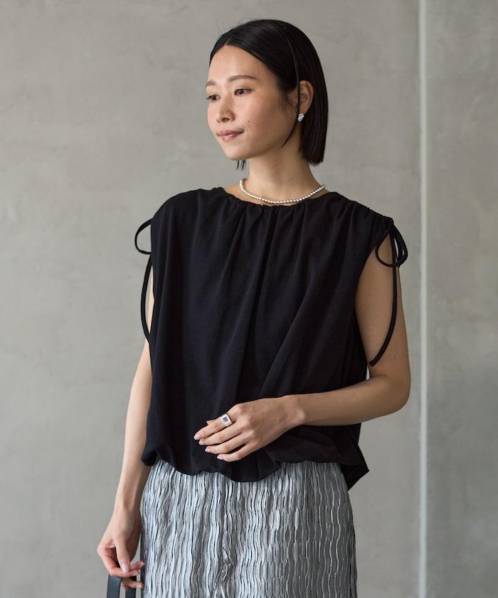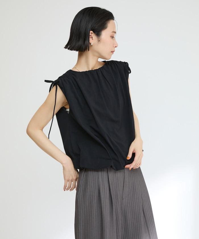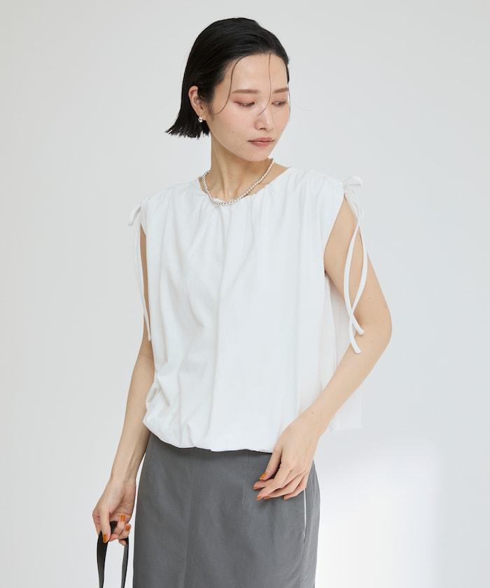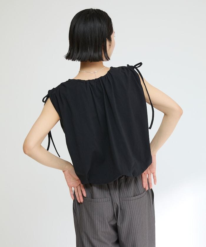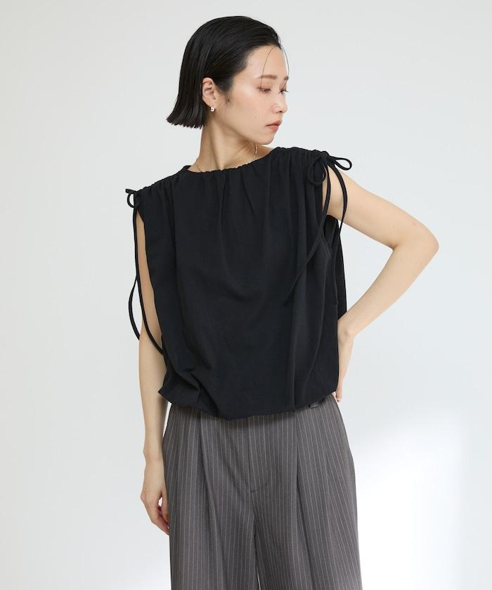 有機棉束褶垂墜上衣 / 法式短袖T恤 / 袖帶