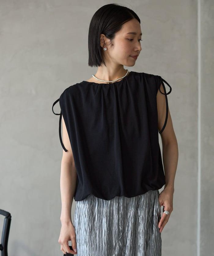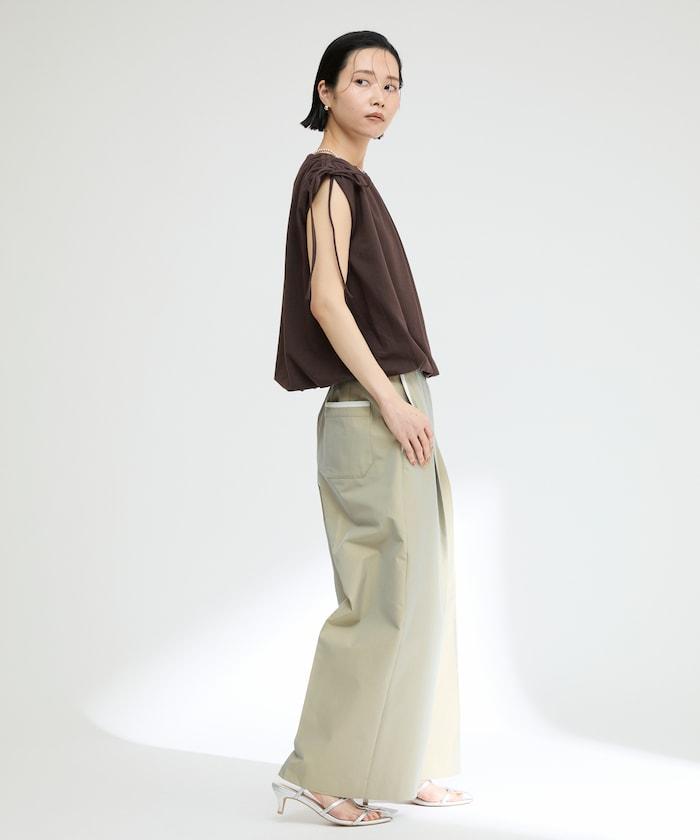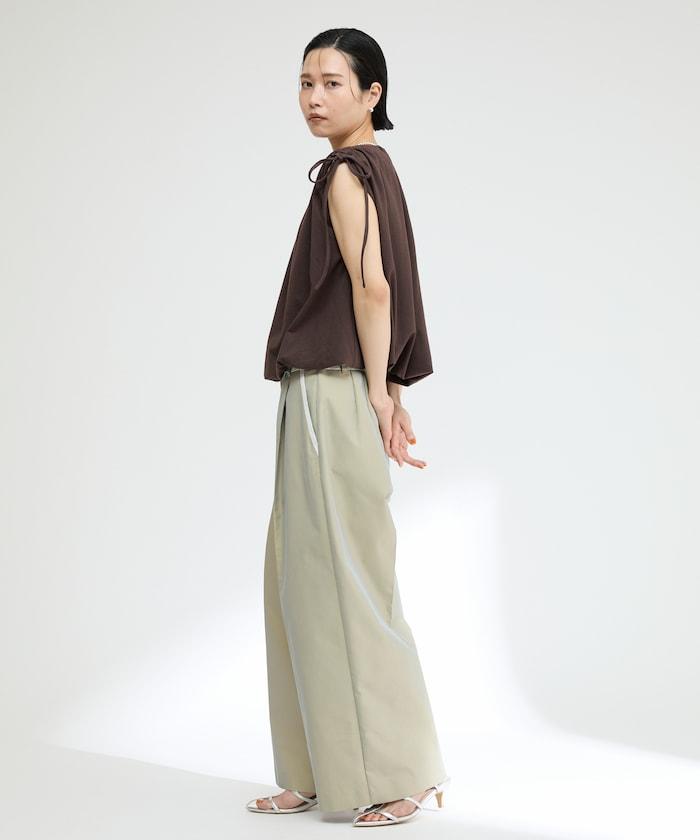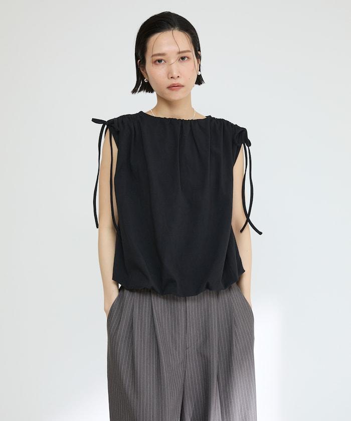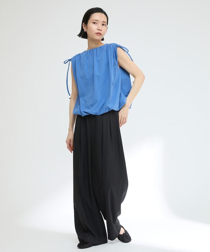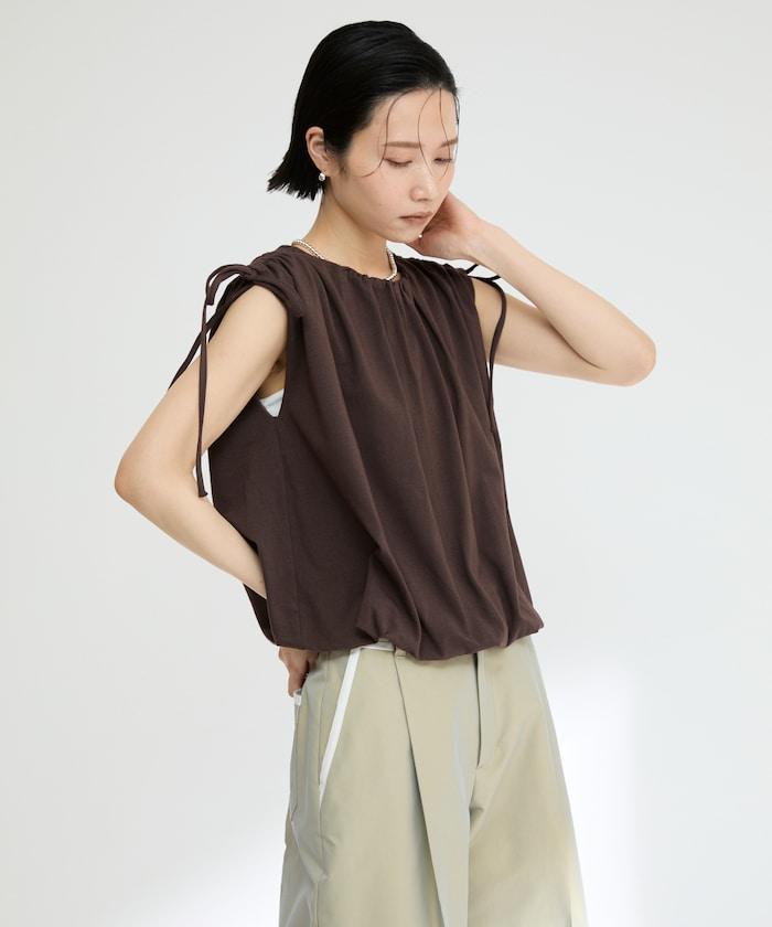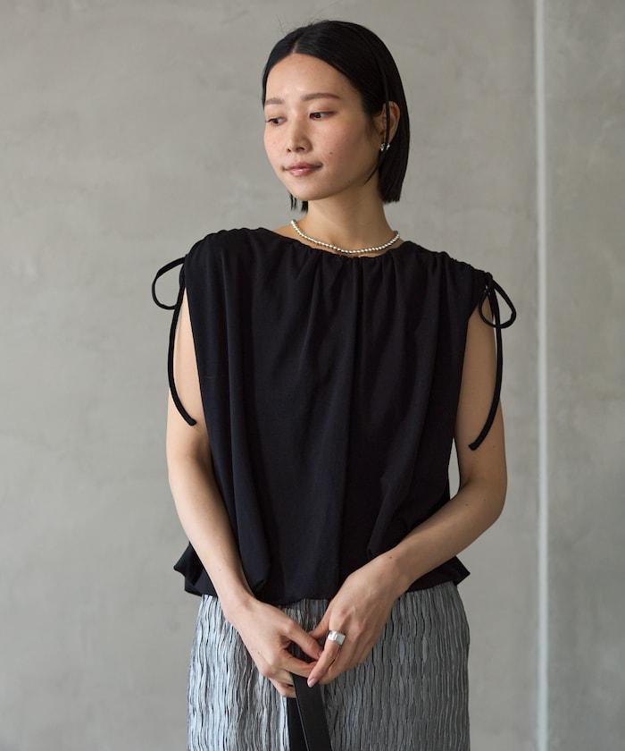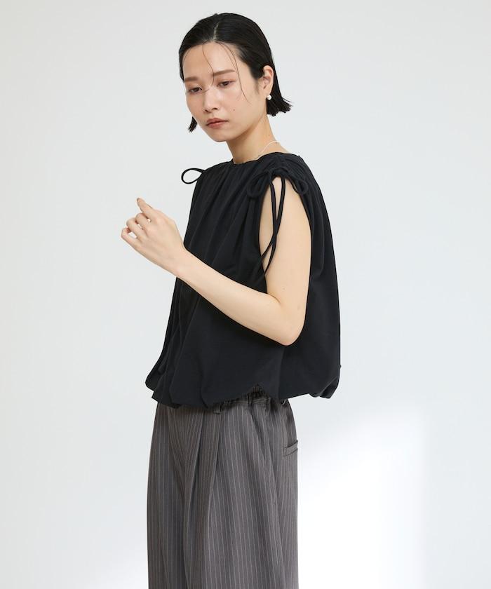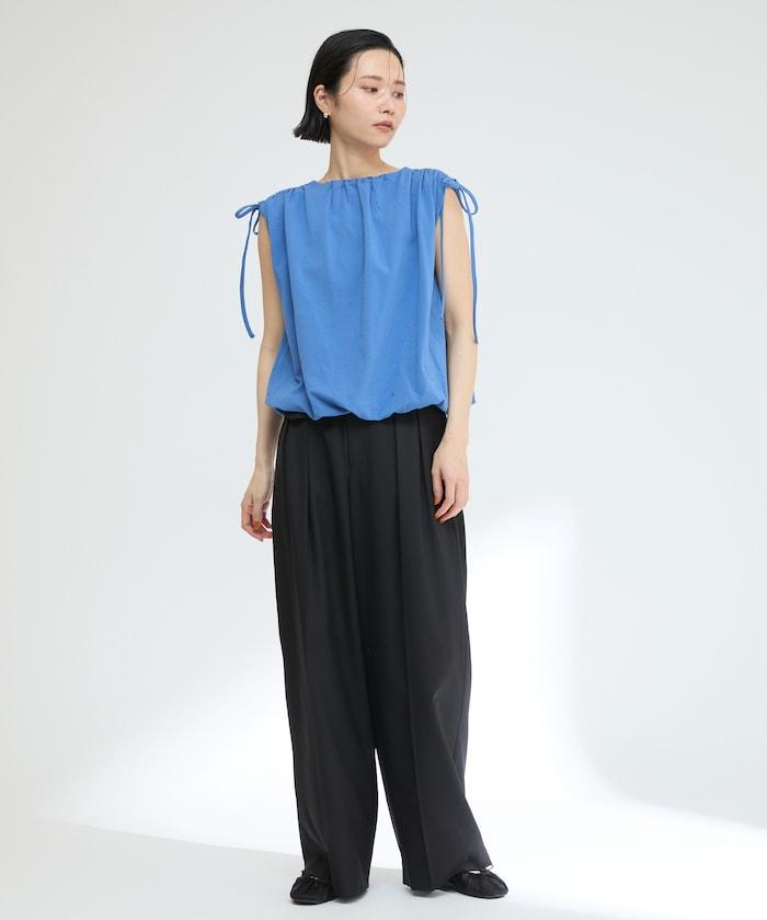 有機棉束褶垂墜上衣 / 法式短袖T恤 / 袖帶