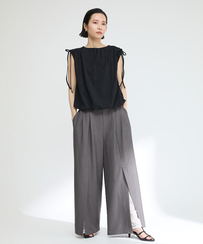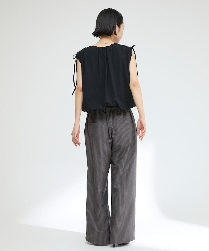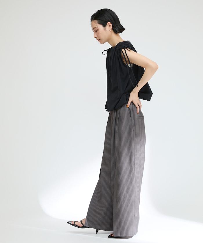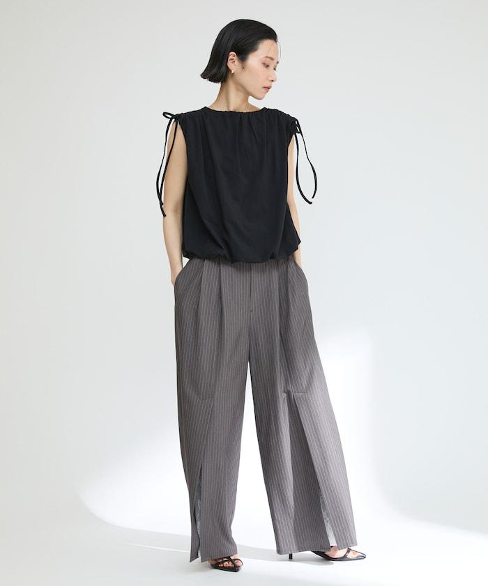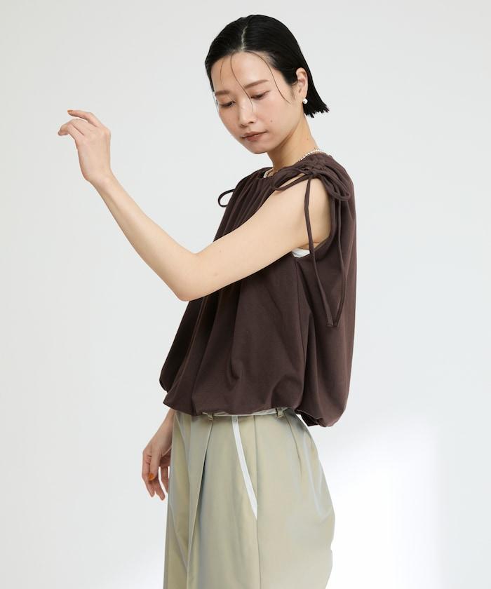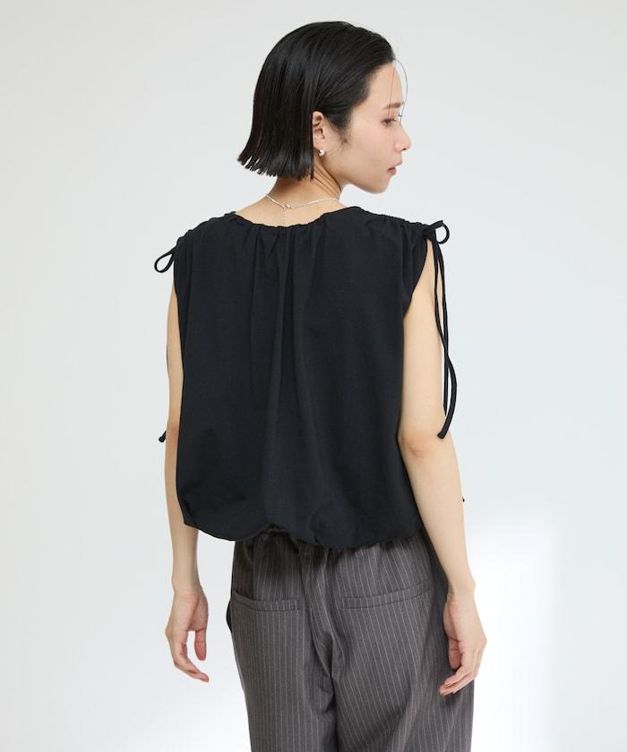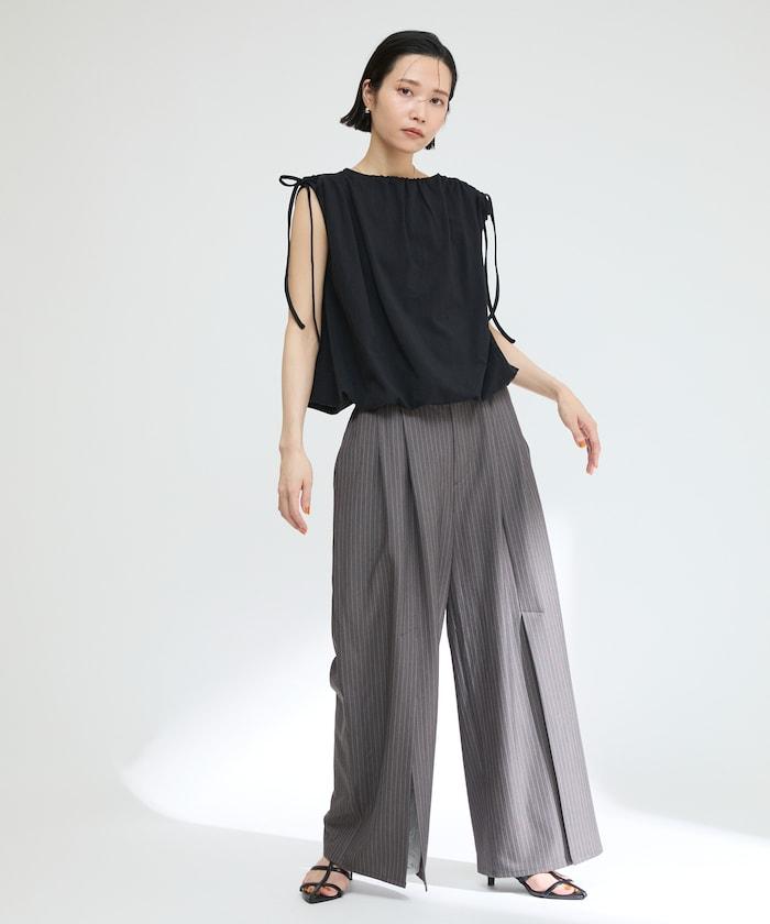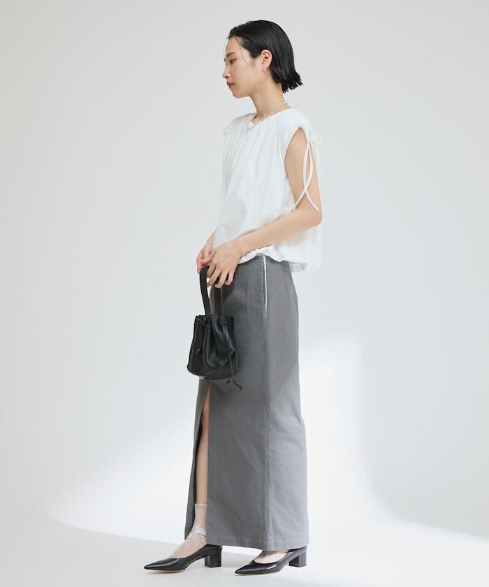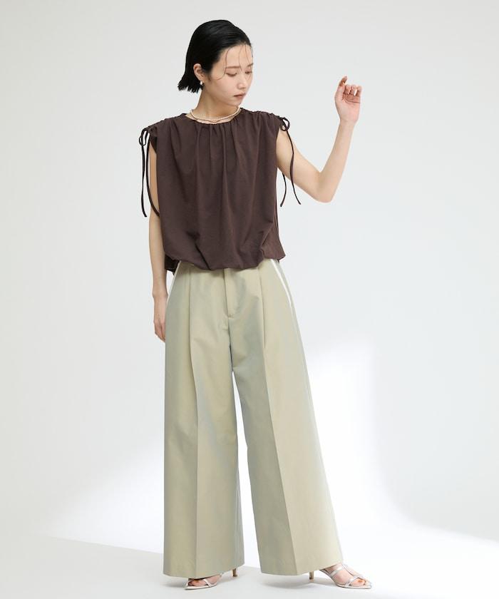 有機棉束褶垂墜上衣 / 法式短袖T恤 / 袖帶