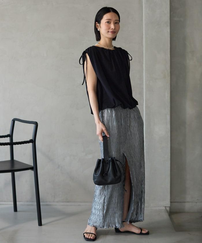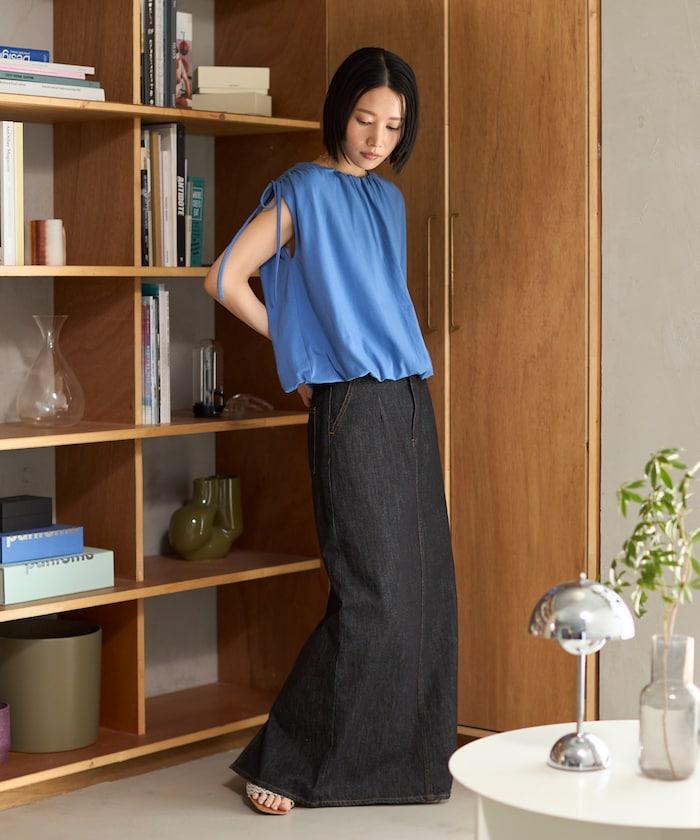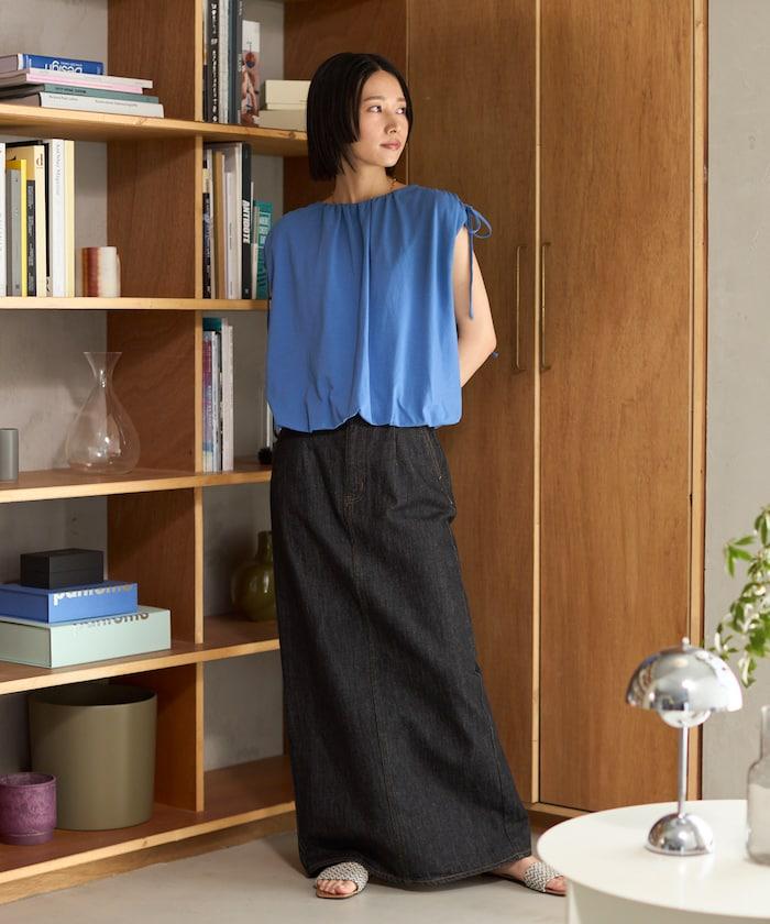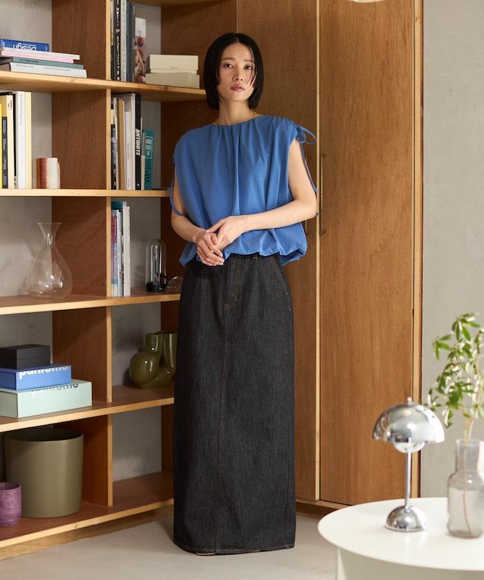 氣球下襬讓它看起來自然內收,因此與高腰打底褲很搭。由於這是一款設計剪裁和縫製的單品,因此可以搭配牛仔褲來完成簡單的造型。由於上身略顯豐滿,我們建議下身搭配乾淨的休閒褲、薄牛仔布或 I 字裙。