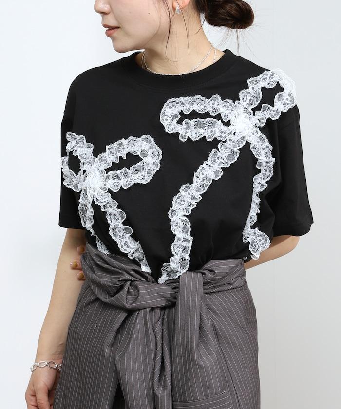 蕾絲和緞帶設計 T 恤