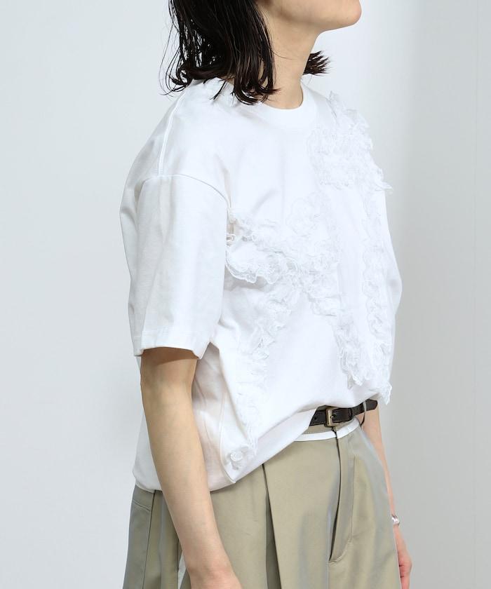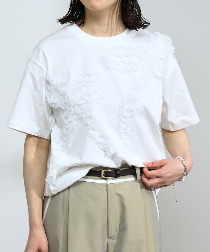 蕾絲絲帶設計短袖 T 恤。