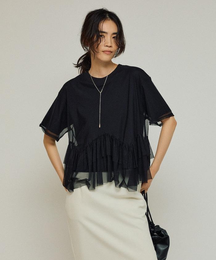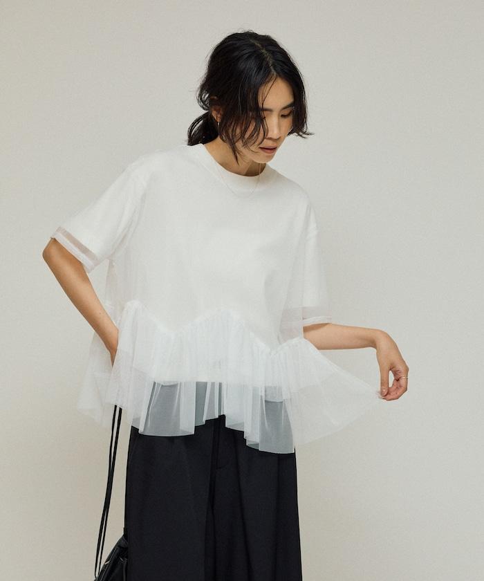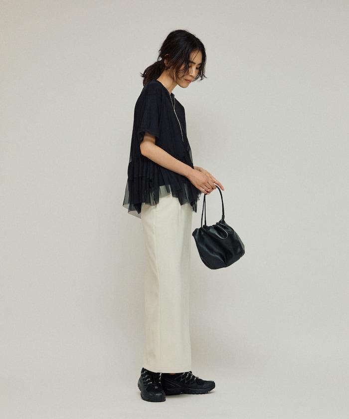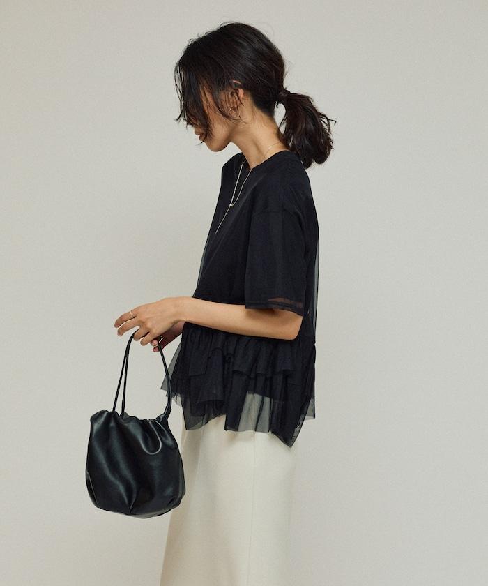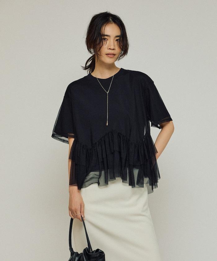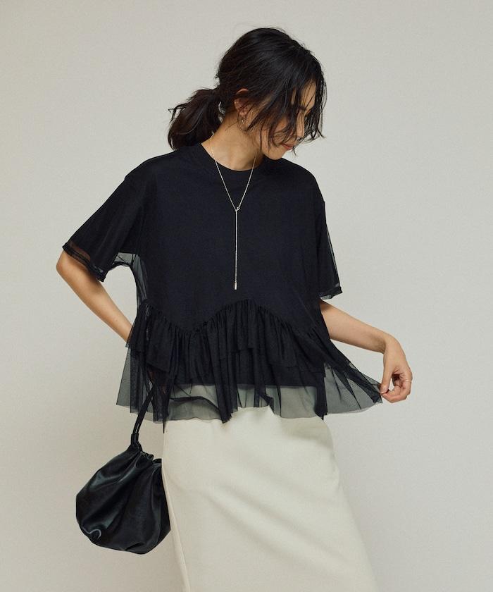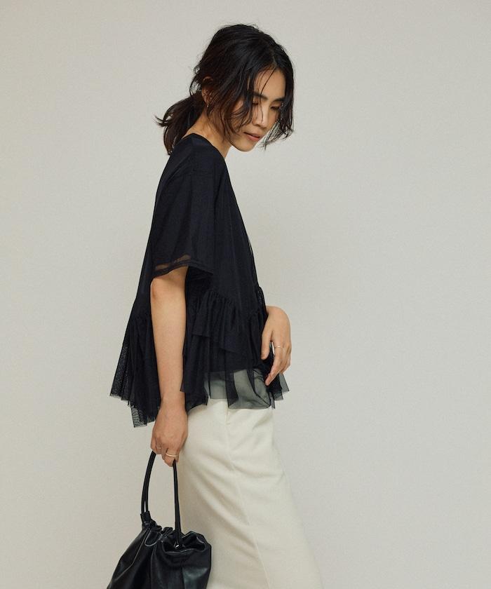 薄紗的透明感和褶皺是這款設計剪裁和縫製上衣的關鍵點,只需一件就能成為主角。