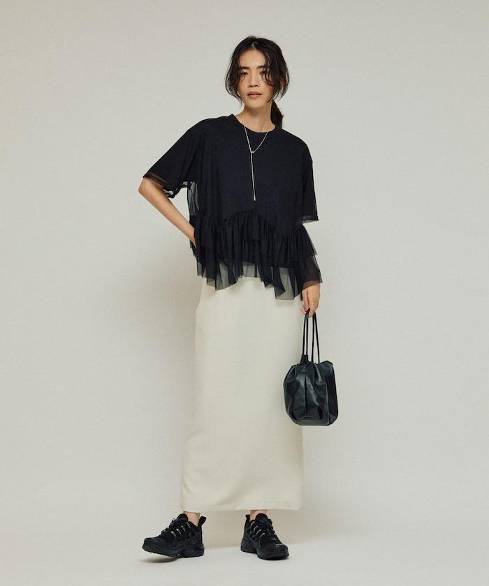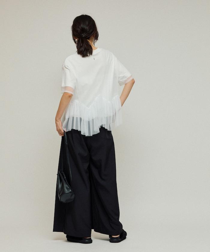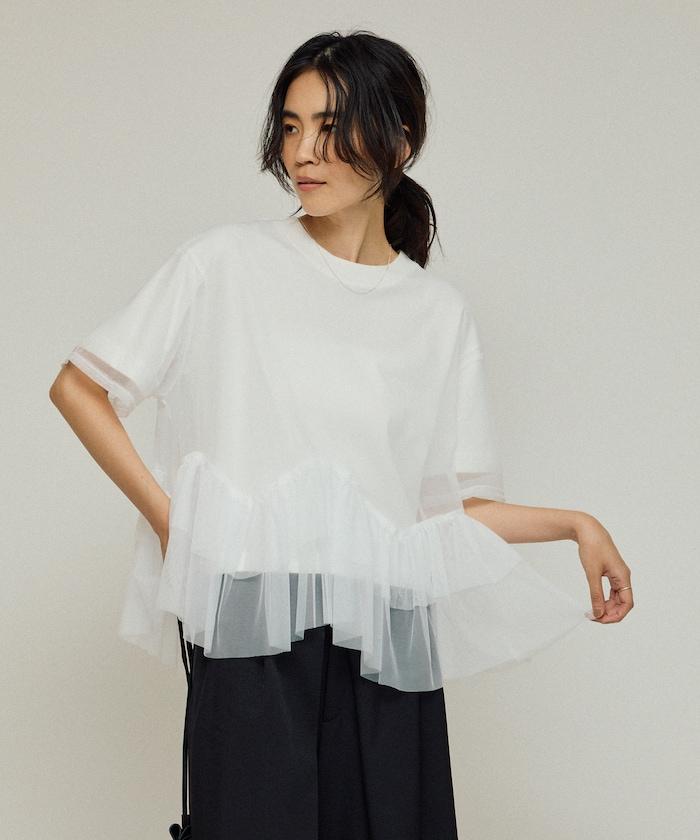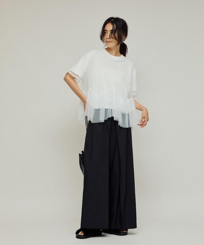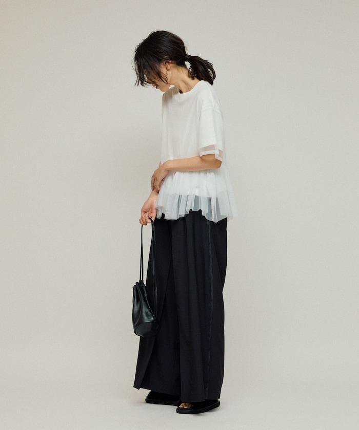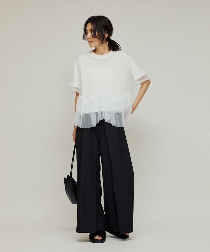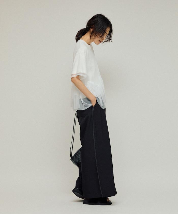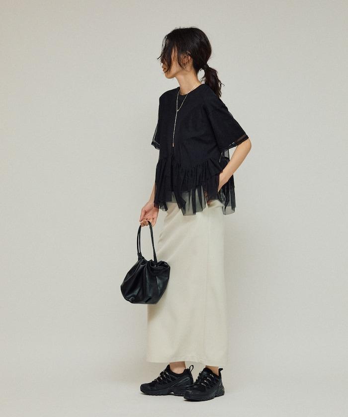 薄紗的透明感和褶皺是這款設計剪裁和縫製上衣的關鍵點,只需一件就能成為主角。