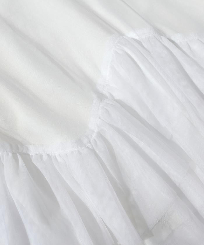 薄紗部分從胸部以下開始收攏,營造出立體輪廓。