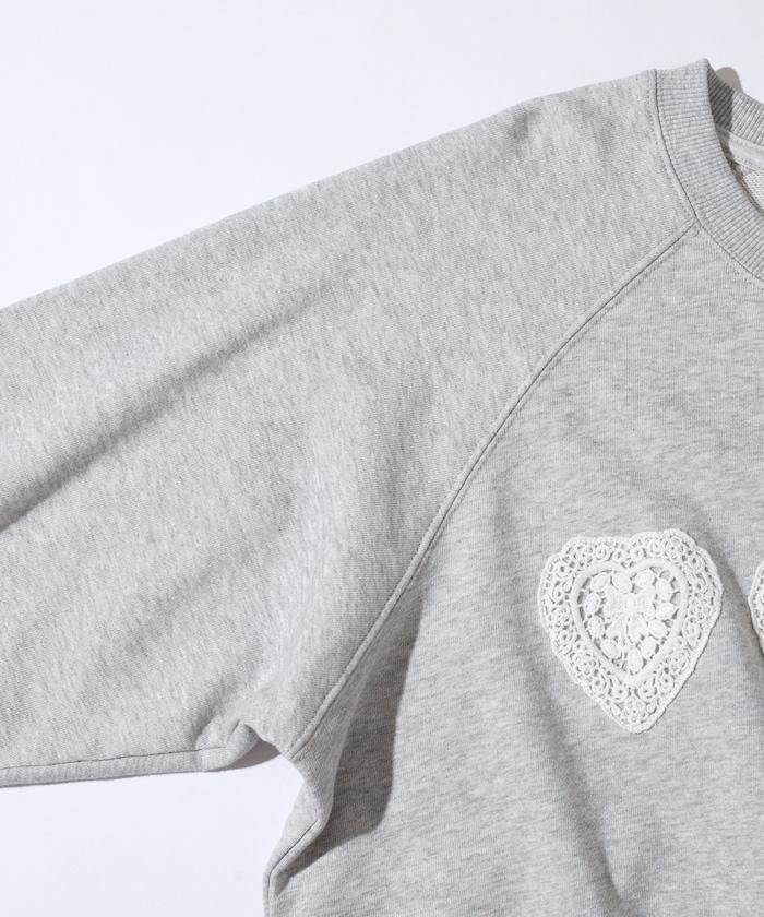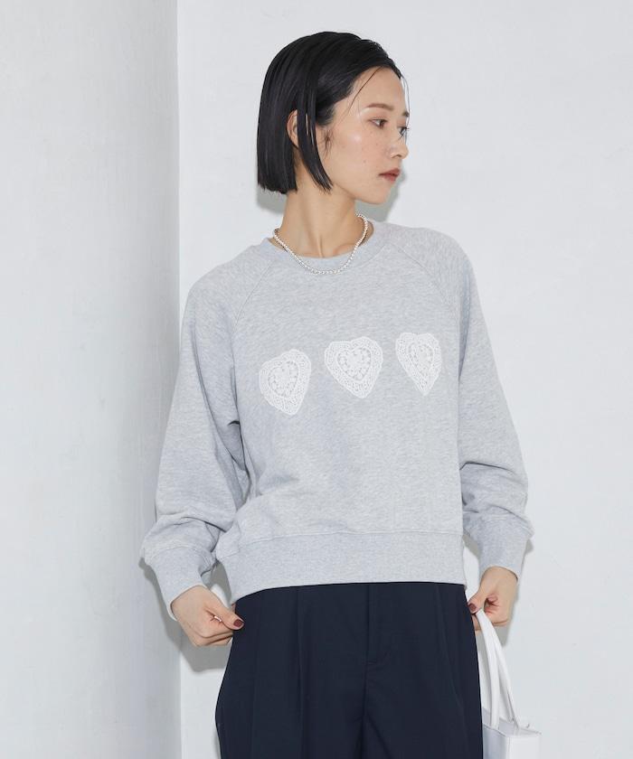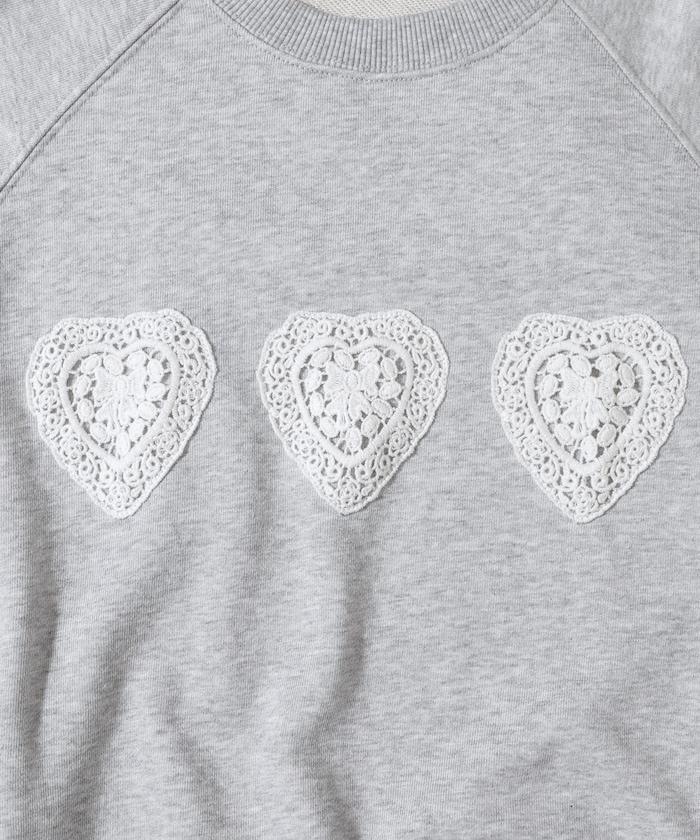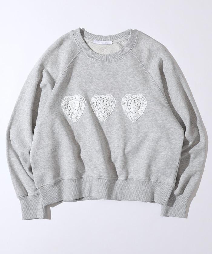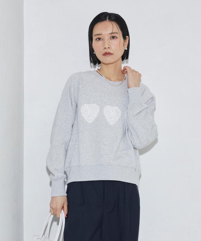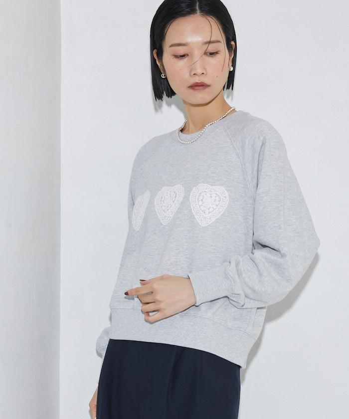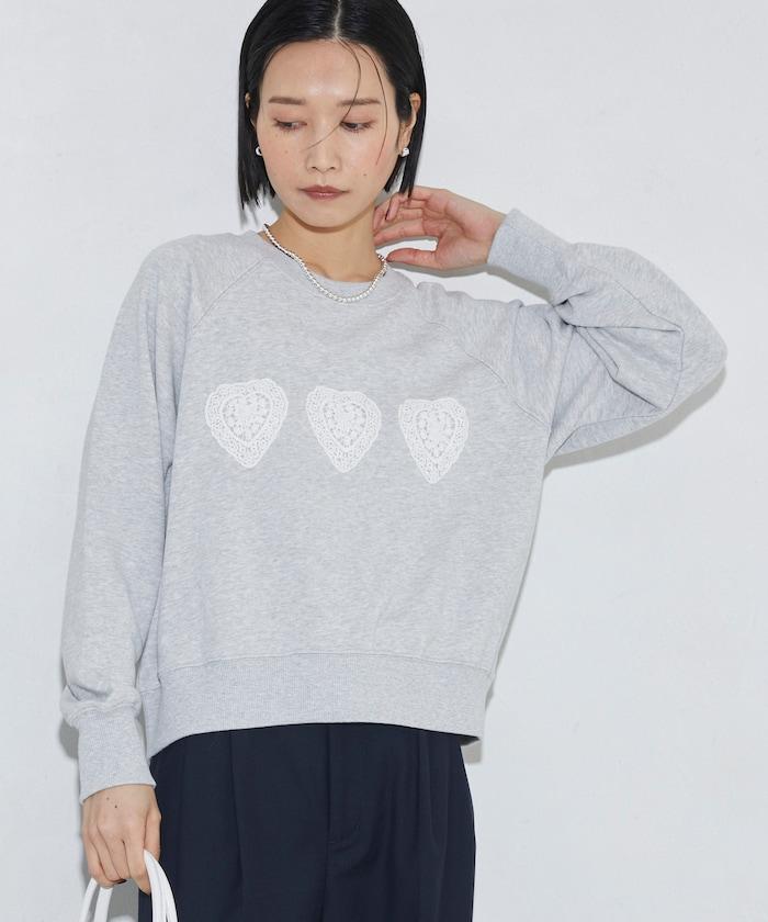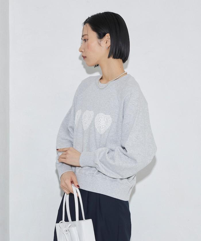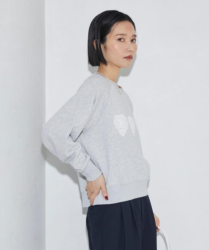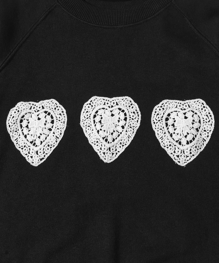 2024 秋冬單品 心形圖案蕾絲貼布斜肩運動衫