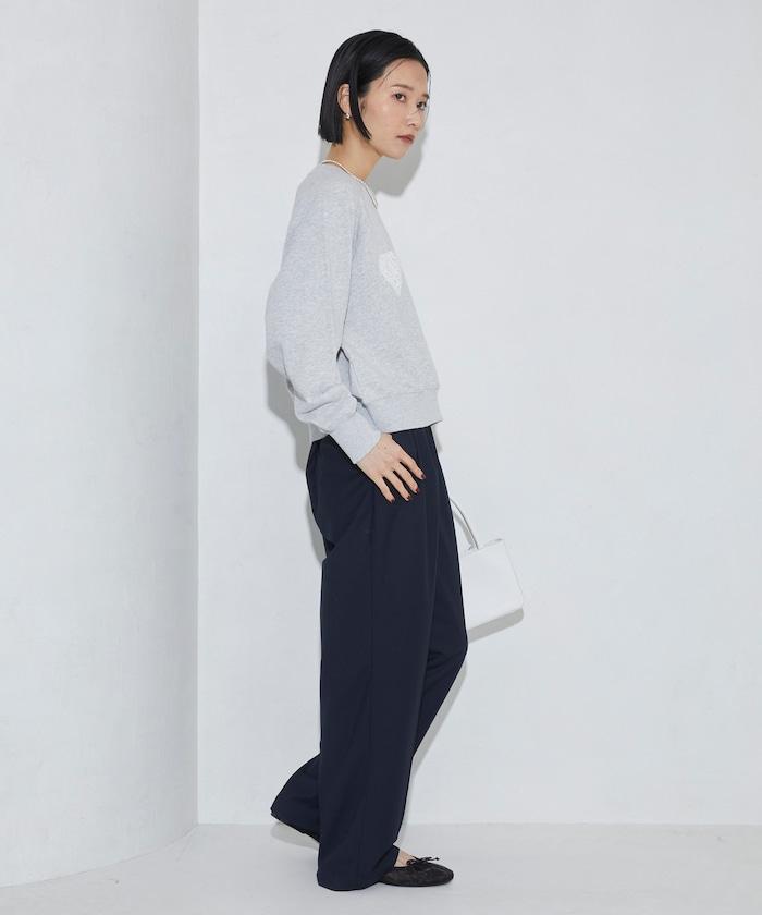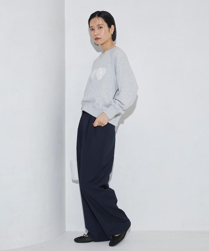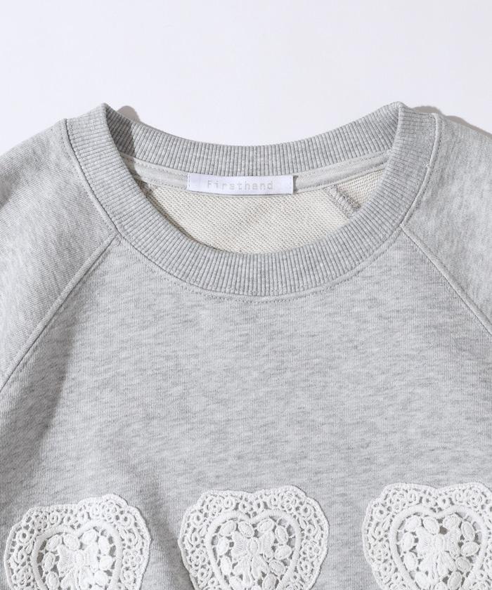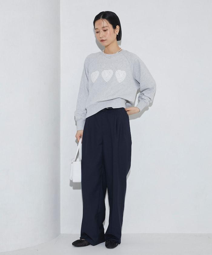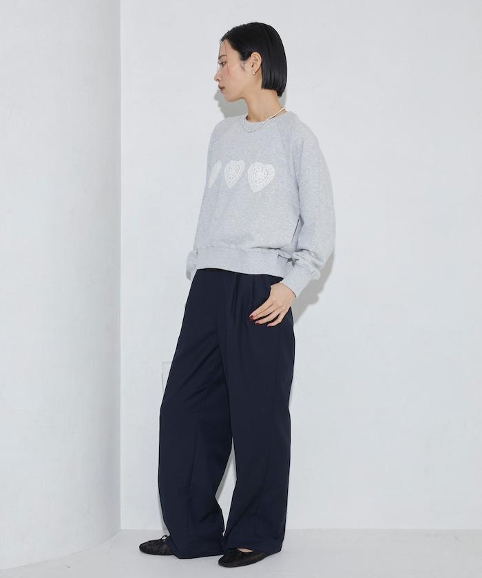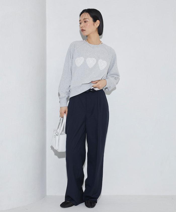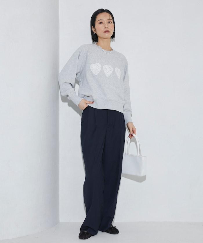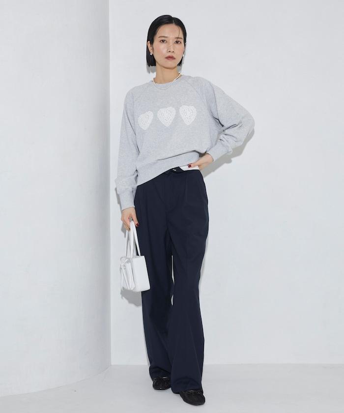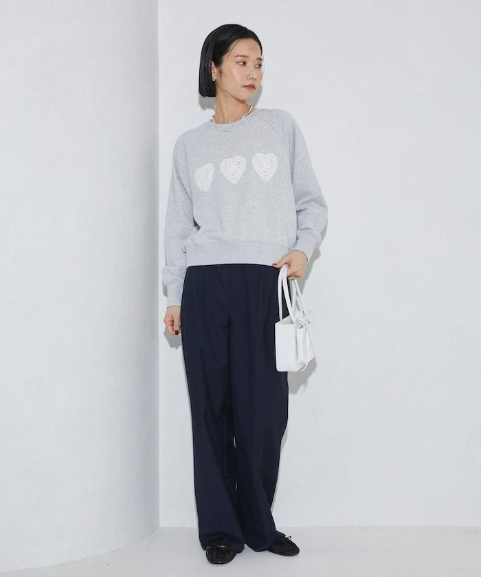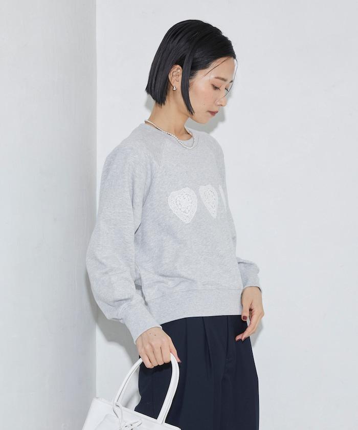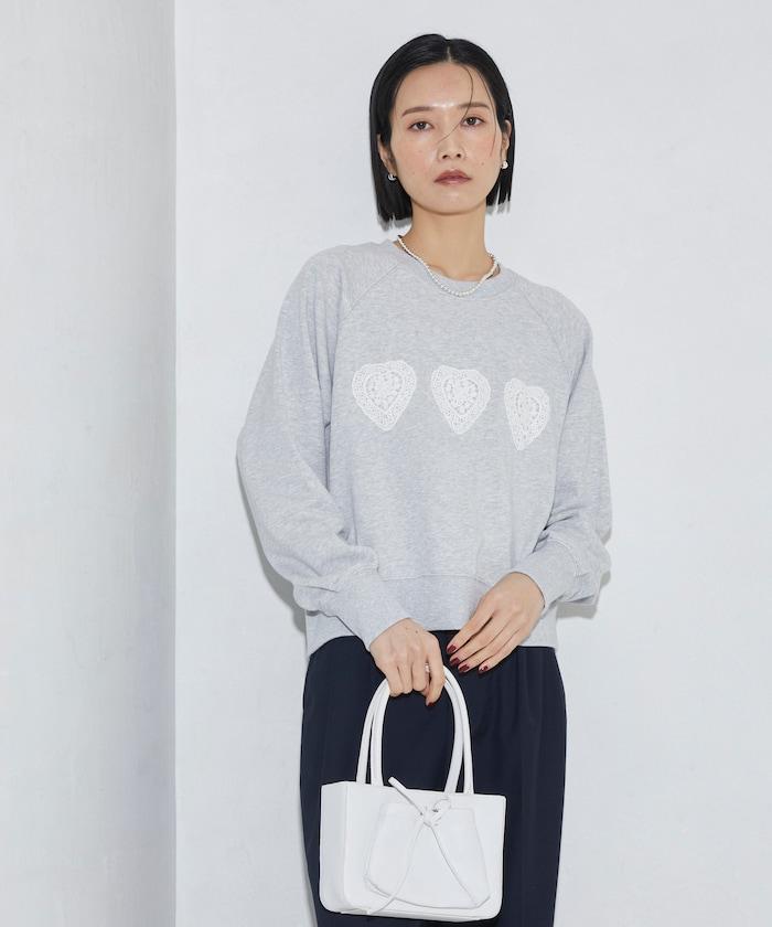 2024 秋冬單品 心形圖案蕾絲貼布斜肩運動衫