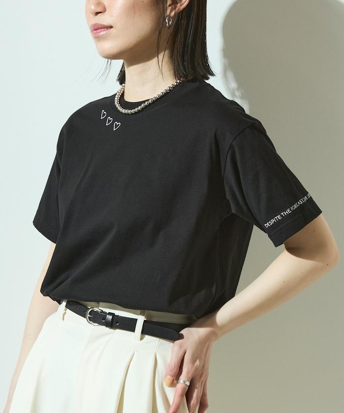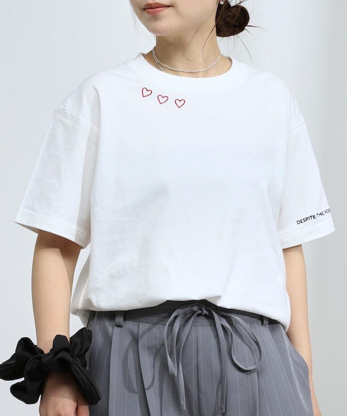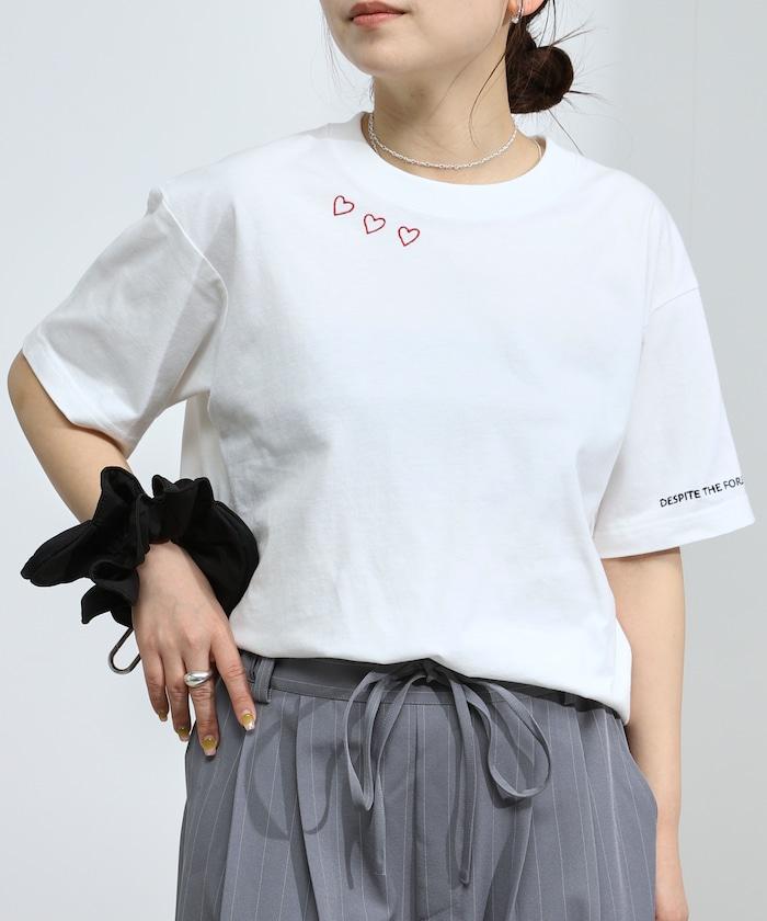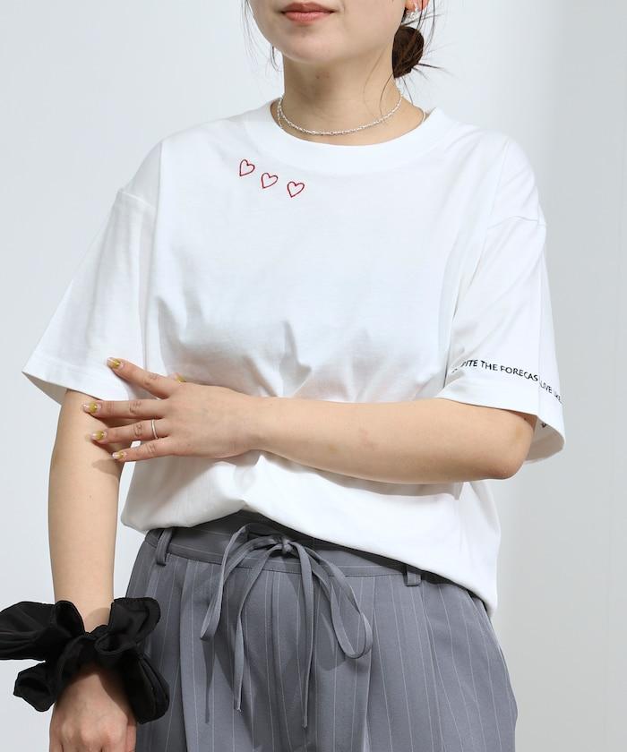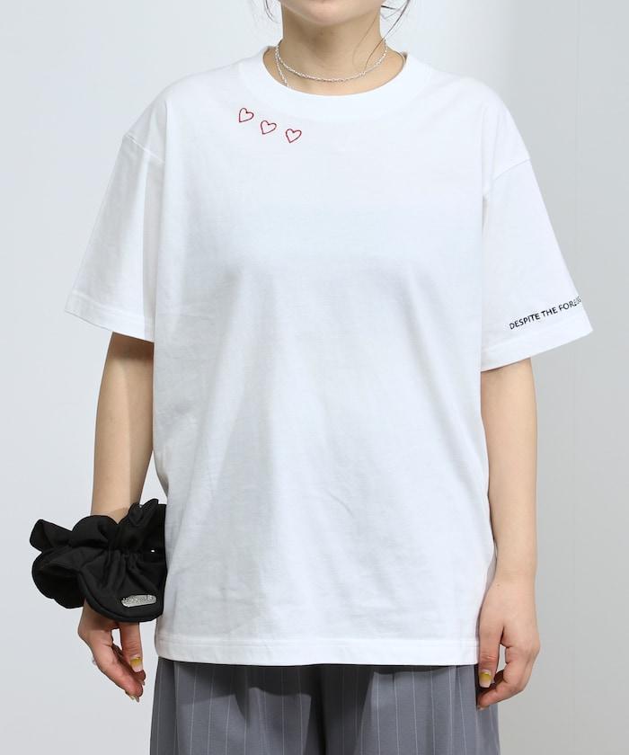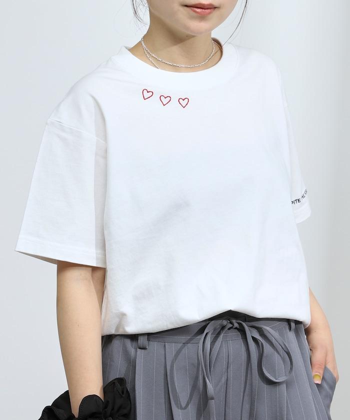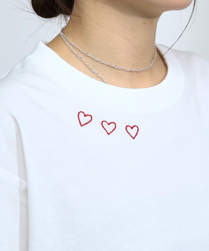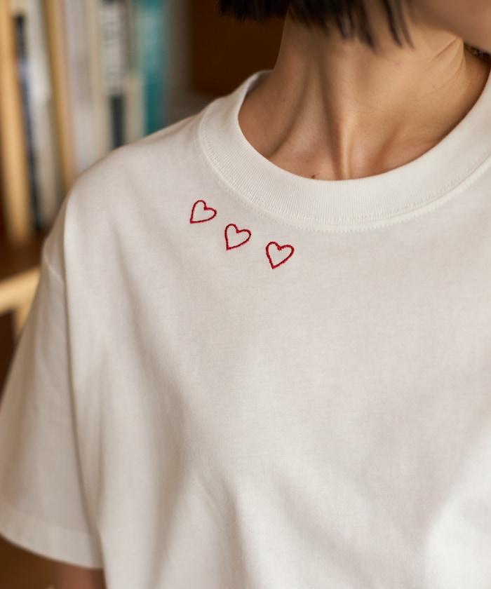 有機棉 心形 標誌刺繡T恤 / 圓領 單點標誌 刺繡短袖T恤